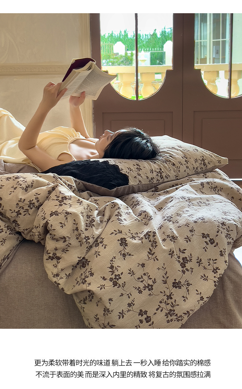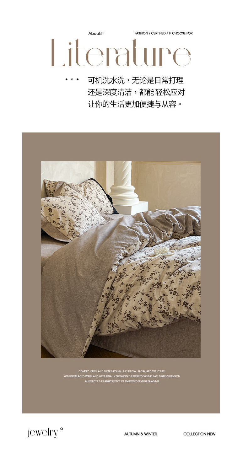 繁花家居 2025秋冬磨毛复古亚麻棉麻提花超软四件套 古韵芳菲