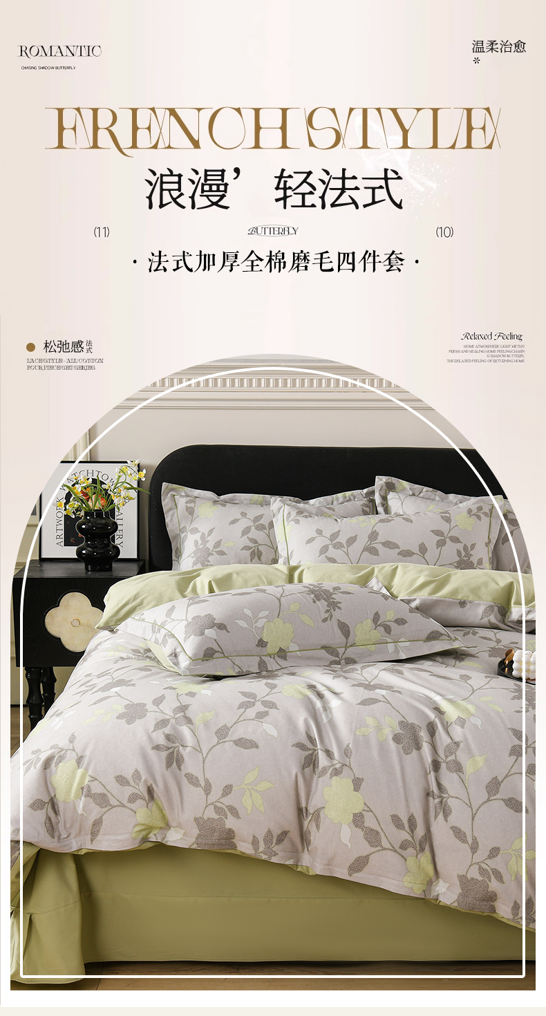 商品名称:(总)金昱纺 2025新款法式加厚全棉纯棉磨毛四件套