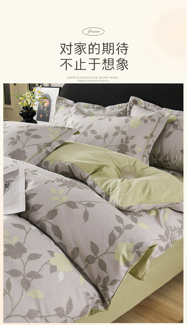 (总)金昱纺 2026新款全棉50S长绒棉数码印花宽边埋绳款四件套(带精美礼盒包装),叶栖-咖,黛秋-粉,花织软梦,摩卡-绿,甜梦花栖,榭风轻眠