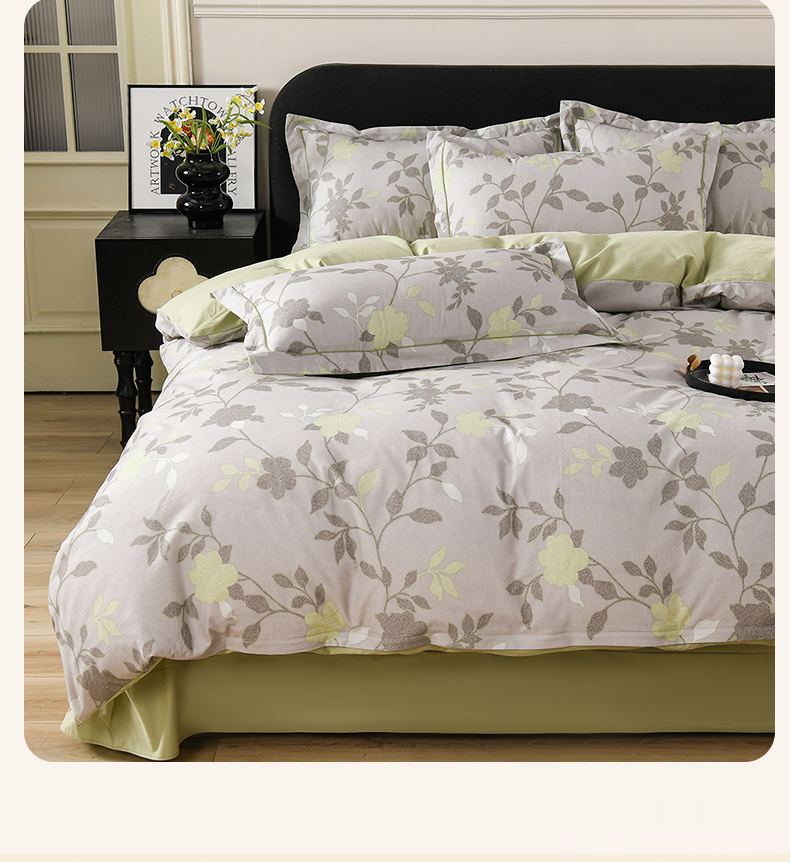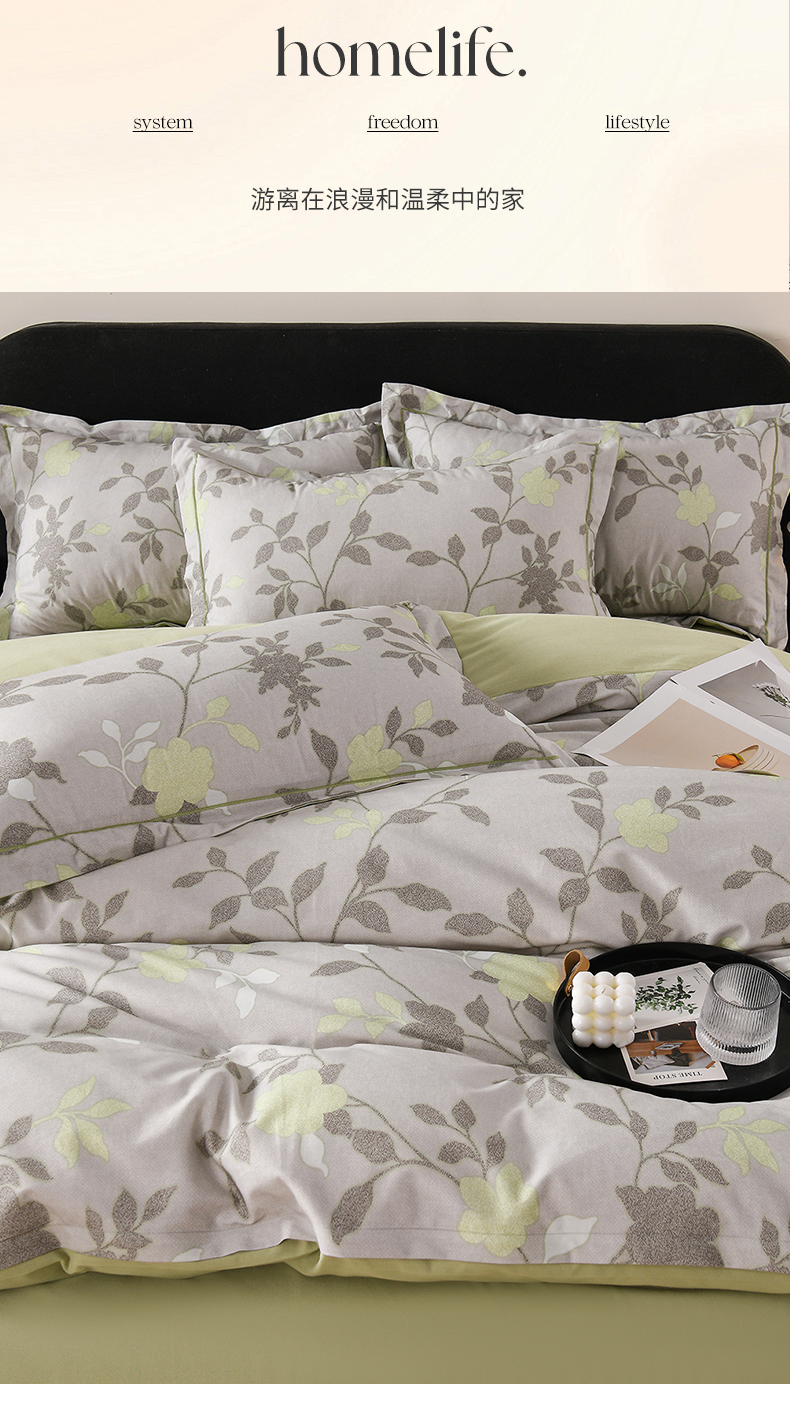 (总)金昱纺 2026新款拼角工艺款数码印花棉麻四件套,薇光-兰,布拉格-兰,辰梦-绿,恋恋时光-紫,梦幻巴黎-灰,岁晚-咖,万川-咖,叶璃-咖