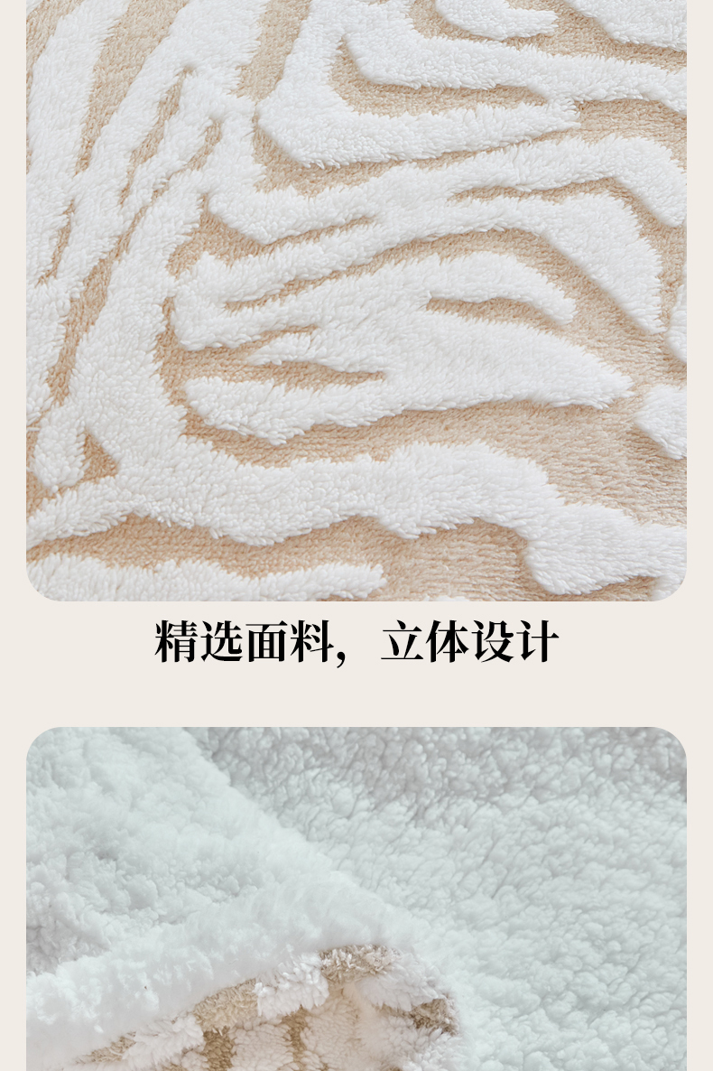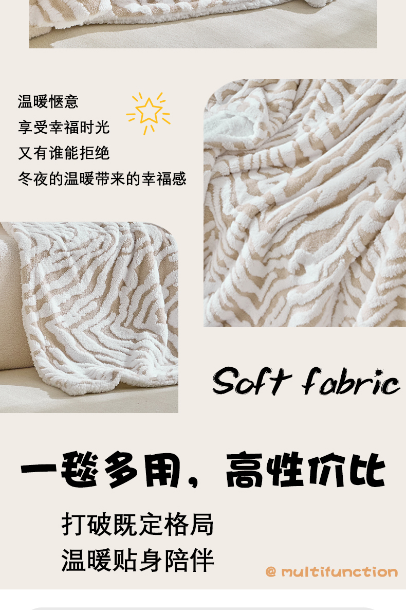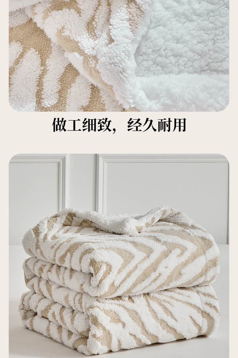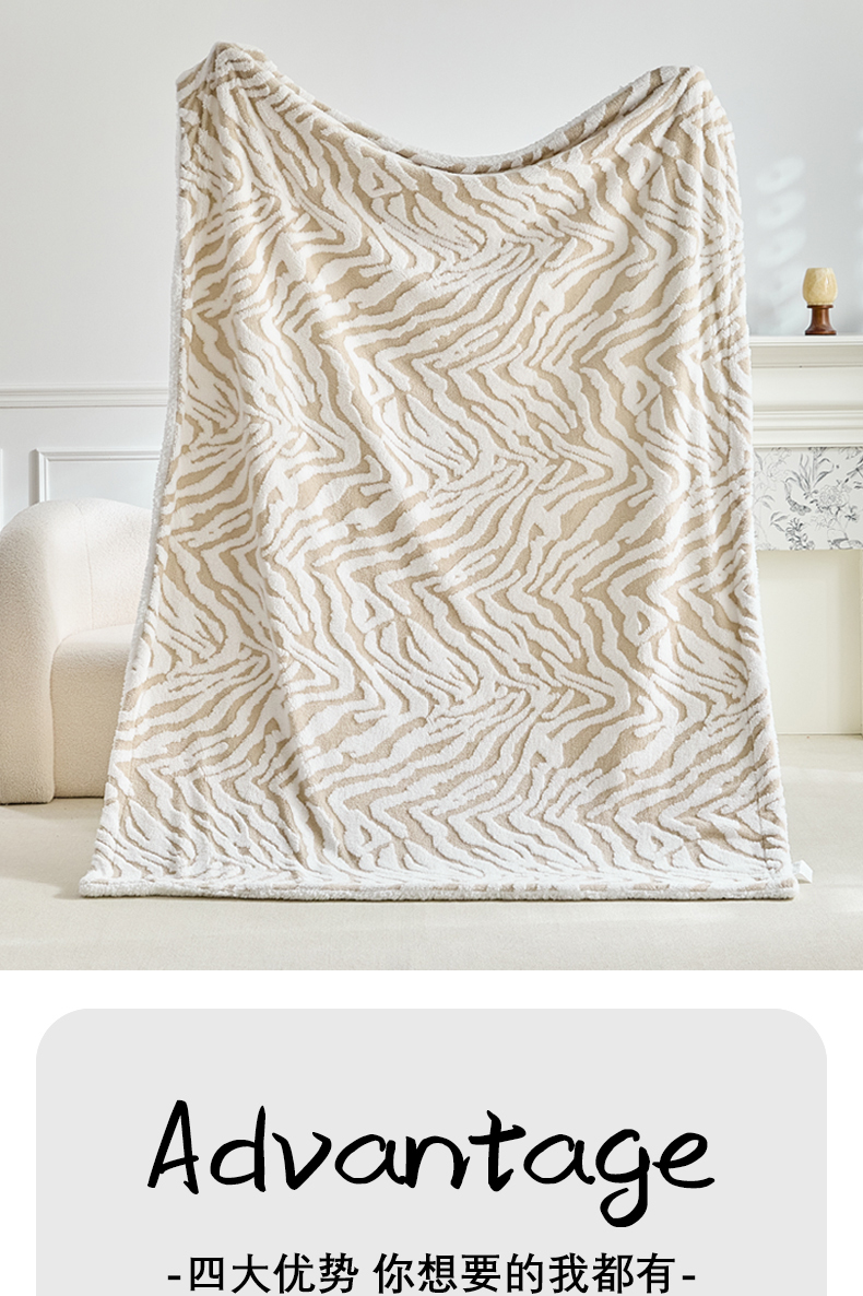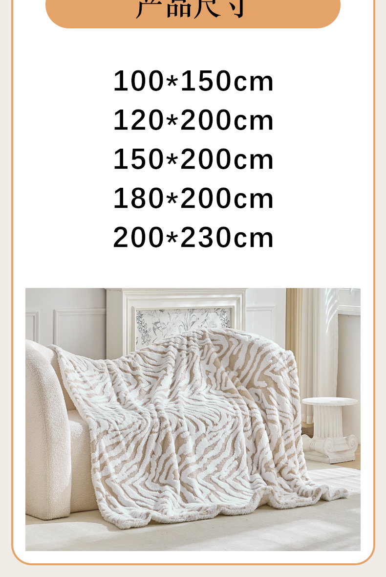 商品名称:缘生活 2025新款阳离子斑马纹羊羔绒毛毯 斑马纹绒毛毯-卡其