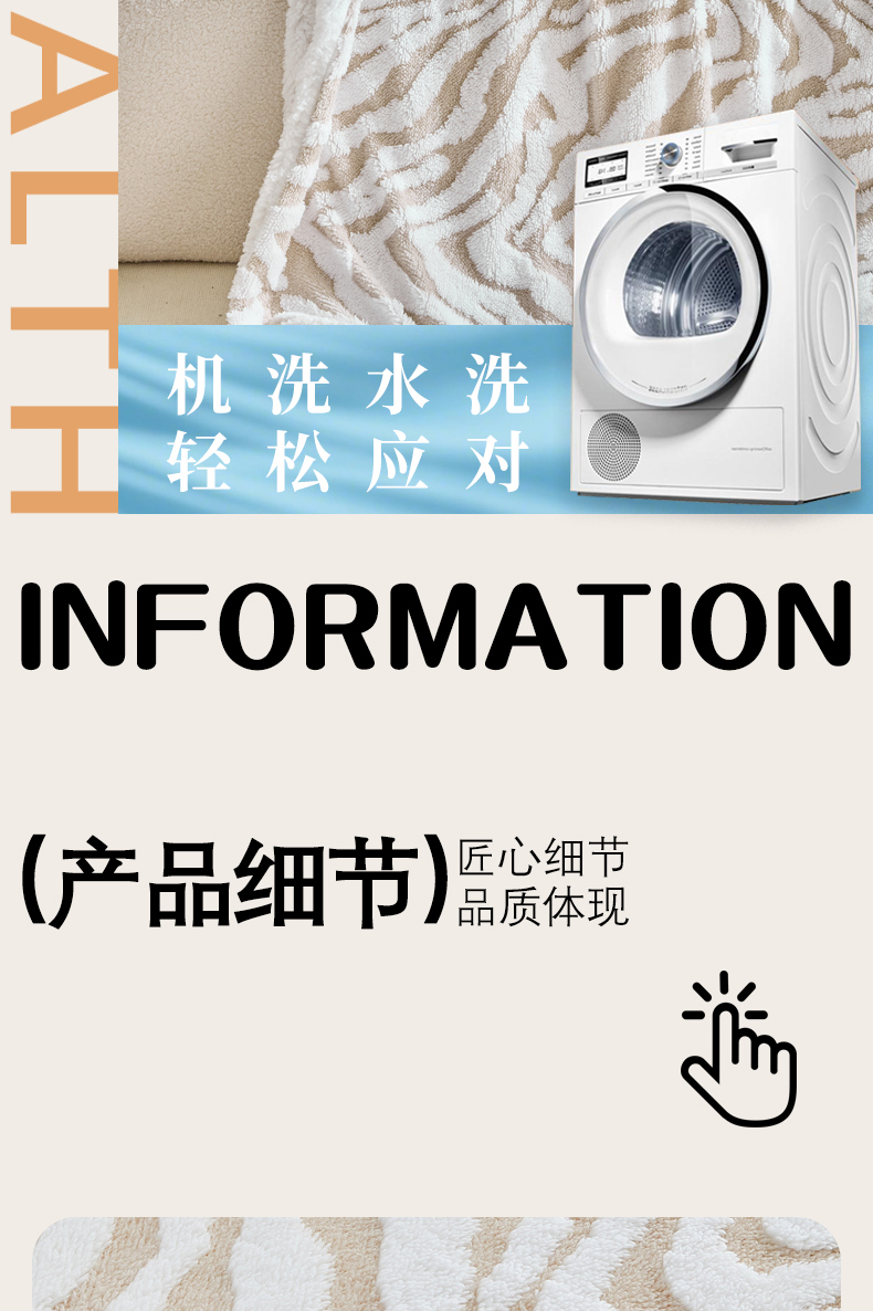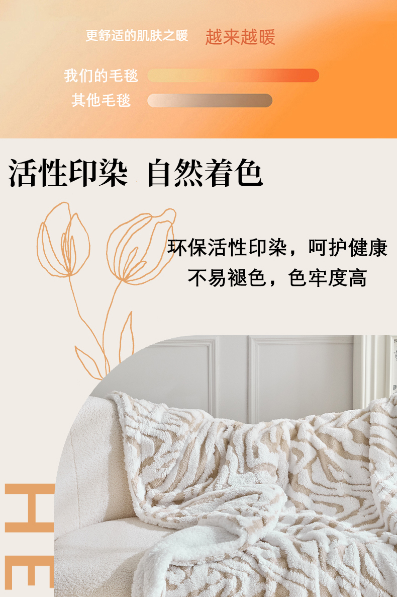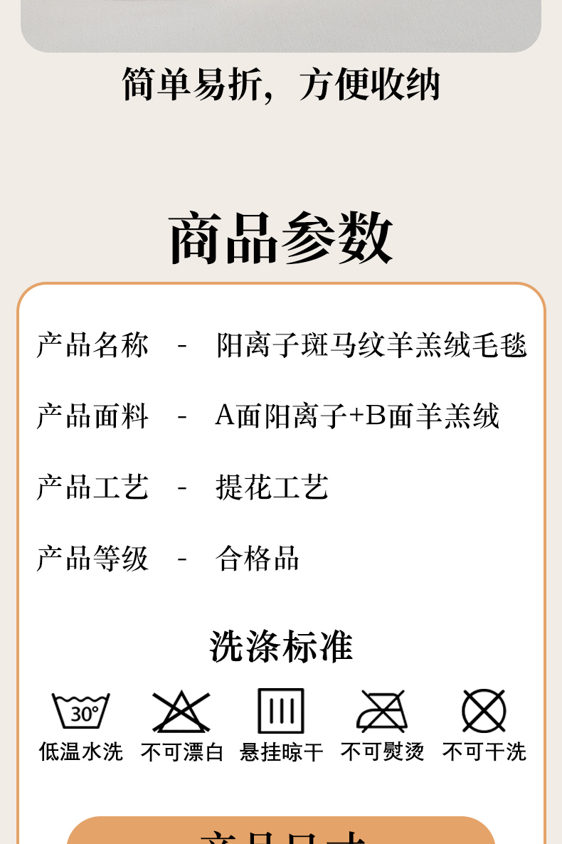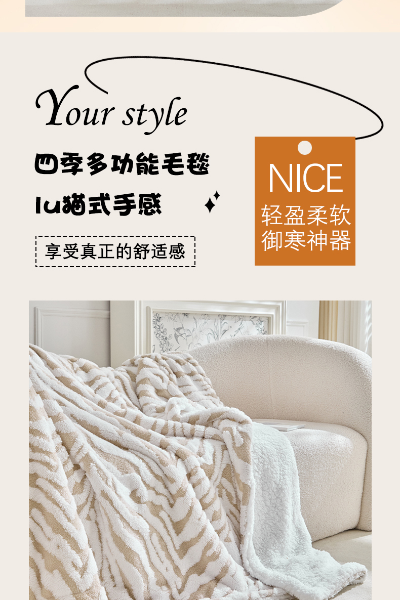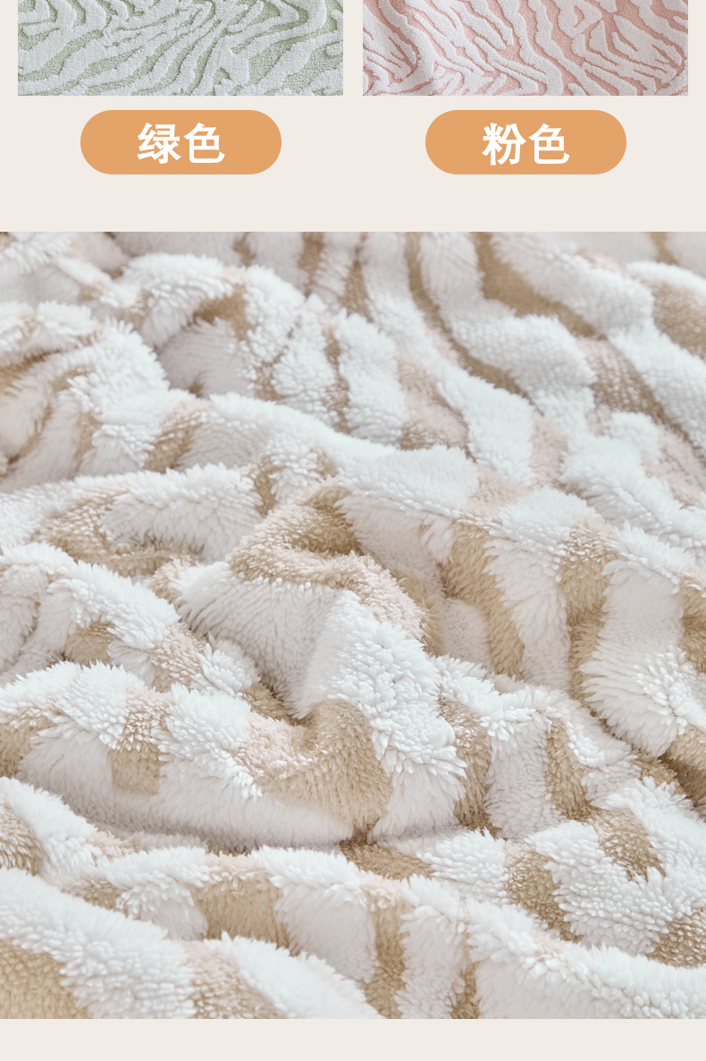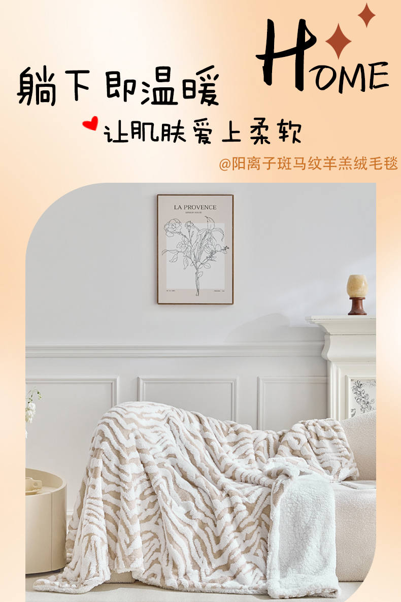 商品名称:缘生活 2025新款阳离子斑马纹羊羔绒毛毯 斑马纹绒毛毯-卡其
