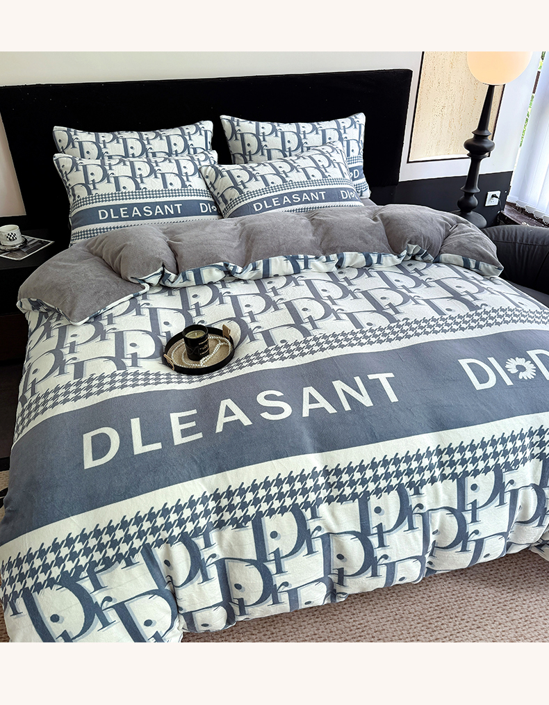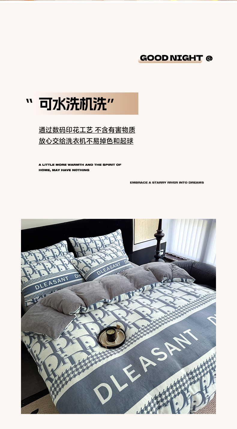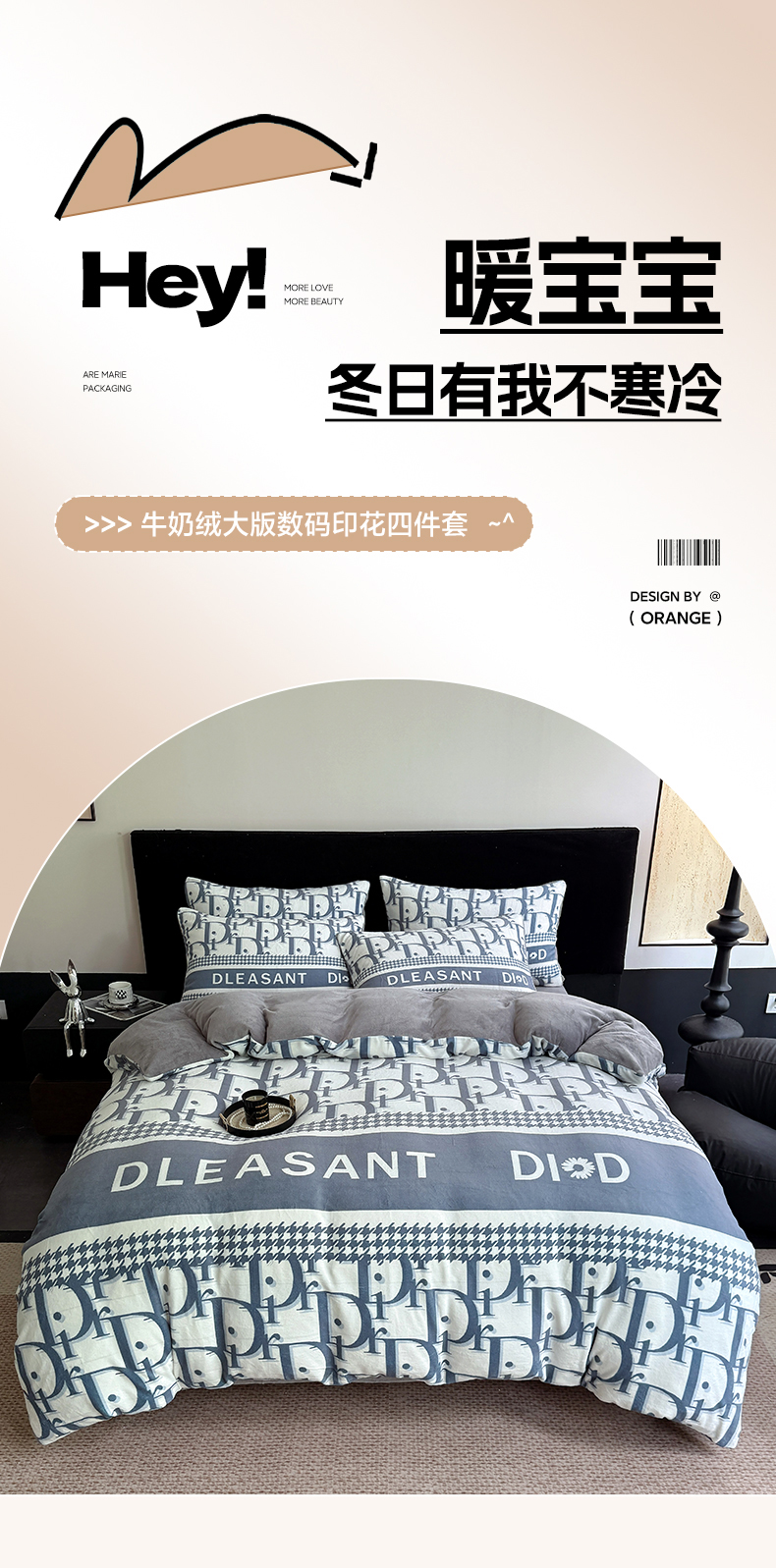 商品名称:摩卡(乐趣) 2025新款牛奶绒大版数码印花四件套(提供买家秀) 灰迪