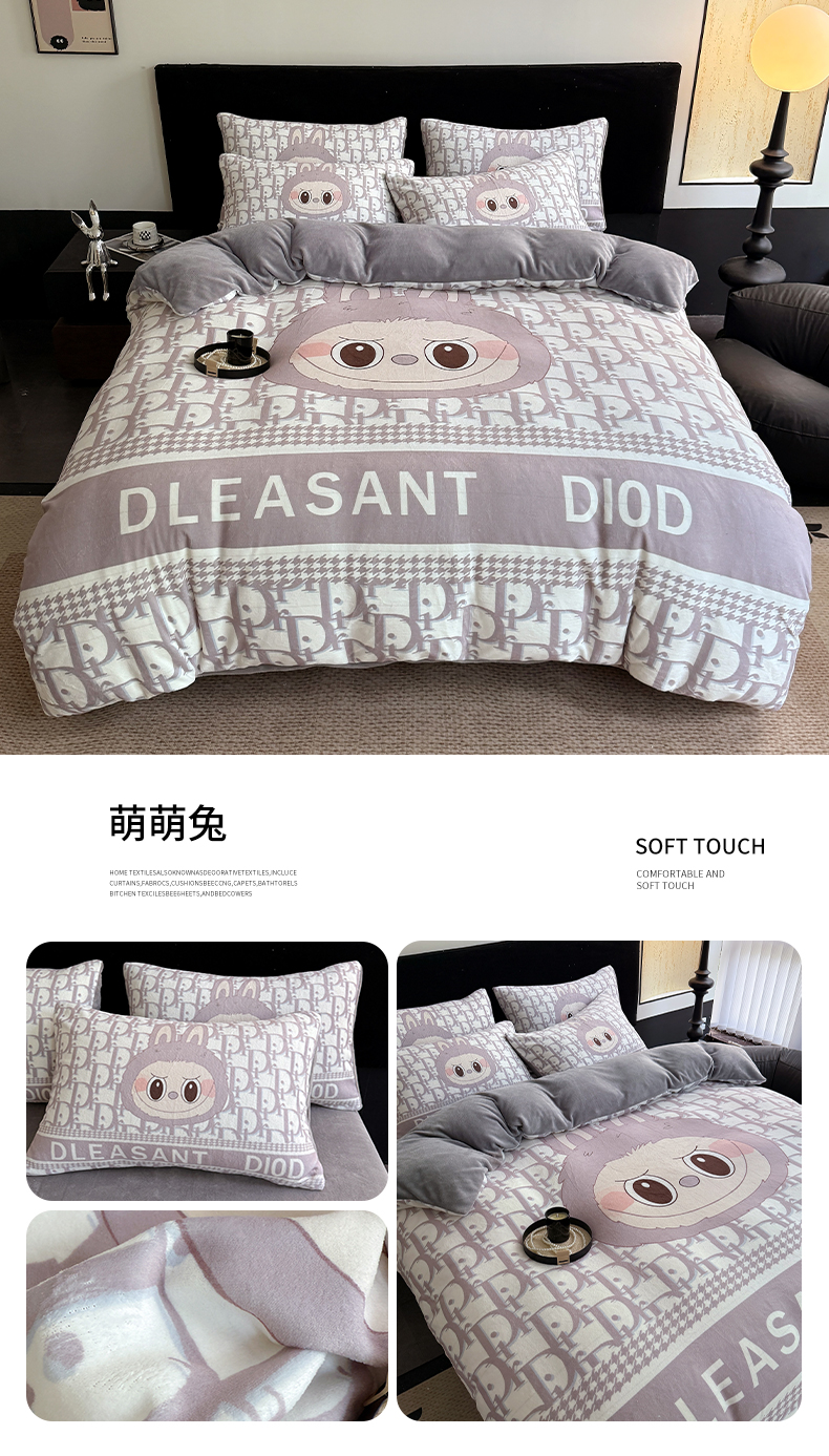 (总)摩卡(乐趣) 2025新款牛奶绒大版数码印花四件套(提供买家秀),经典兔,白香花,黑白V,灰迪,咔芬,卡夫兔,路易兔,罗兰粉,萌迪,萌萌兔,七彩熊,棋盘兔,熊头白,熊仔白,熊仔咖