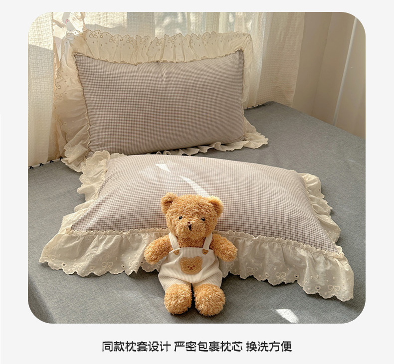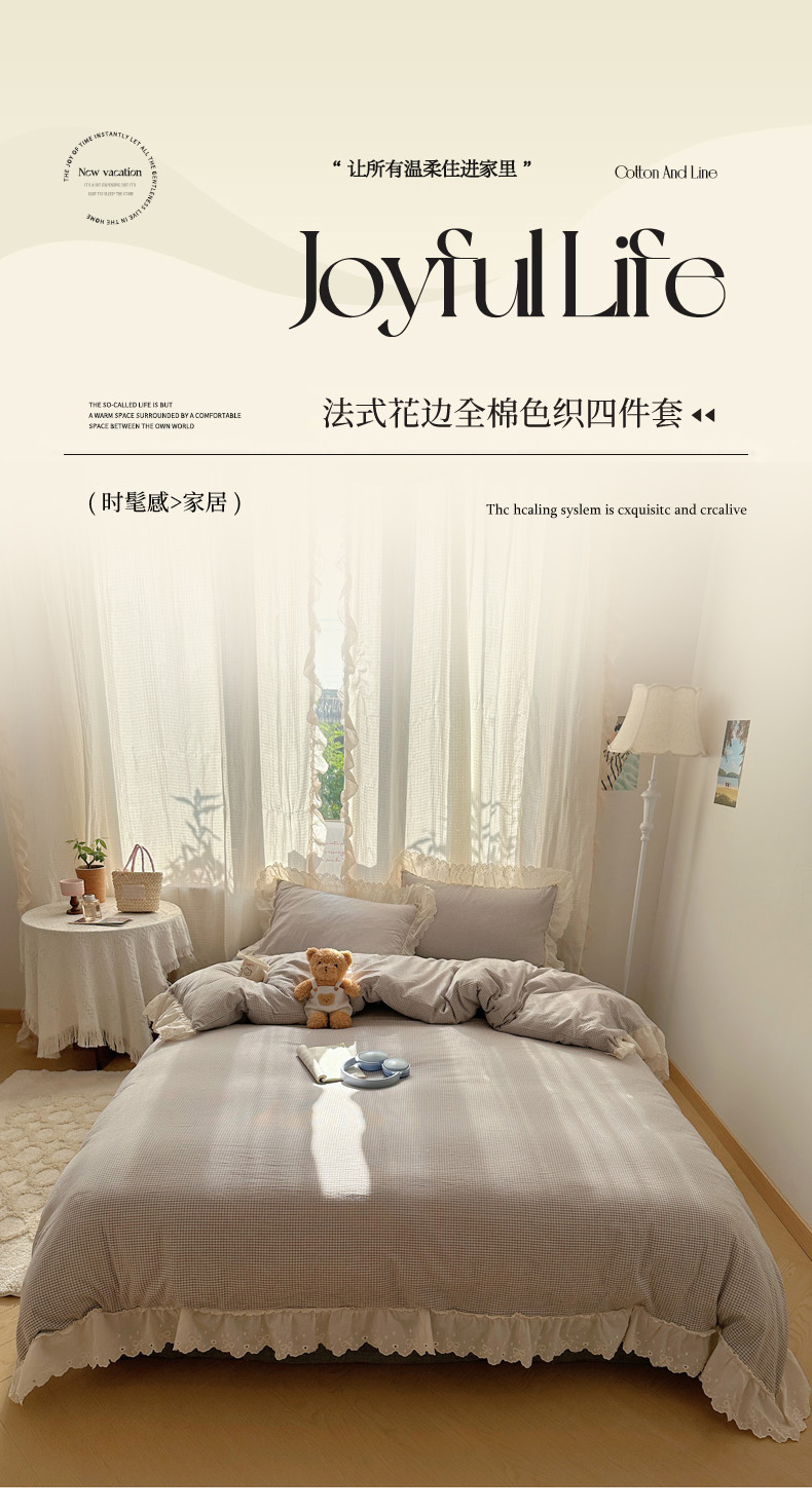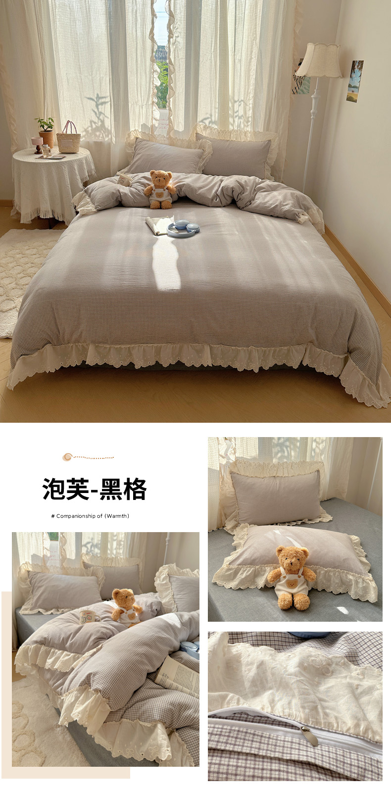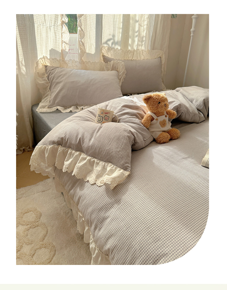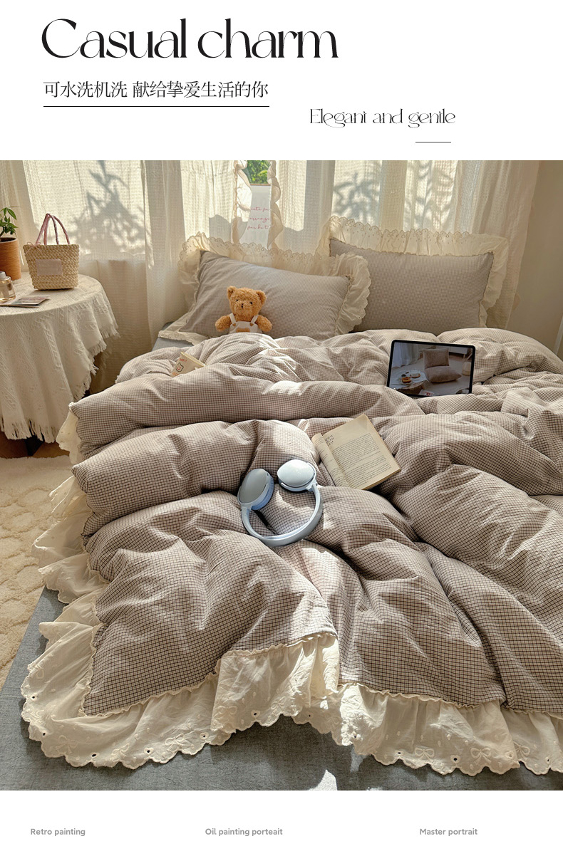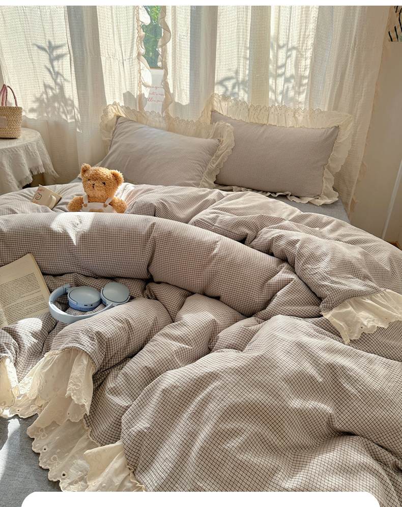 (总)丽涵家纺 2025新款法式花边全棉色织水洗棉小格子四件套