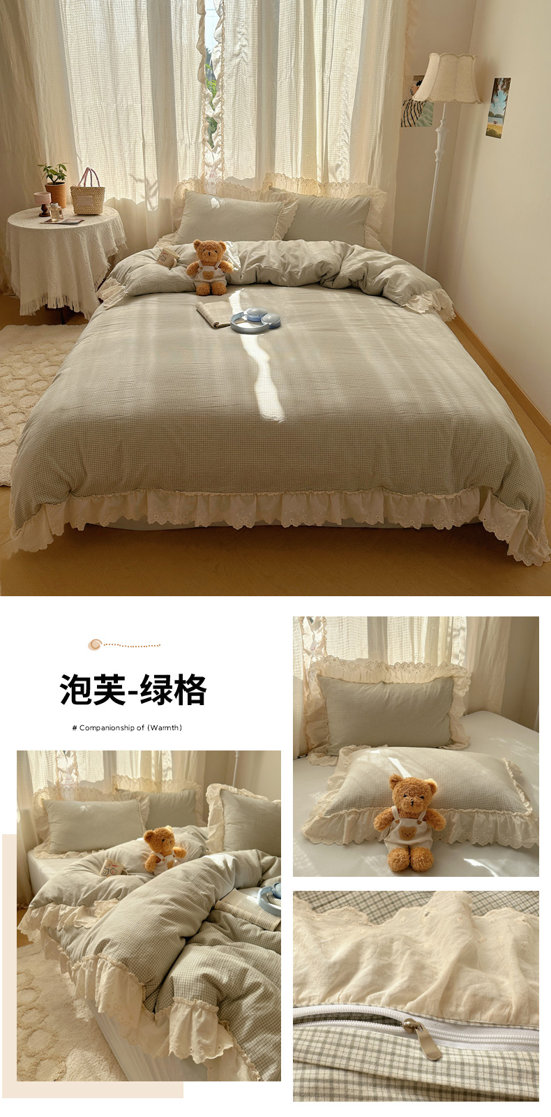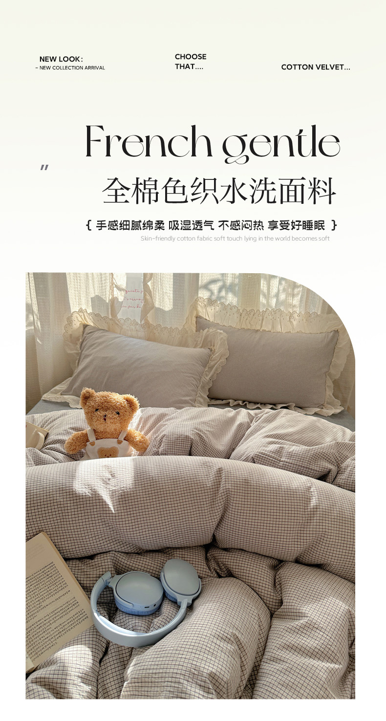 商品名称:(总)丽涵家纺 2025新款法式花边全棉色织水洗棉小格子四件套