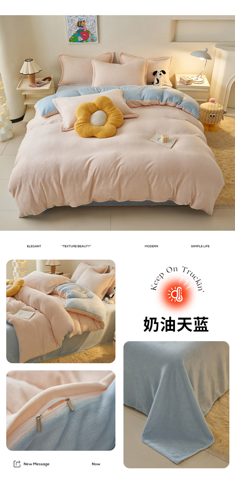 当前位置: 91家纺网 > 商品网购 > 床品套件 > 四件套 > 牛奶绒四件套 > 2025新款多巴胺小红书纯色牛奶绒四件套牛奶绒被套跨境定制-风格二 奶油天蓝
