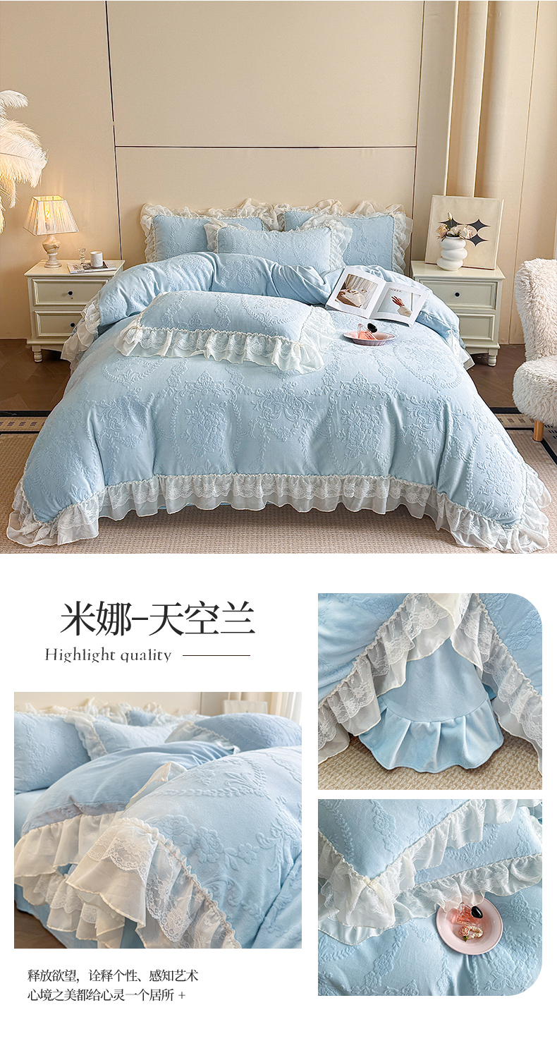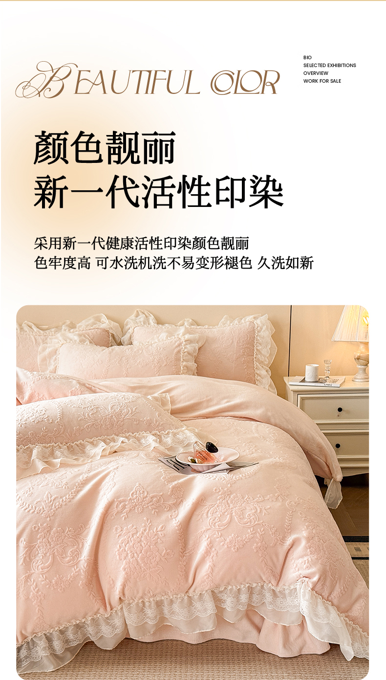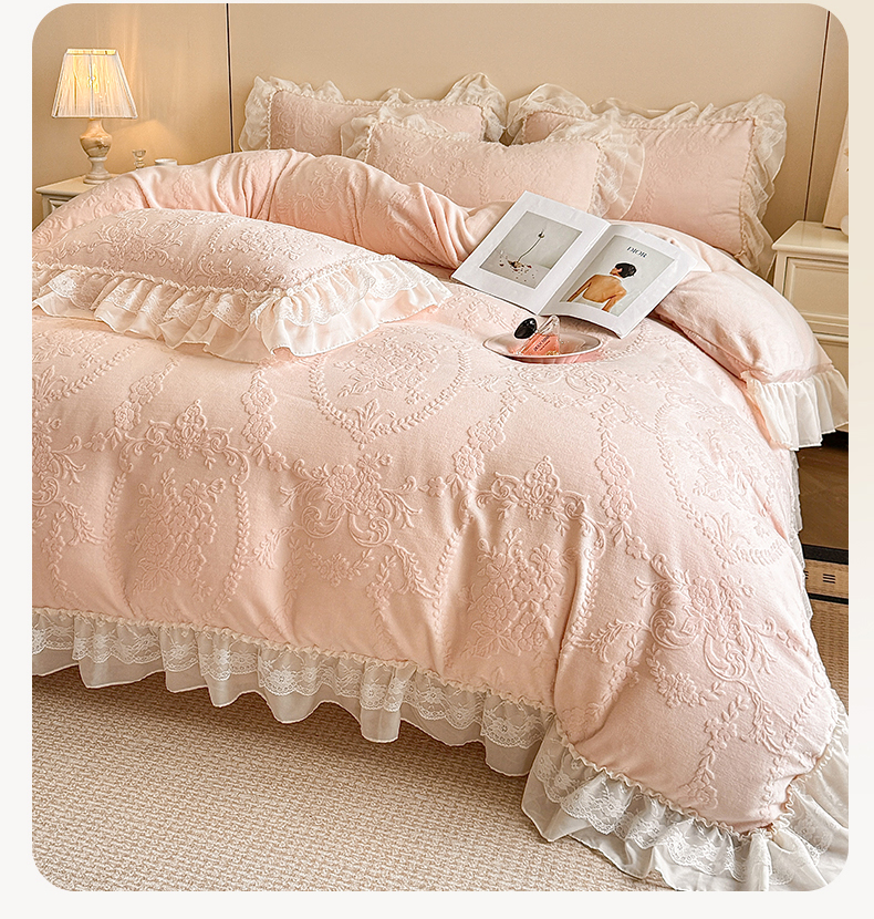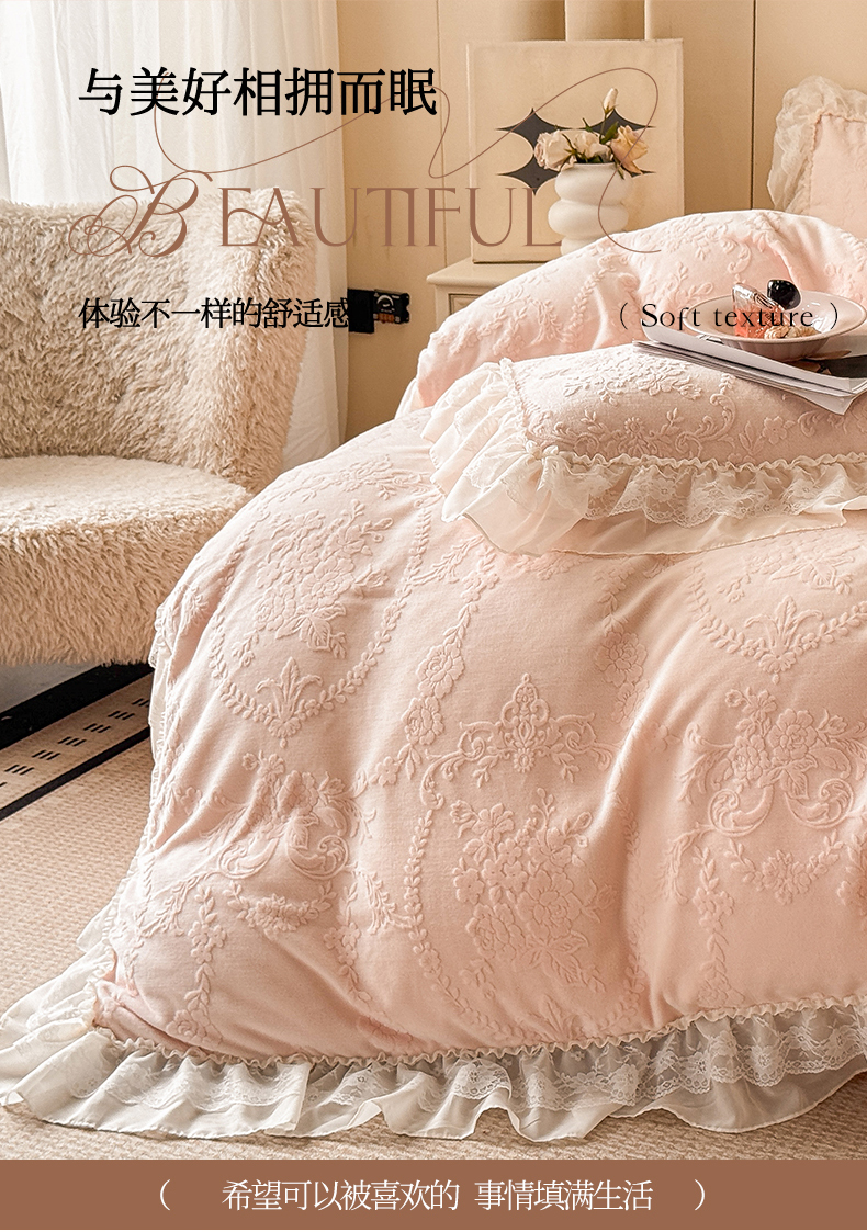 当前位置: 91家纺网 > 商品网购 > 床品套件 > 四件套 > 牛奶绒四件套 > 爱家(原缔乐家纺) 2025新款A类牛奶雕花绒四件套 米娜系列 米娜-公主粉