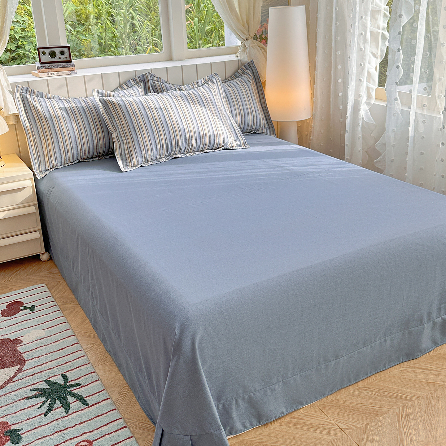 简约家纺 2025新款全棉磨毛印花单品床单 艾尔伦-蓝