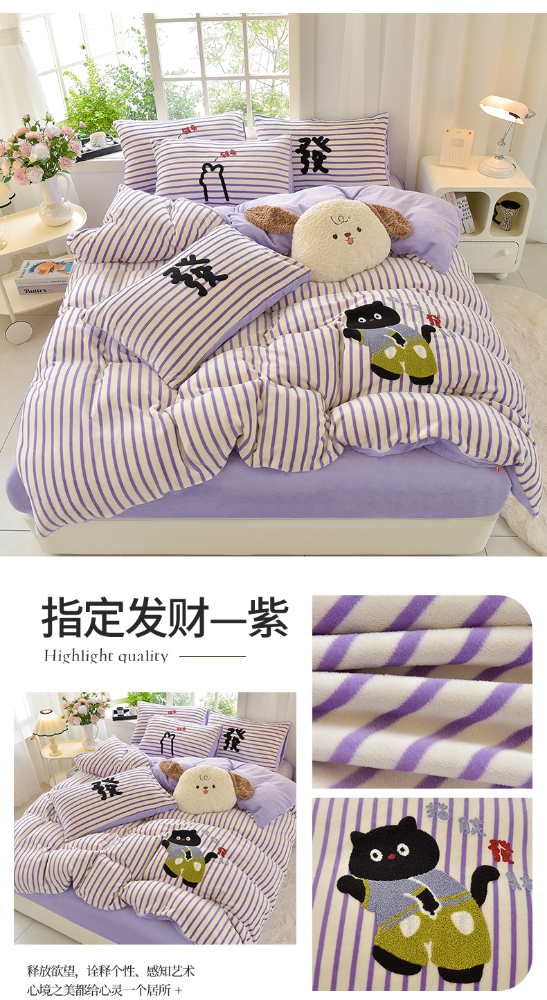 (总)炫拼家纺 2025新款高克重牛奶绒格子卡通毛巾绣加厚四件套-糖宝系列,糖宝-半勺清风,糖宝-喵了个咪,糖宝-甜豆女孩,糖宝-汪星日记,糖宝-星球萌宠,糖宝-元气小猪