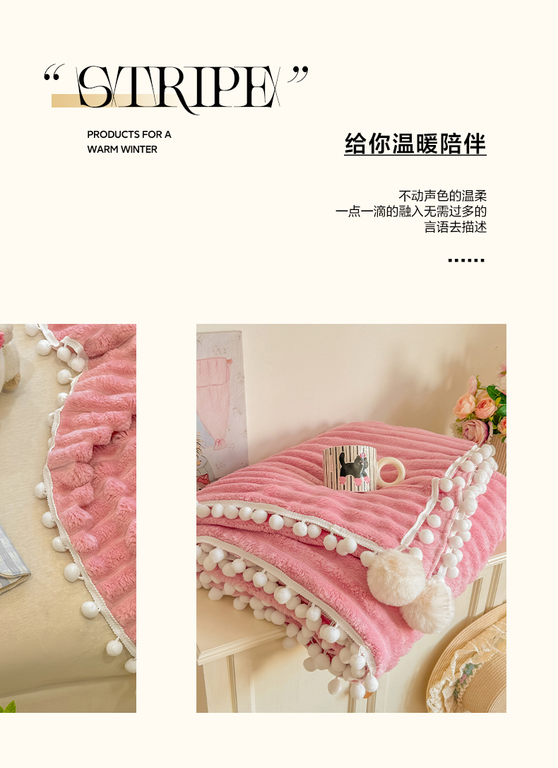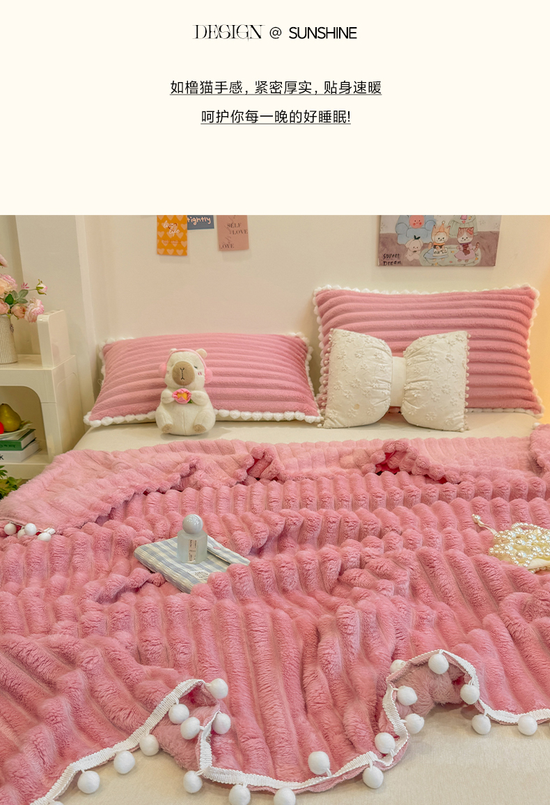 当前位置: 91家纺网 > 商品网购 > 毛毯休闲毯绒毯 > 毛毯 > 眠势力 2025新款高克重毛毯抽条兔毛绒毯子多功能小球球加厚雪球盖毯 云朵雪球毯-粉