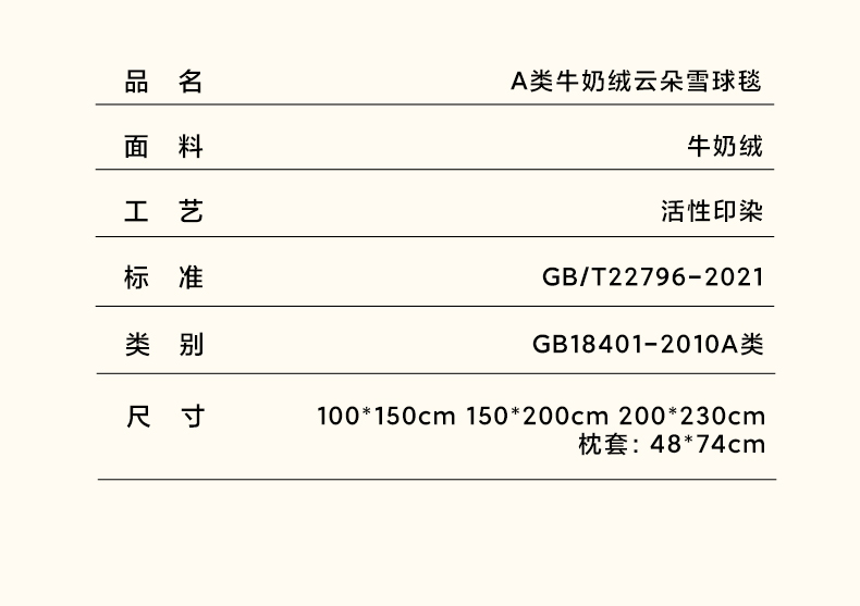 200*230cm单件毛毯 | ¥46.00 |