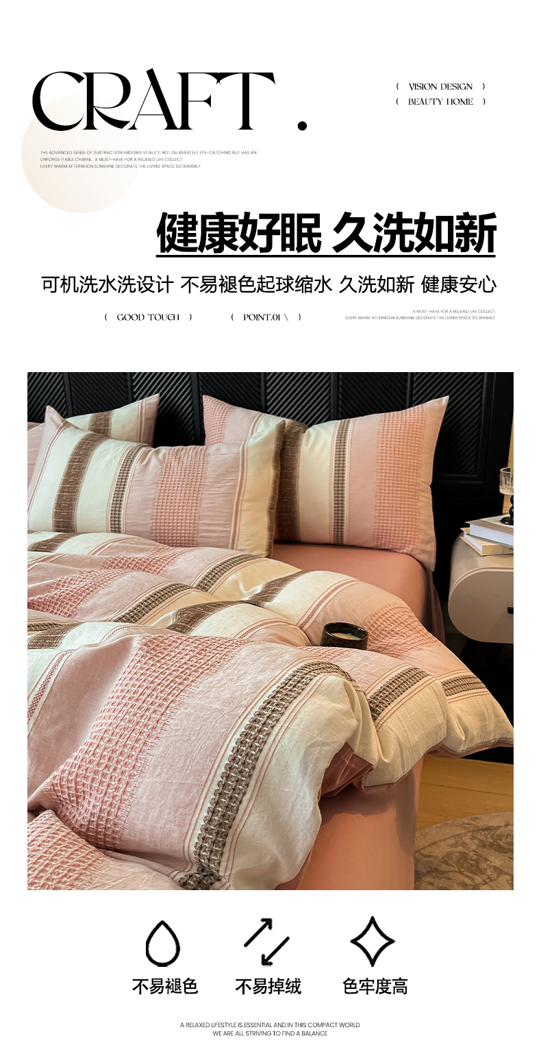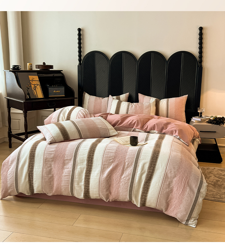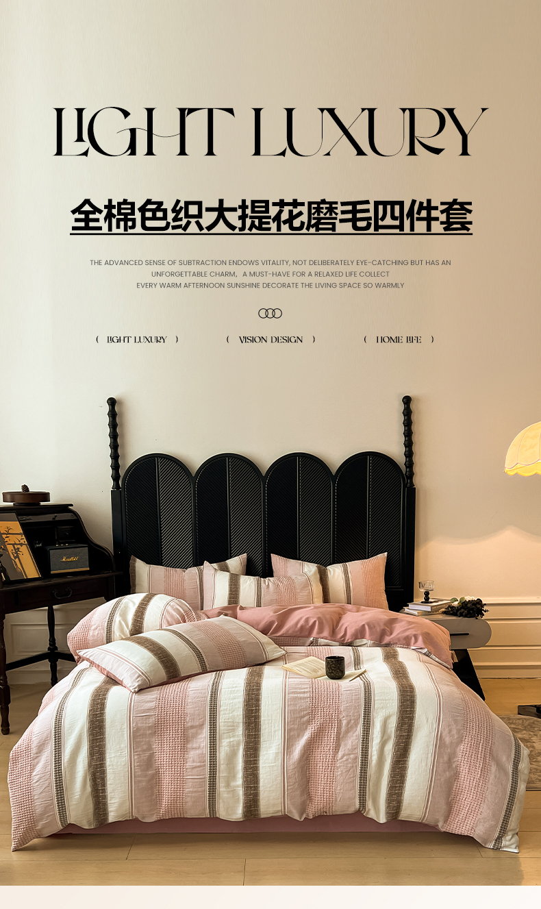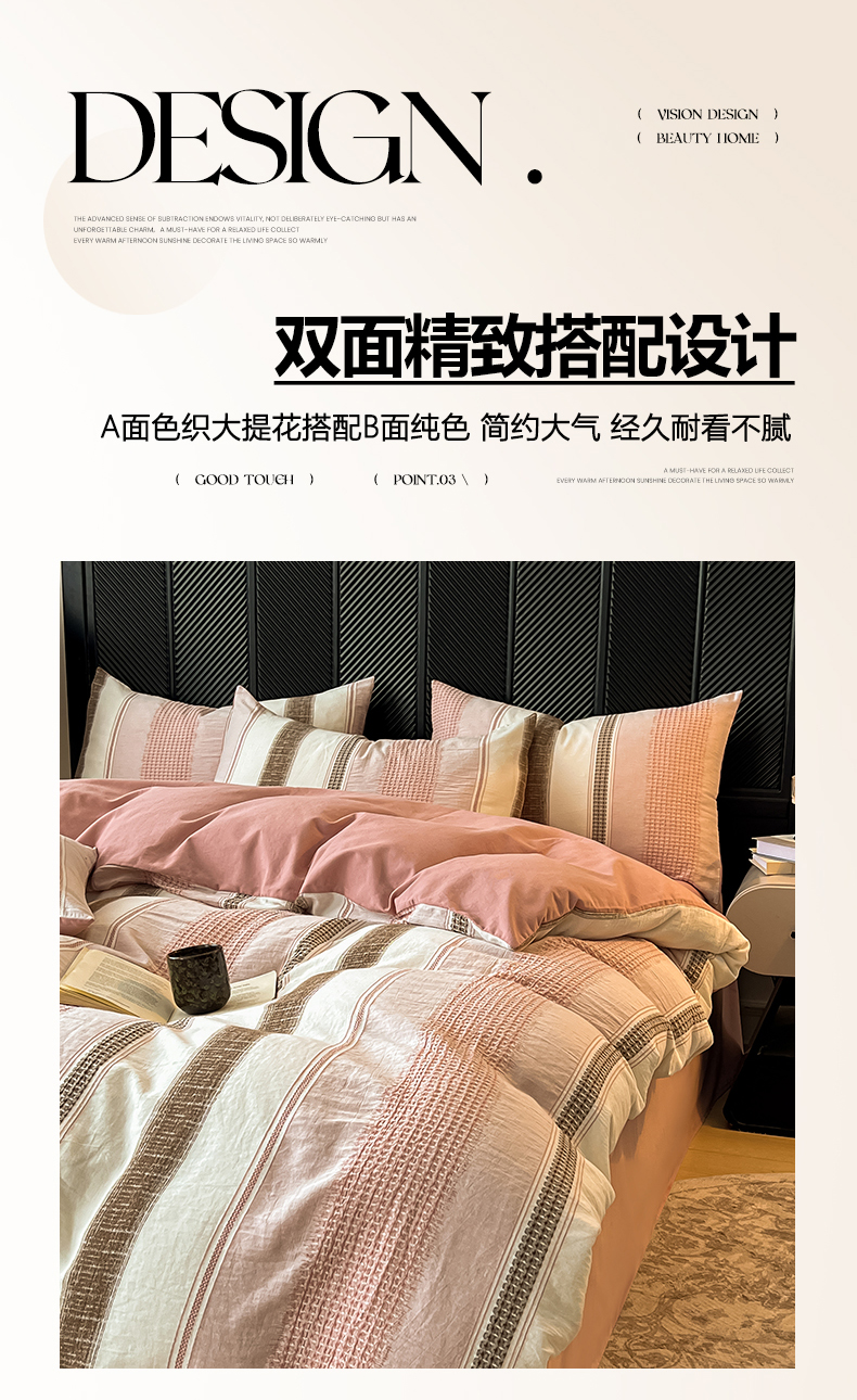 莱茵家居 2025新款A类简约60S色织提花磨毛四件套 丝序-胭脂粉
