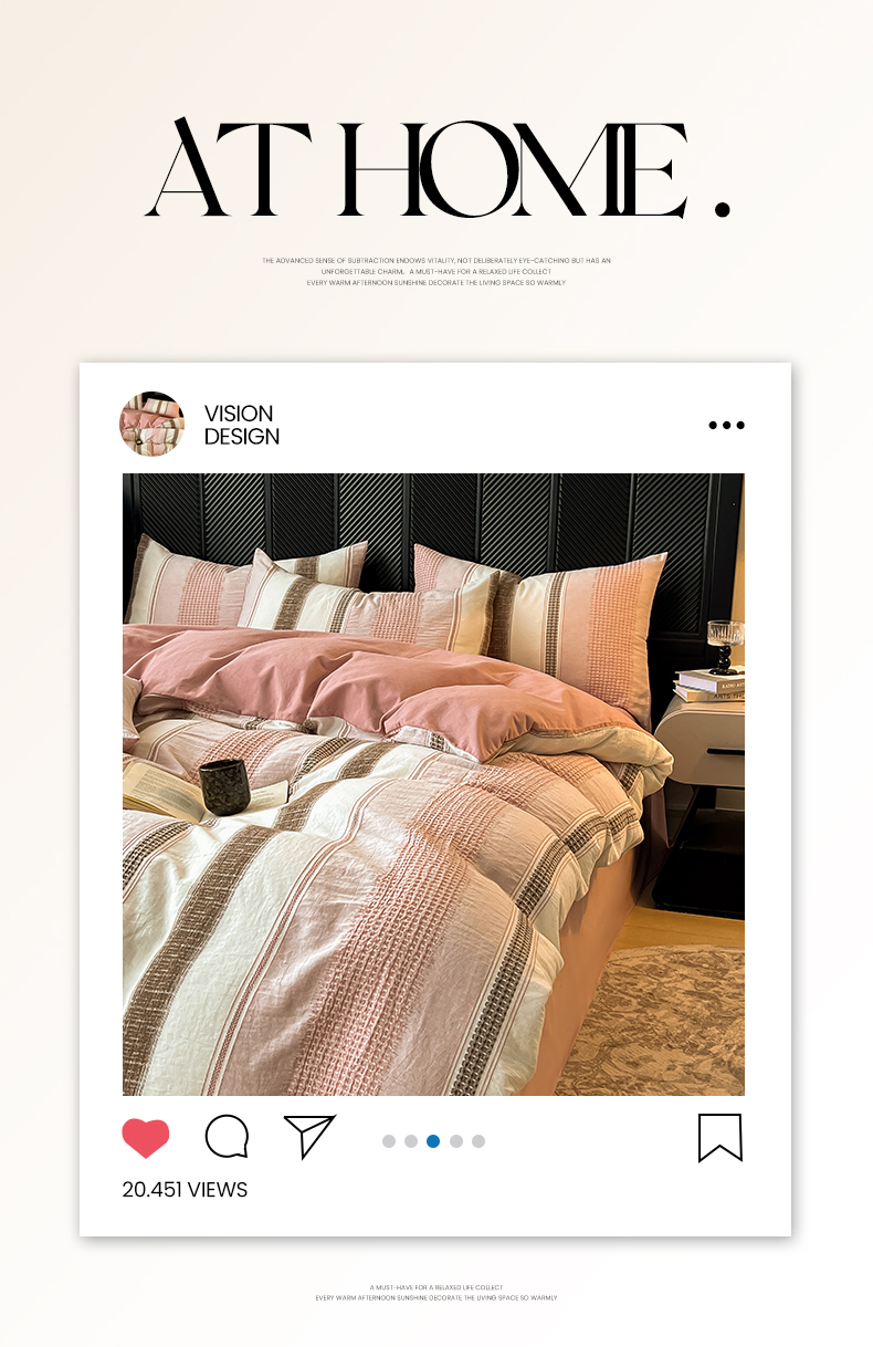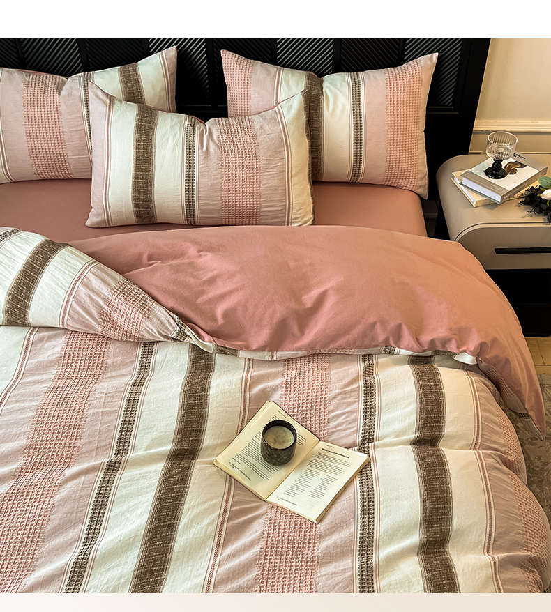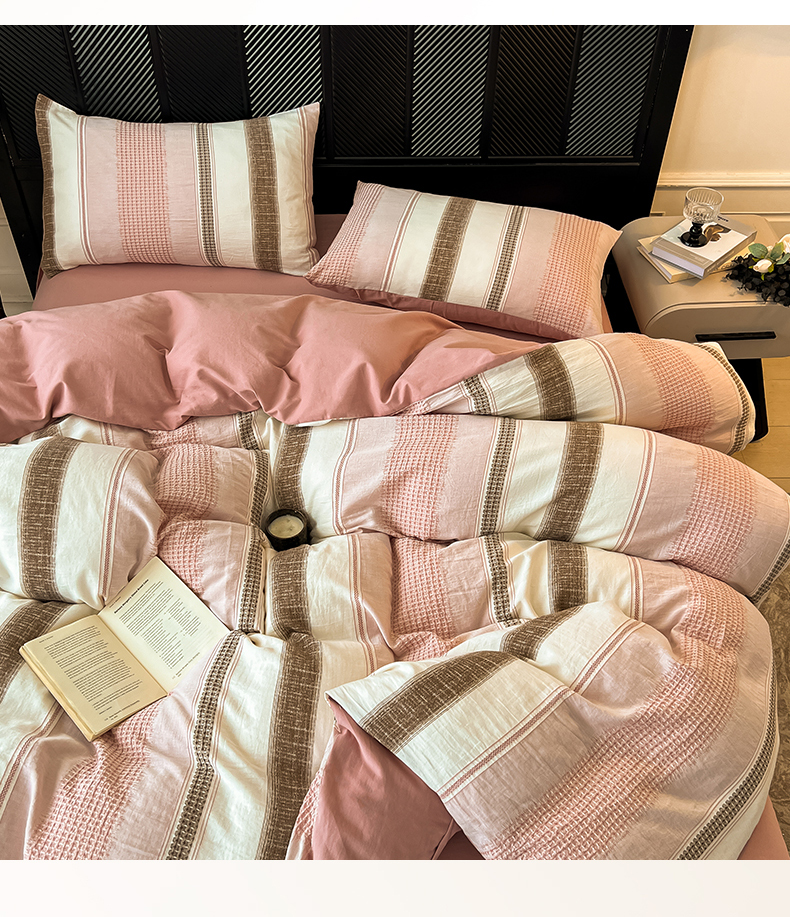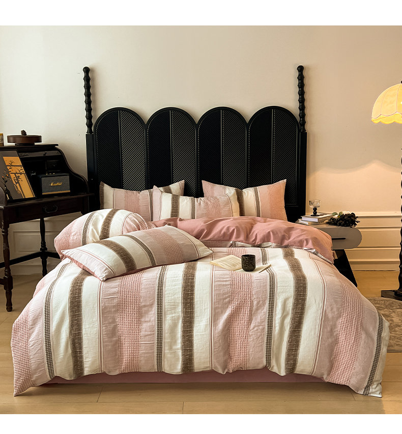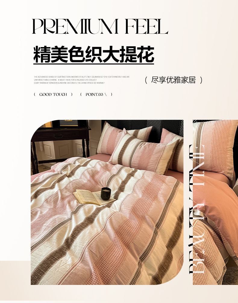 莱茵家居 2025新款A类简约60S色织提花磨毛四件套 丝序-胭脂粉