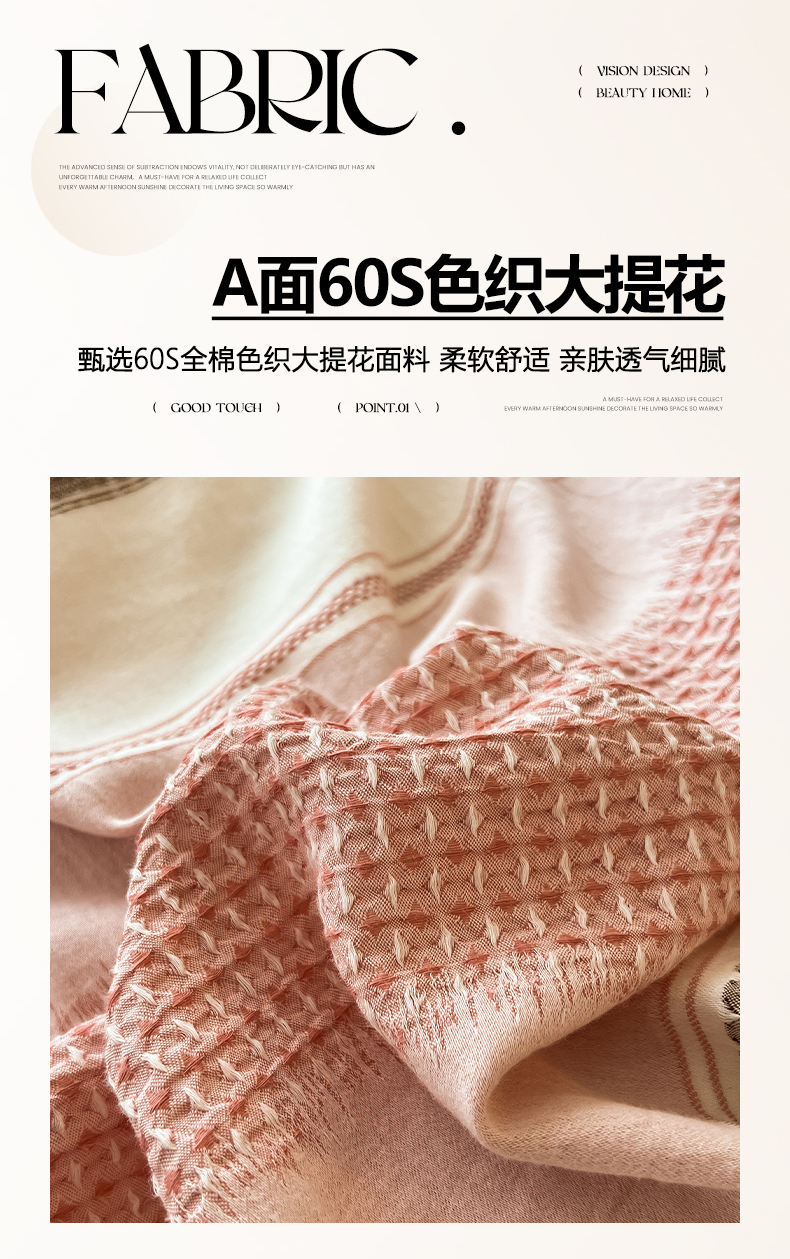 (总)莱茵家居 2026新款A类全棉纯棉色织大提花贝壳边四件套-序语松间系列,松间-粉,松间-灰,松间-蓝,松间-棕,序语-粉,序语-灰,序语-咖,序语-蓝,序语-绿