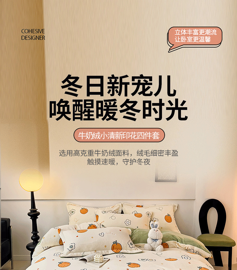 当前位置: 91家纺网 > 商品网购 > 床品套件 > 四件套 > 牛奶绒四件套 > 富馨莱 2025新款牛奶绒印花四件套240克面料支持一件定制尺寸 心想事橙