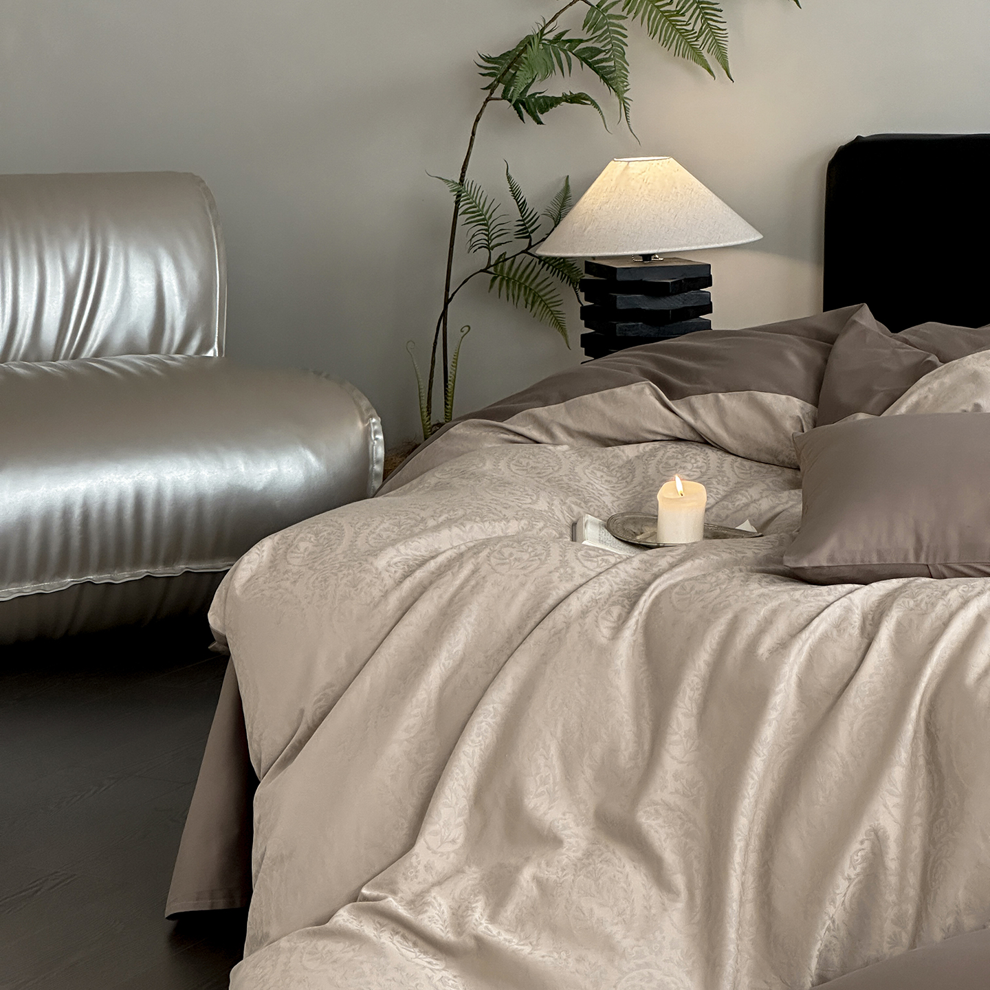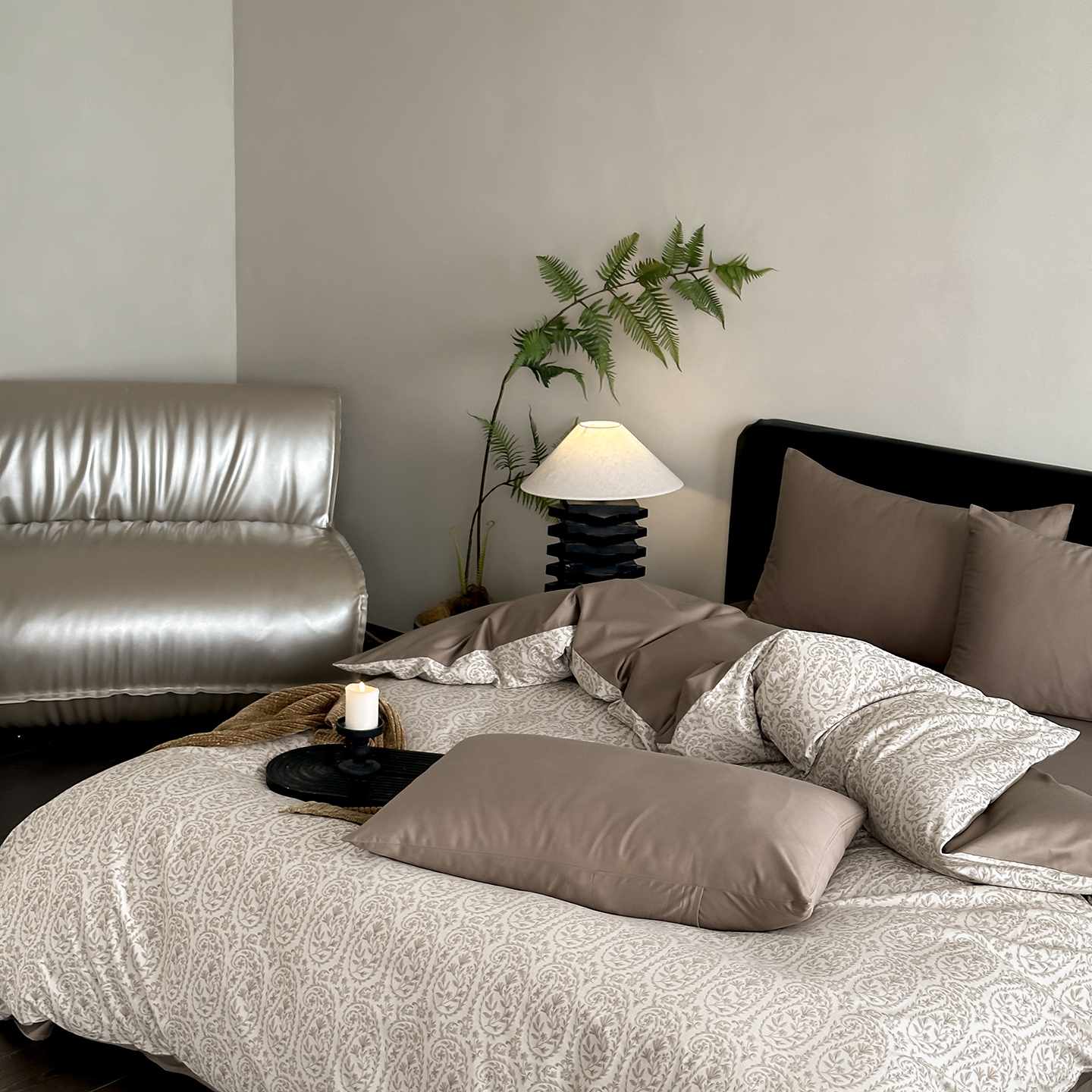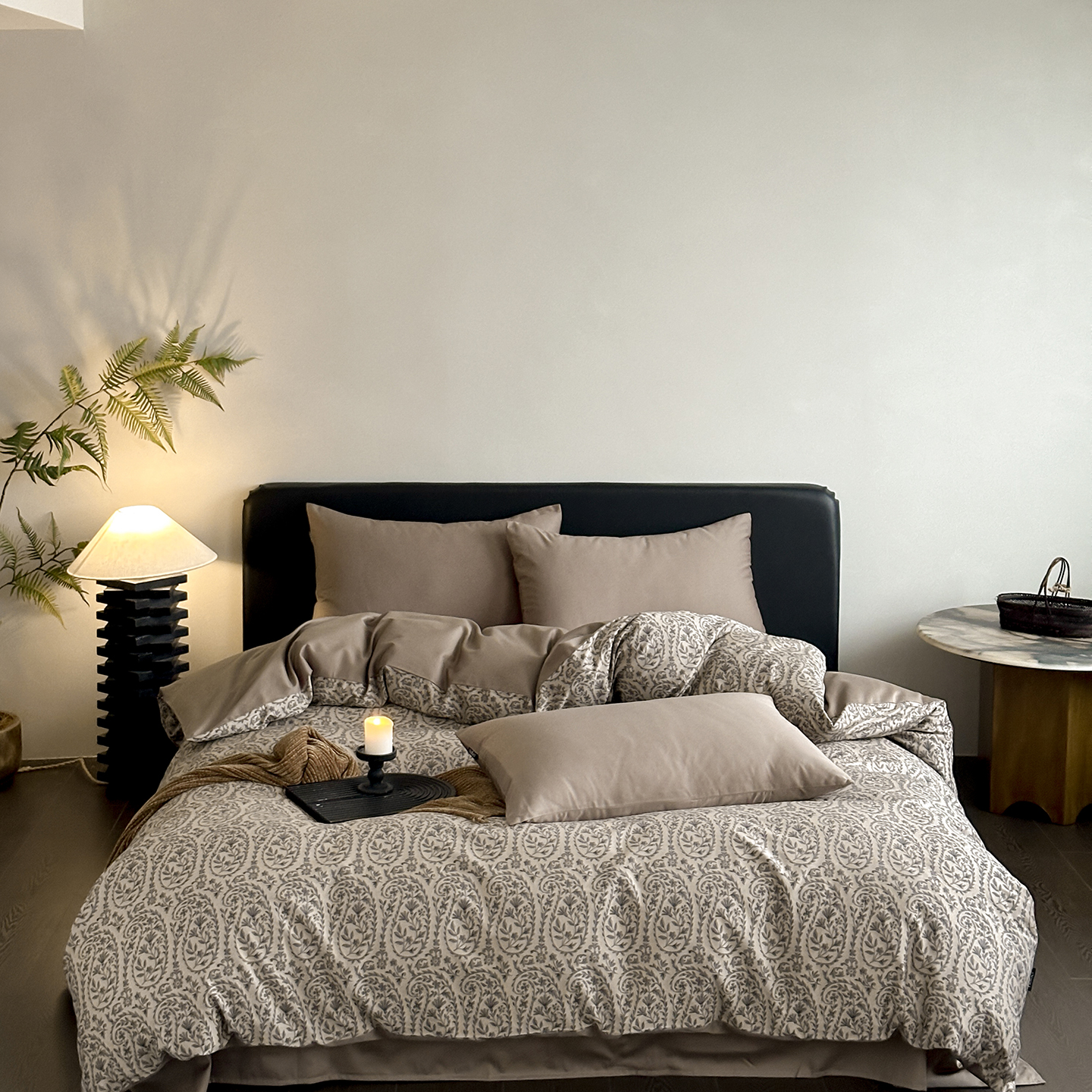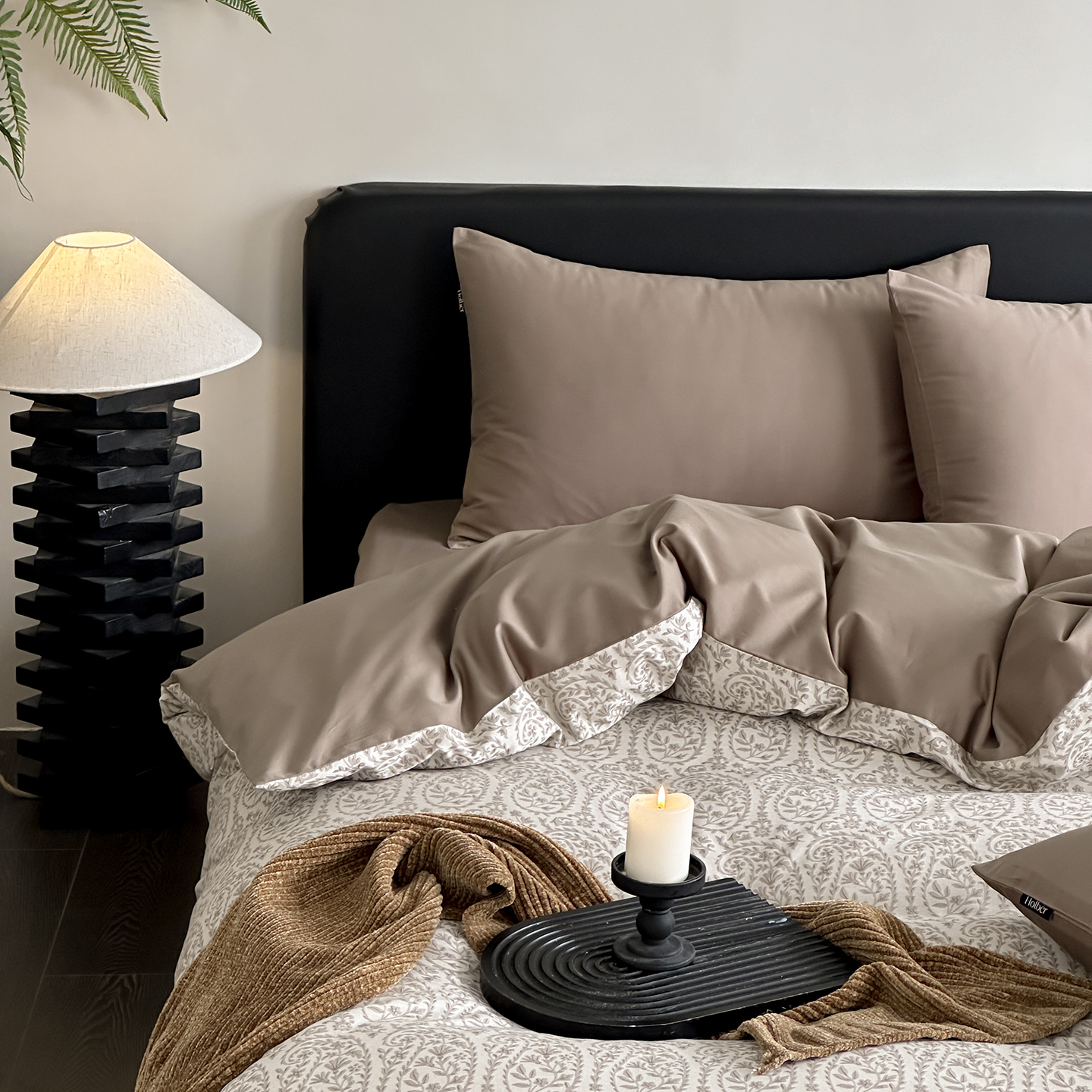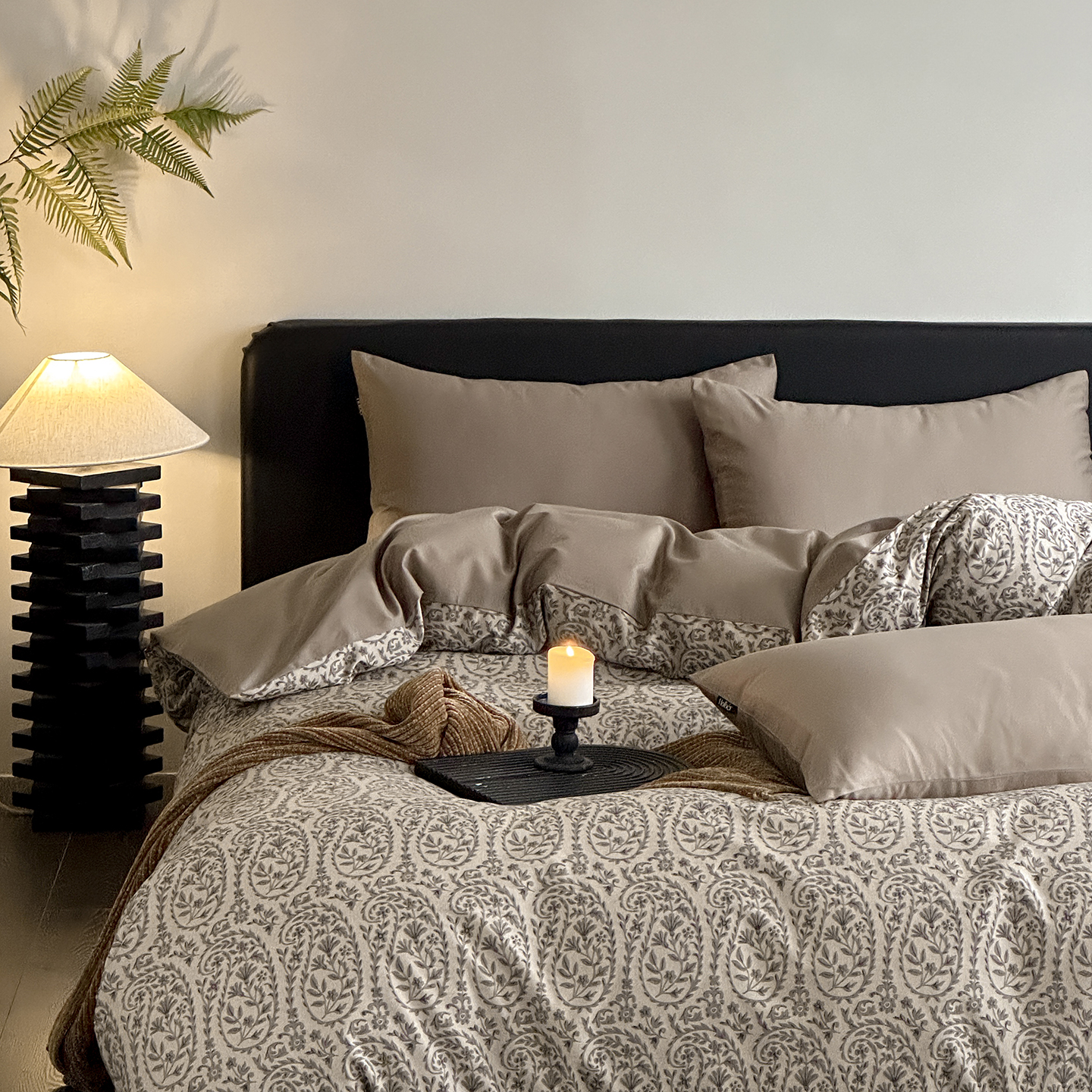 商品名称:赫帛 2025新款60支全棉色织提花磨毛四件套-腰果花 腰果花-奶咖色