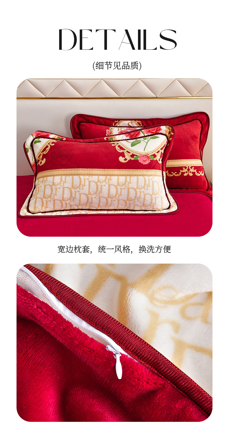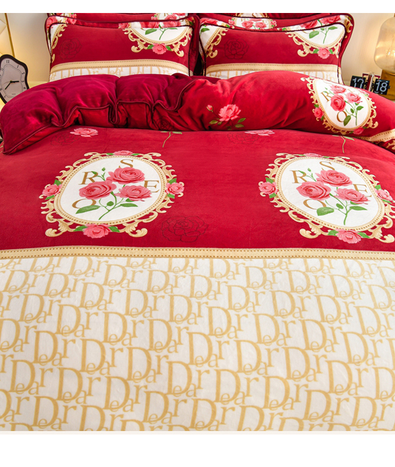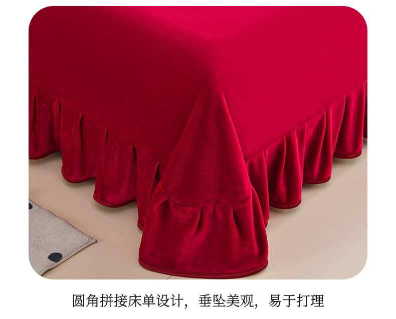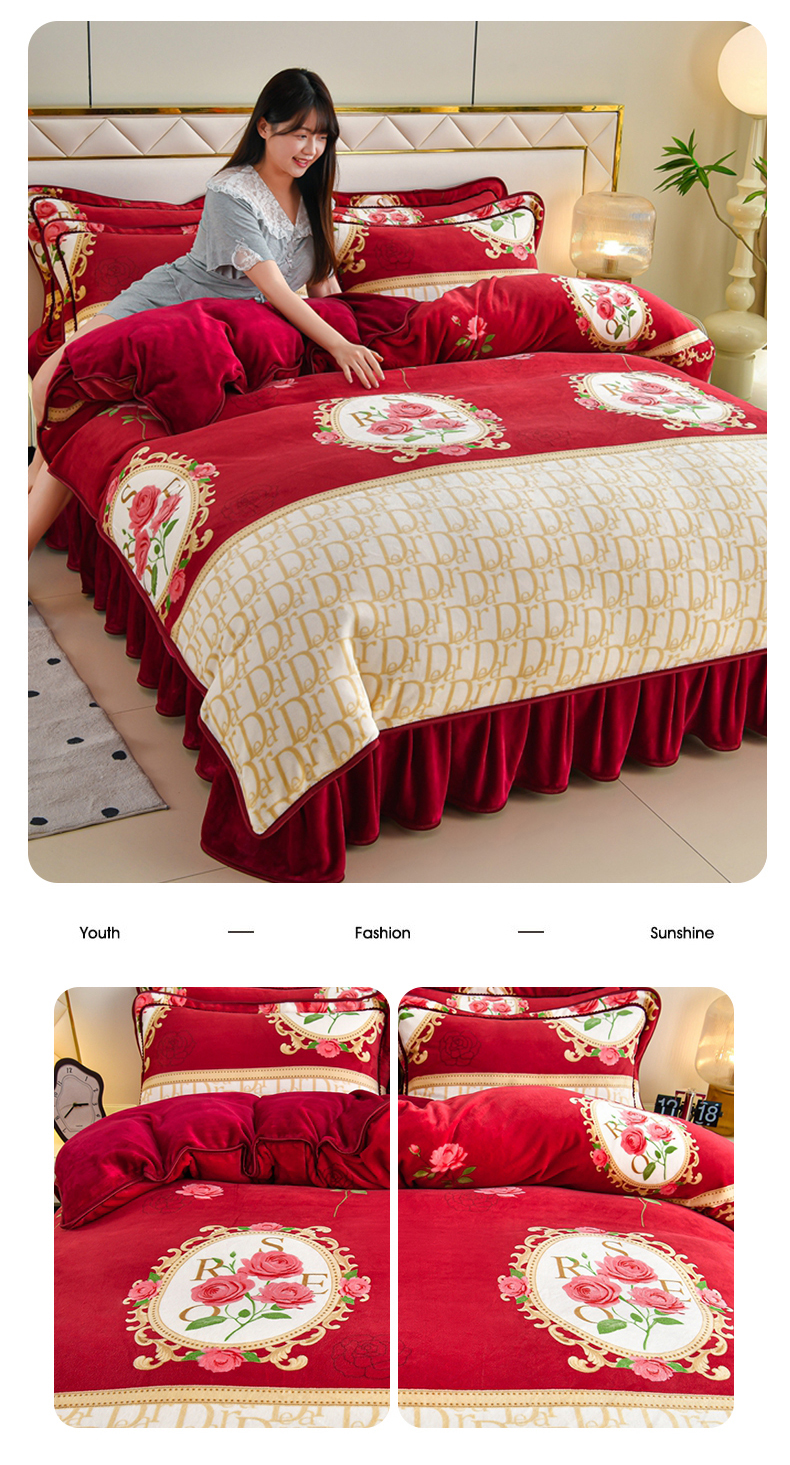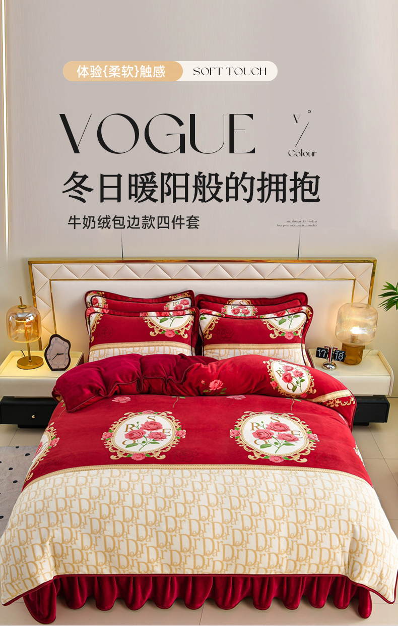 商品名称:赫本 2025新品8斤爆品牛奶绒四件套床裙款金雕绒法莱绒四套件 织梦-红