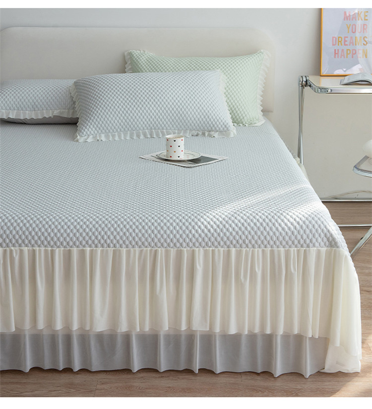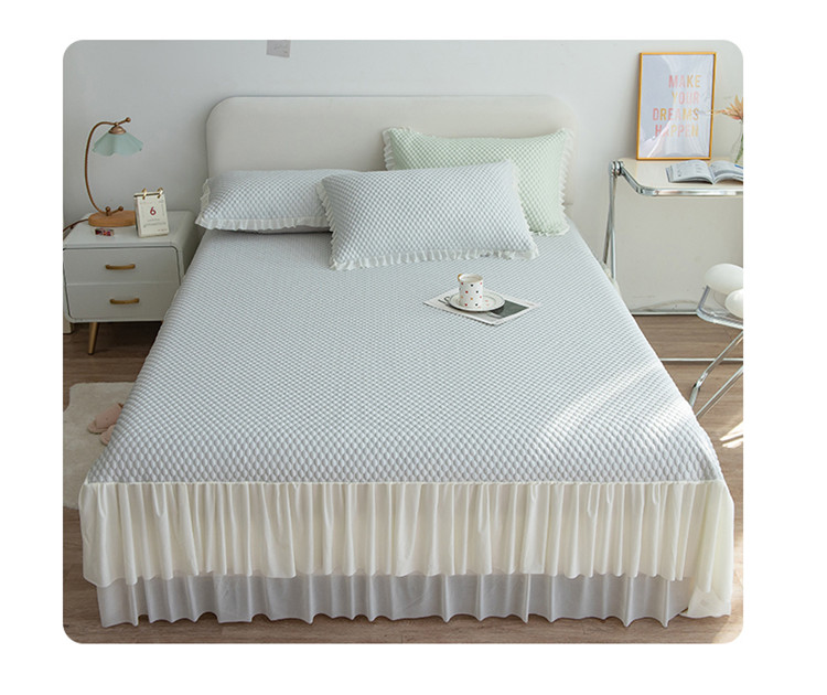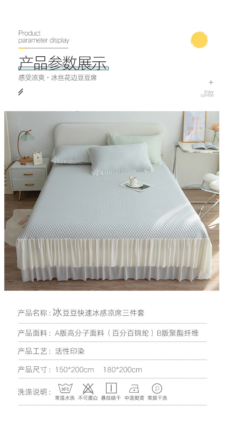 商品名称:梵克保罗 2025新款蕾丝花边床单款凉豆豆快速冰感凉席三件套 豆豆绿