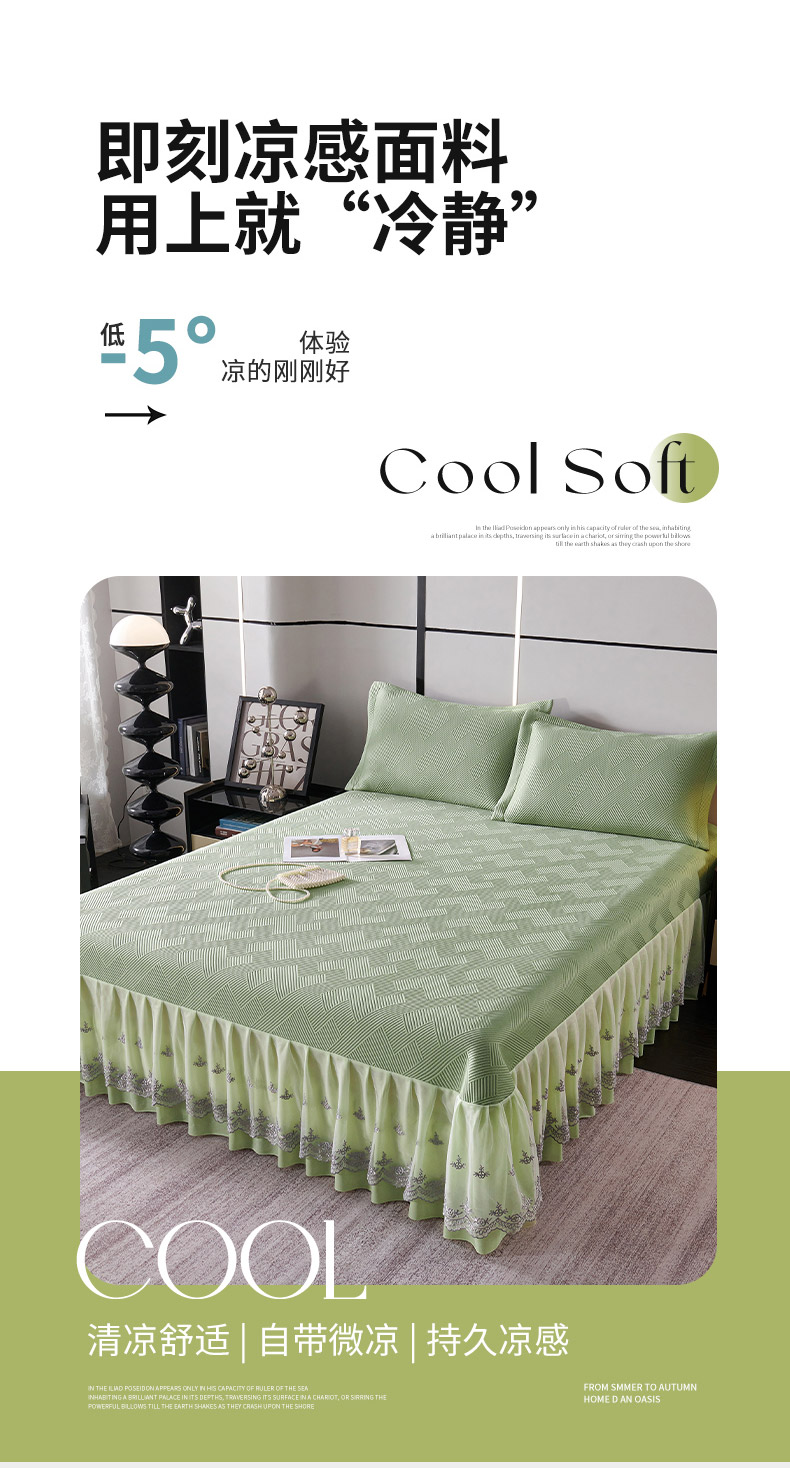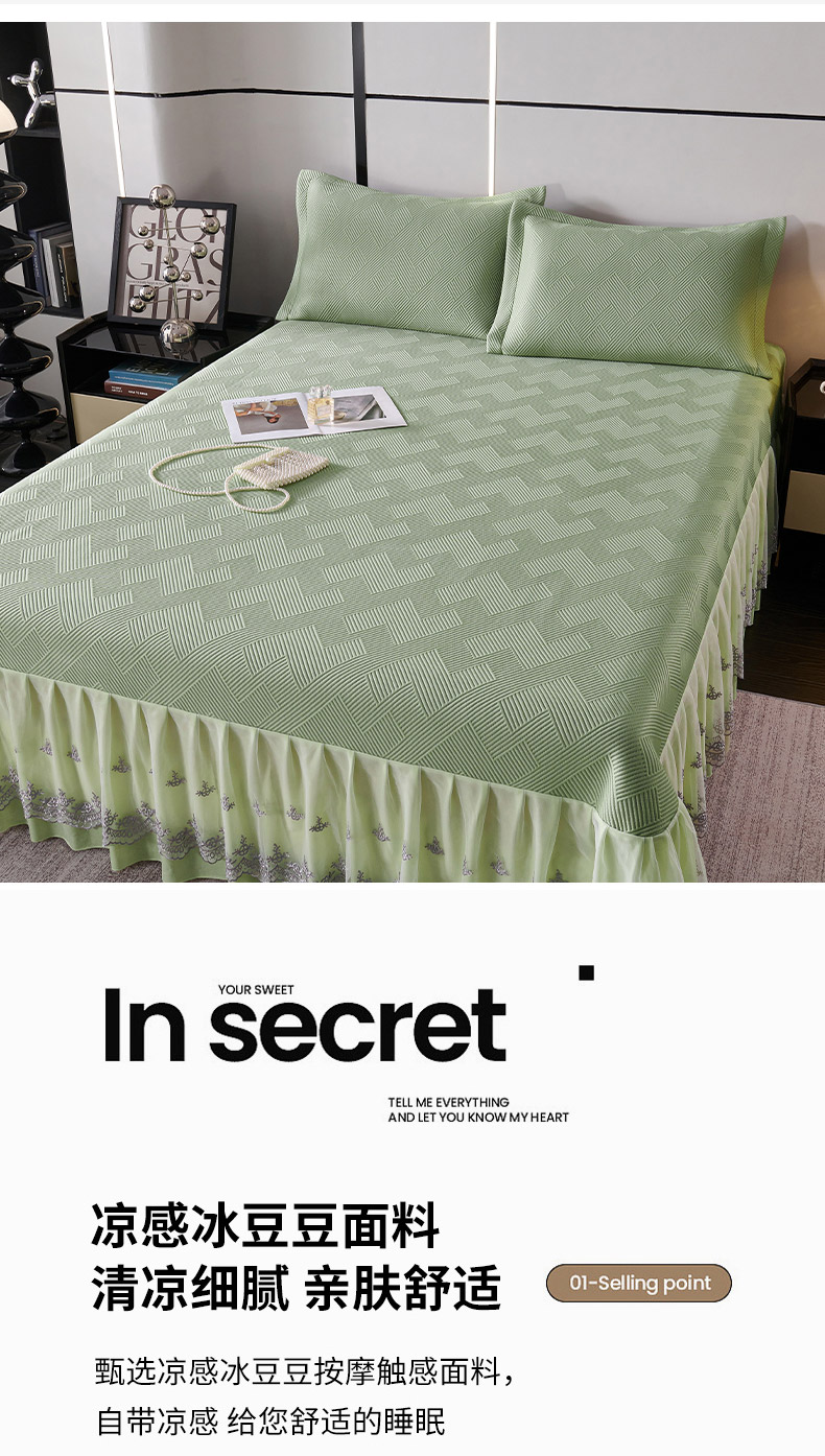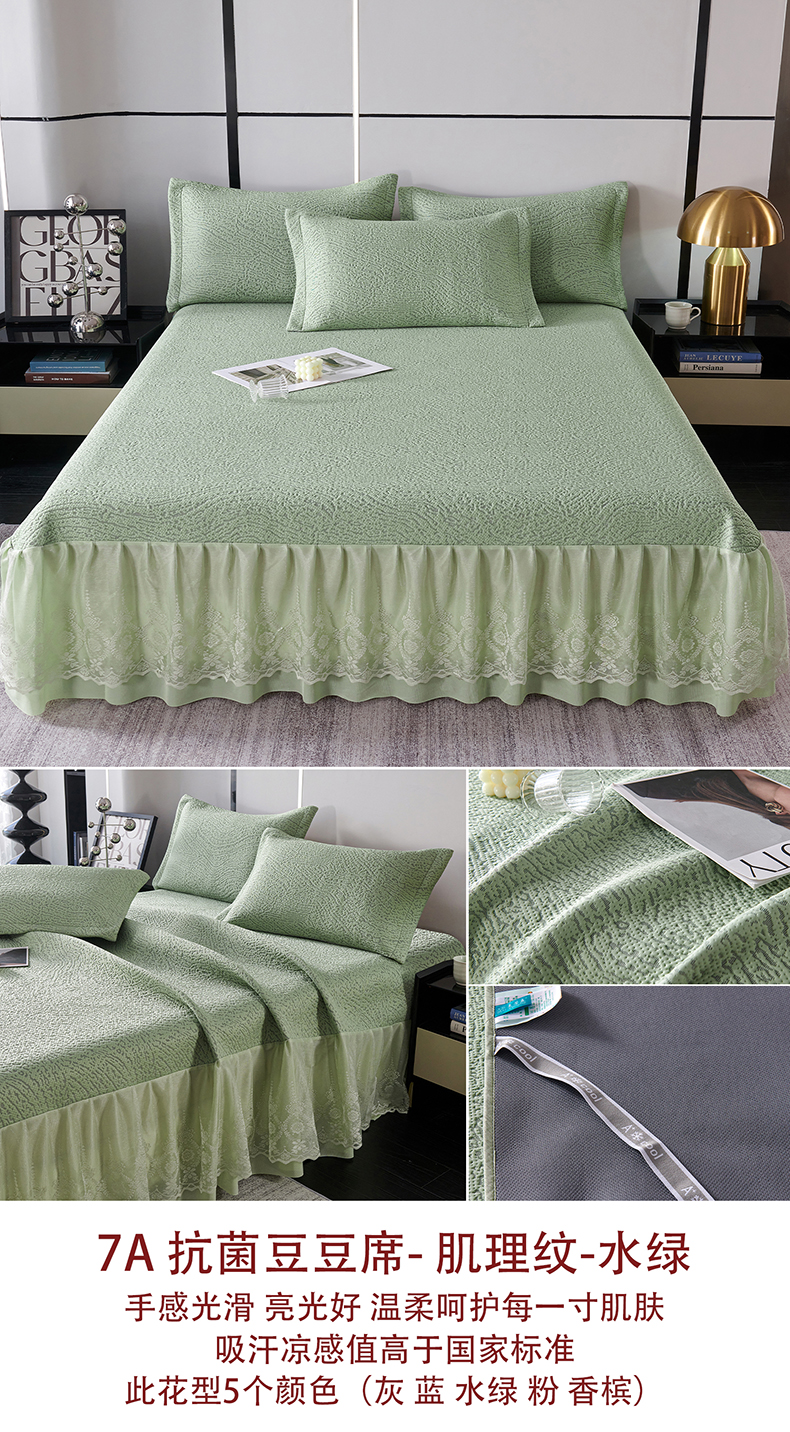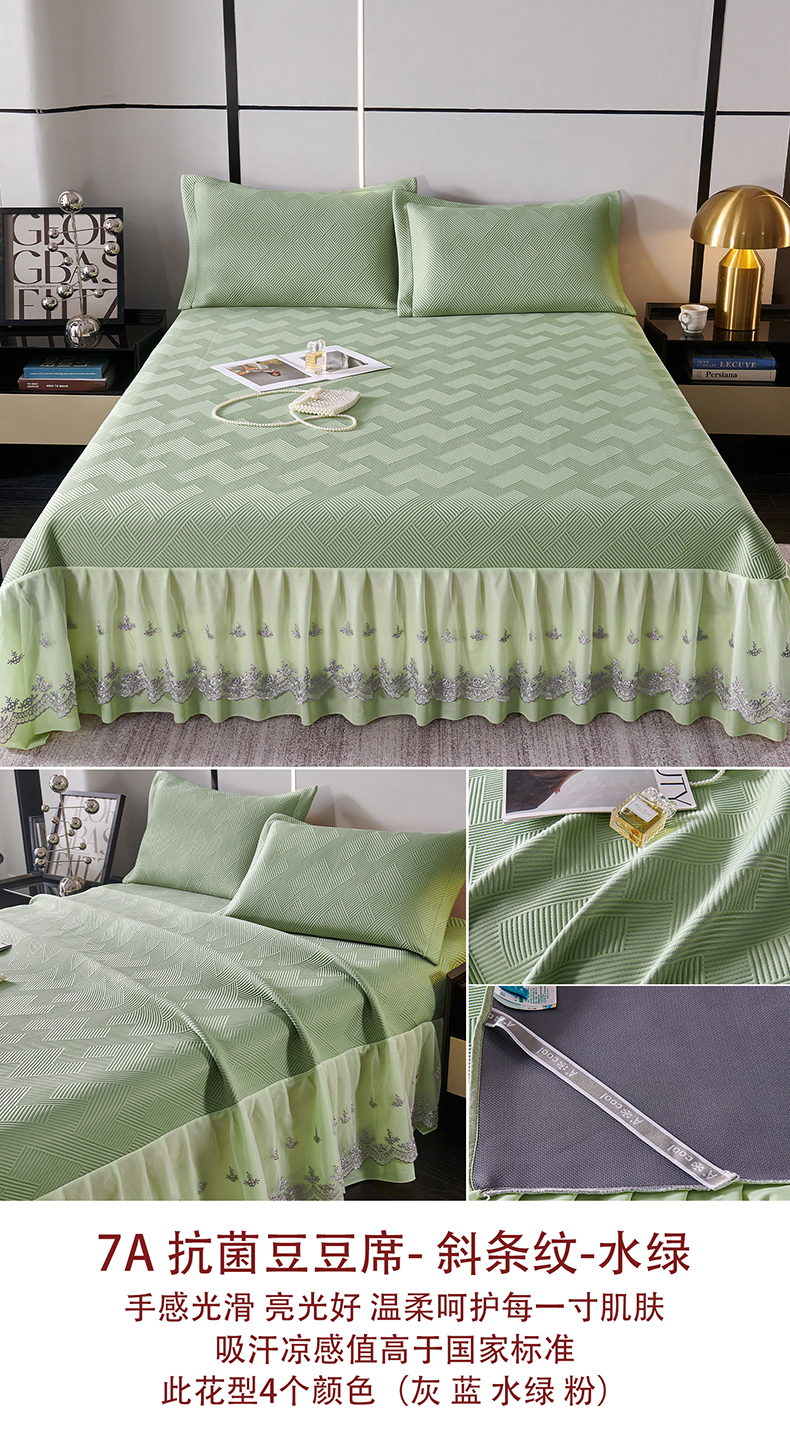商品名称:梵克保罗 2025新款7A抗菌母婴级纯乙纶PE刺绣凉感丝豆豆席床单款 肌理纹-蓝