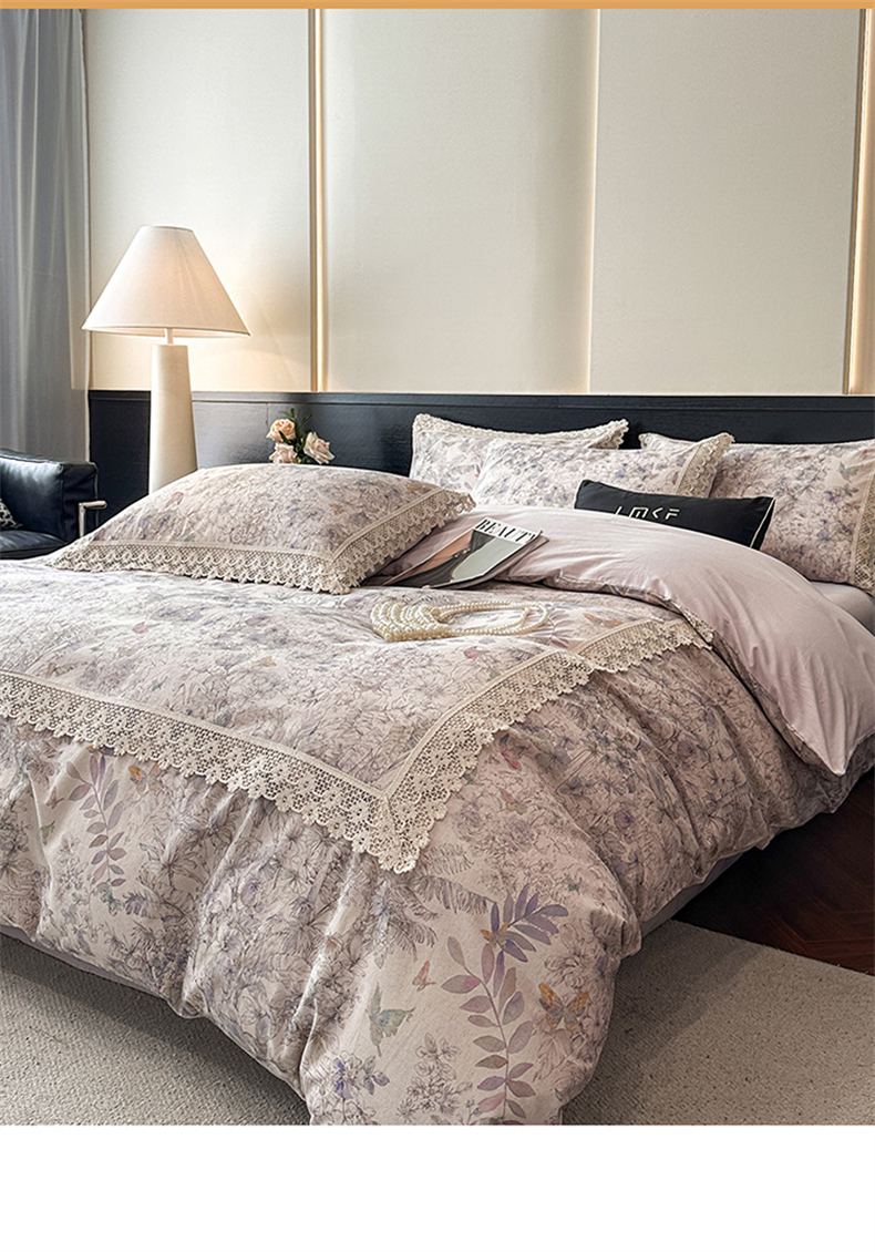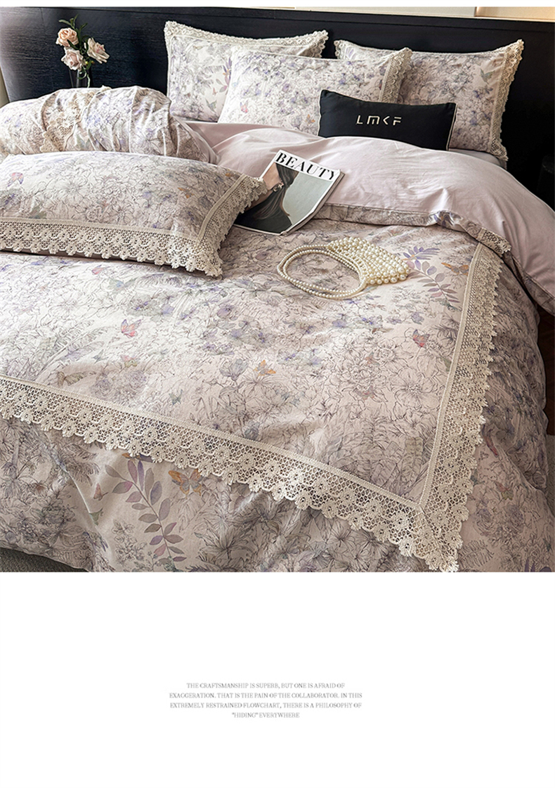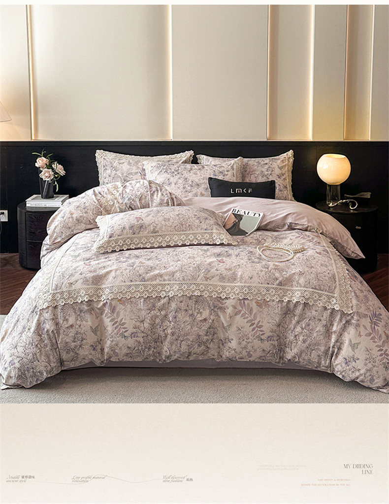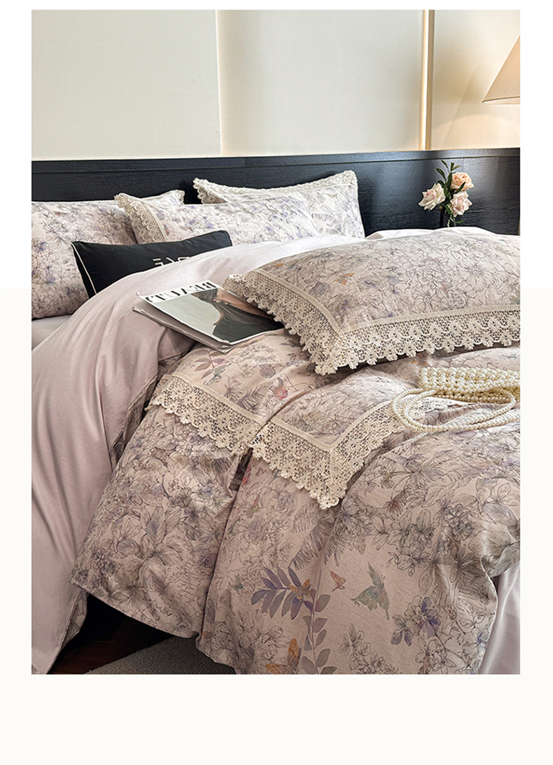 蓝米卡夫 2025秋冬-A类棉麻全棉数码印花50S*50S双股磨毛公主风系列(礼盒包装)【如需买家秀联系15996631948】 清逸花蝶