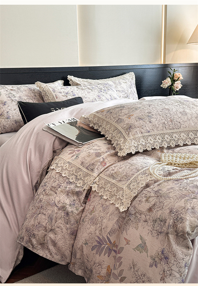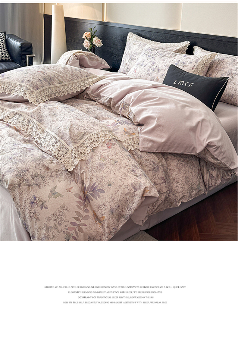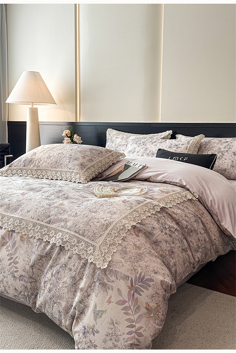 蓝米卡夫 2025秋冬-A类棉麻全棉数码印花50S*50S双股磨毛公主风系列(礼盒包装)【如需买家秀联系15996631948】 清逸花蝶
