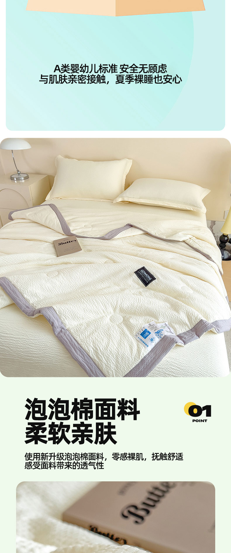 商品名称:梵克保罗 2025春夏新品10A抗菌泡泡棉大豆单夏被空调被被子被芯 卡其
