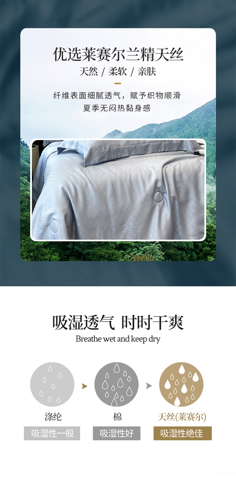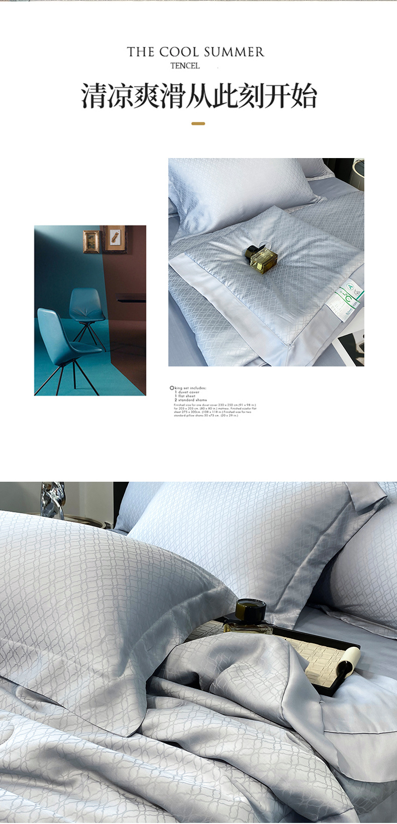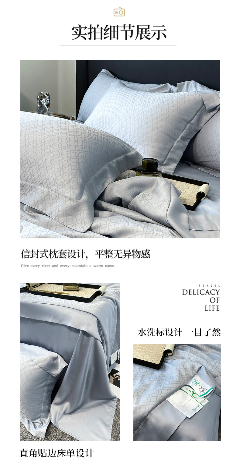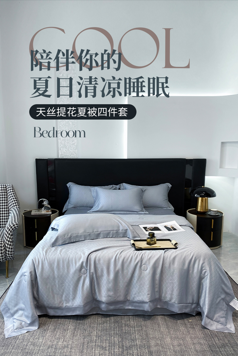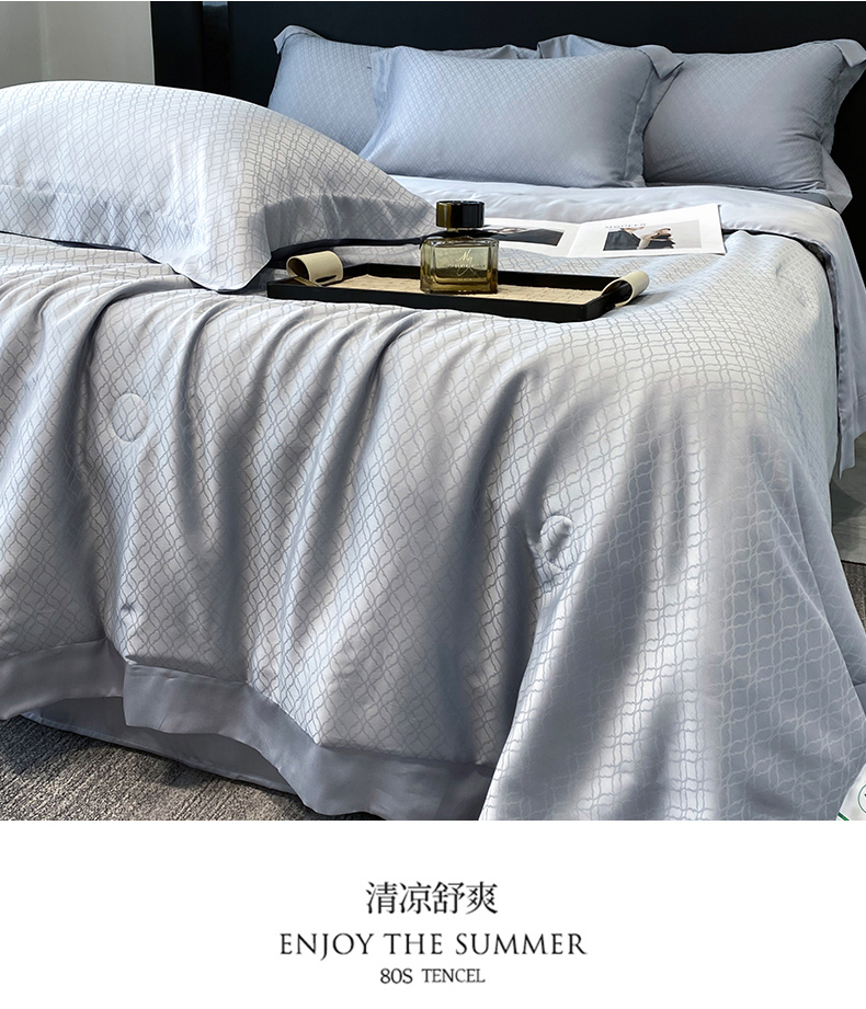 • 91家纺网 家纺一手货源 找家纺 梵克保罗 2025春夏新款莱赛尔兰精天丝提花单夏被空调被夏被四件套 银灰