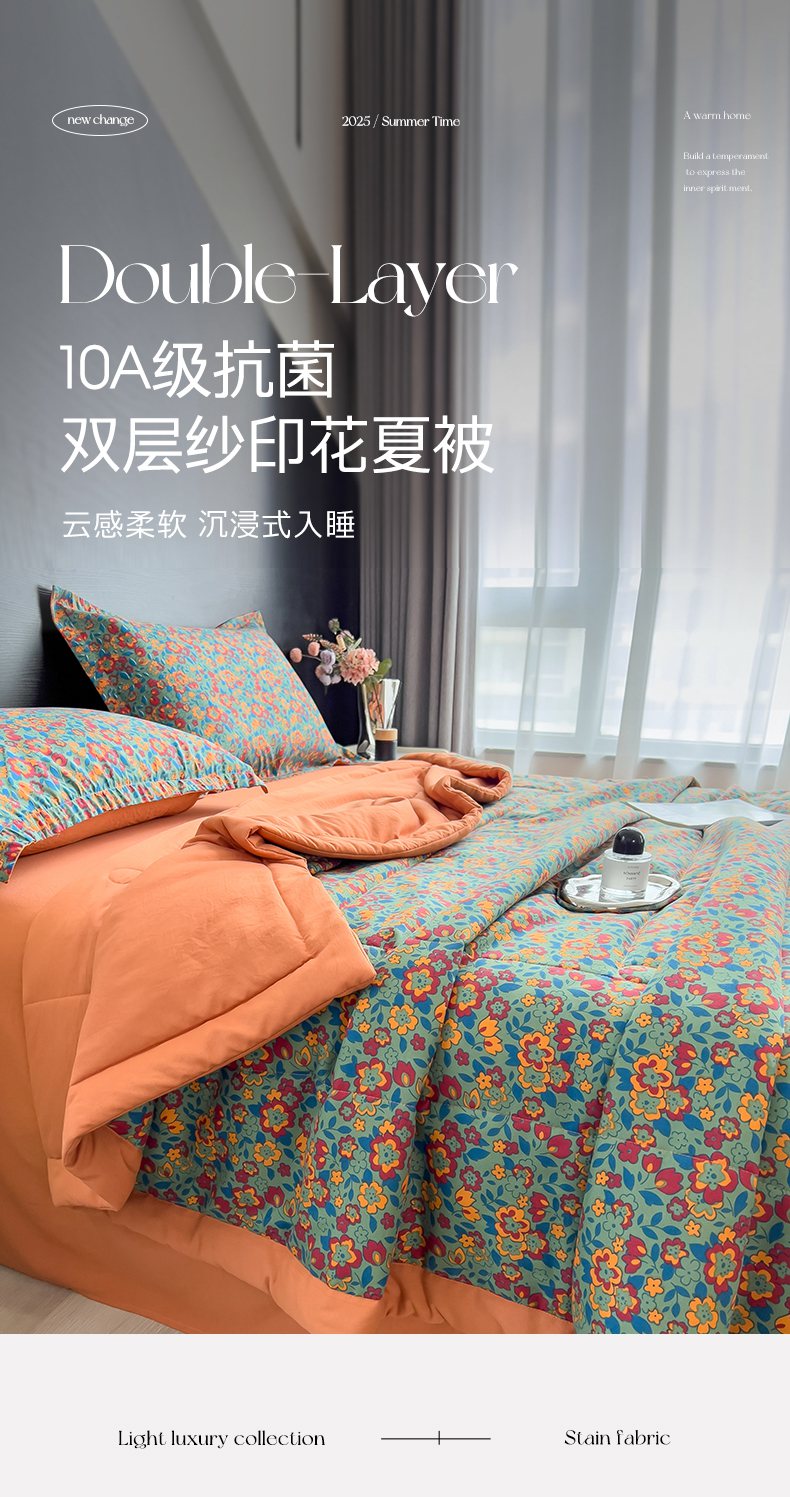 商品名称:梵克保罗 2025新款10A抗菌双层纱印花夏被系列 朝花夕拾