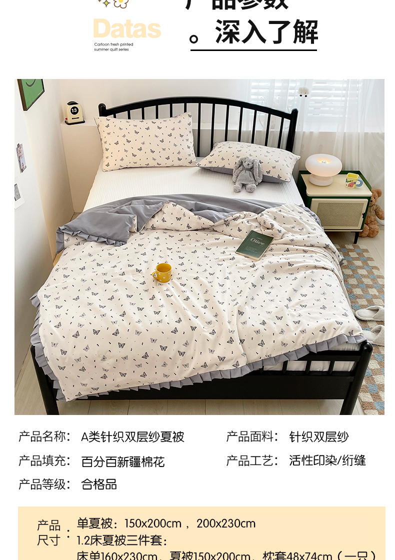 商品名称:汣沐生活 2025款A类针织棉双层纱夏凉被百分百新疆棉花填充空调被夏凉被四件套 梦星河