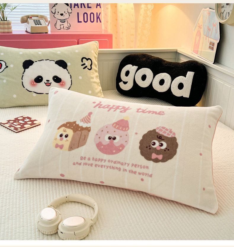 倾慕家纺 2026新款数码大版牛奶绒单枕套 饼干