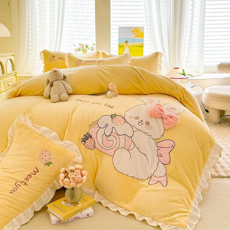 (总)漫布云2025秋冬新品大版卡通230g牛奶绒兔毛贴布绣婴儿绒四件套--可爱兔系列