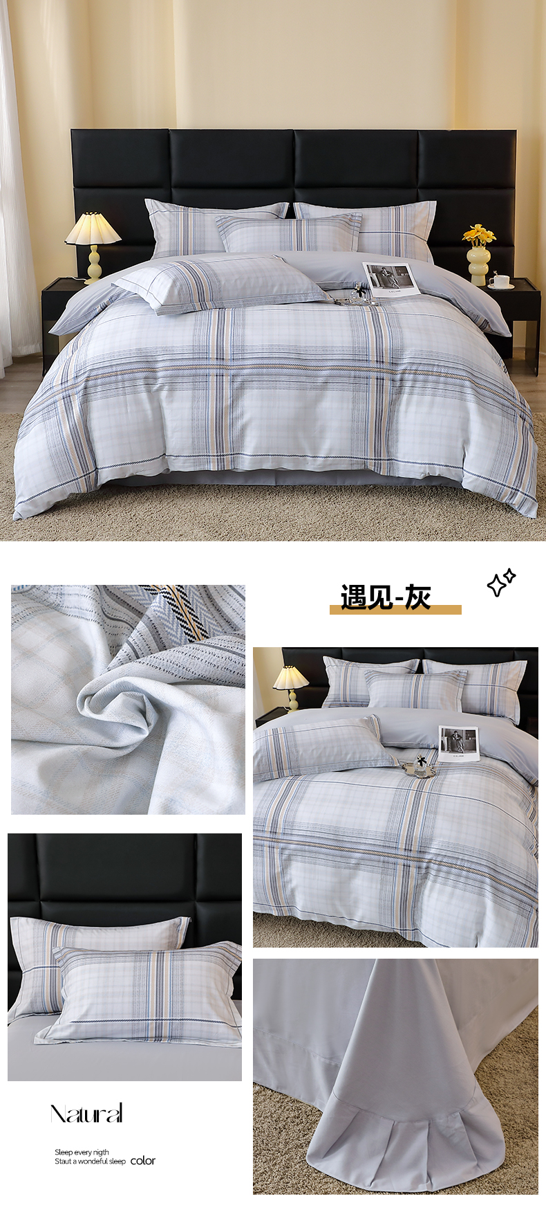 商品名称:馨雅家纺 2025新款全棉磨毛数码印花四件套 遇见-灰