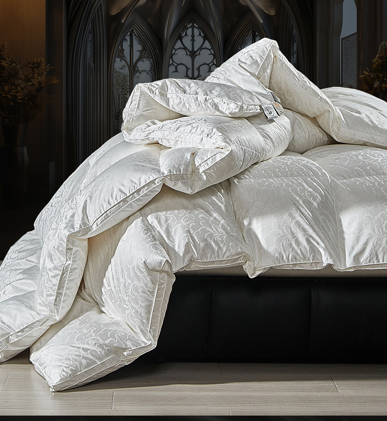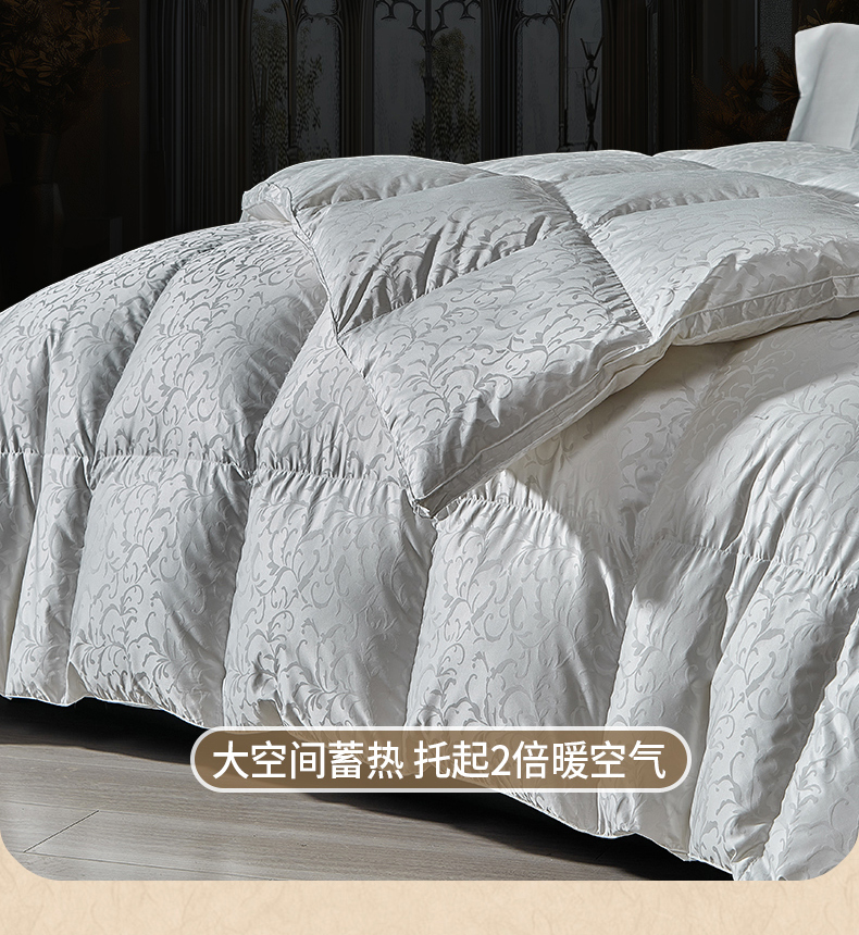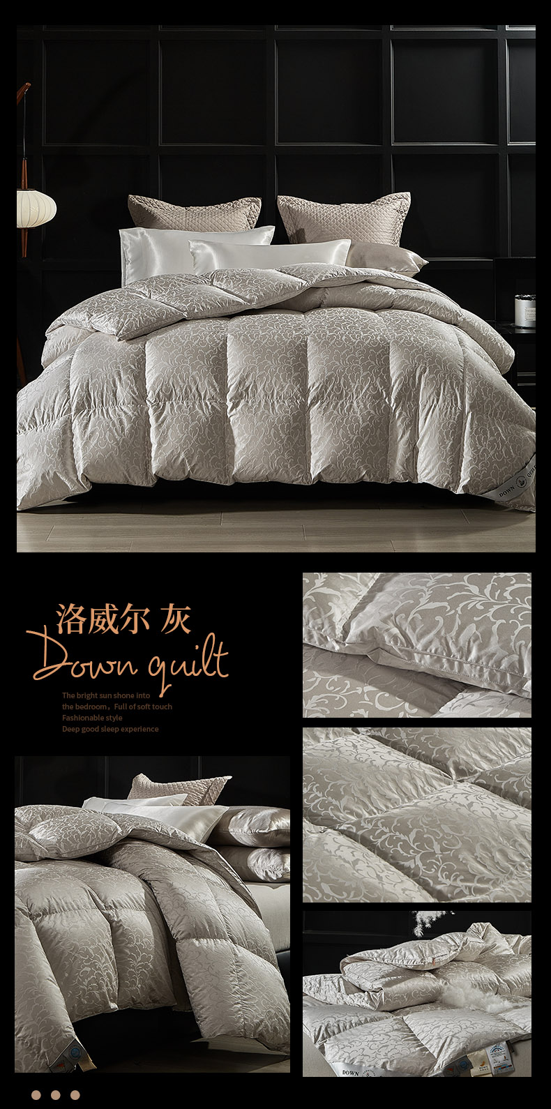 当前位置: 91家纺网 > 商品网购 > 被子 > 羽绒被 > 暖羽屋羽绒馆 2025新款95鸭绒95绒子含量超精密金银丝大提花冬被羽绒被子双人羽绒春秋被芯 洛威尔 灰