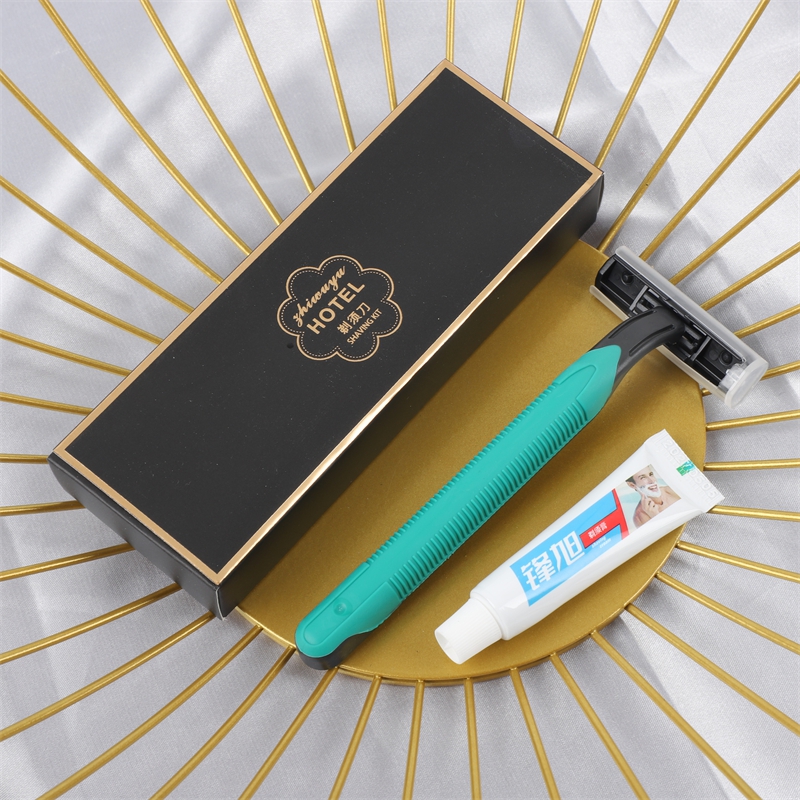 黑色烫金卡盒注胶绿剃须刀带滑条5克须膏装入透明opp