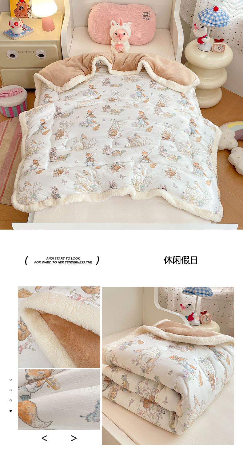 丝涟家居 2025新款A类双面针织棉卡通小清新滚绳工艺夏被动物世界,动物世界