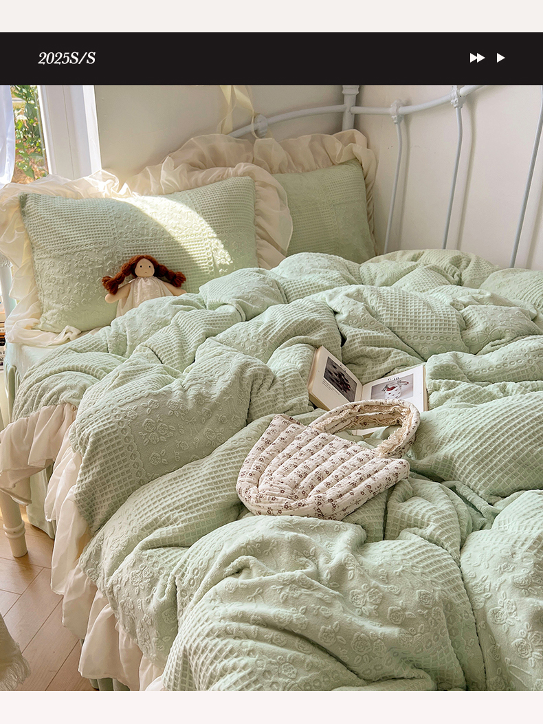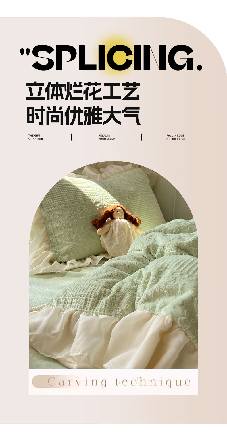 当前位置: 91家纺网 > 商品网购 > 床品套件 > 四件套 > 牛奶绒四件套 > 轻奢坊 2025牛奶绒全消光烂花双层雪纺纱花边四件套-甜糖 甜糖粉
