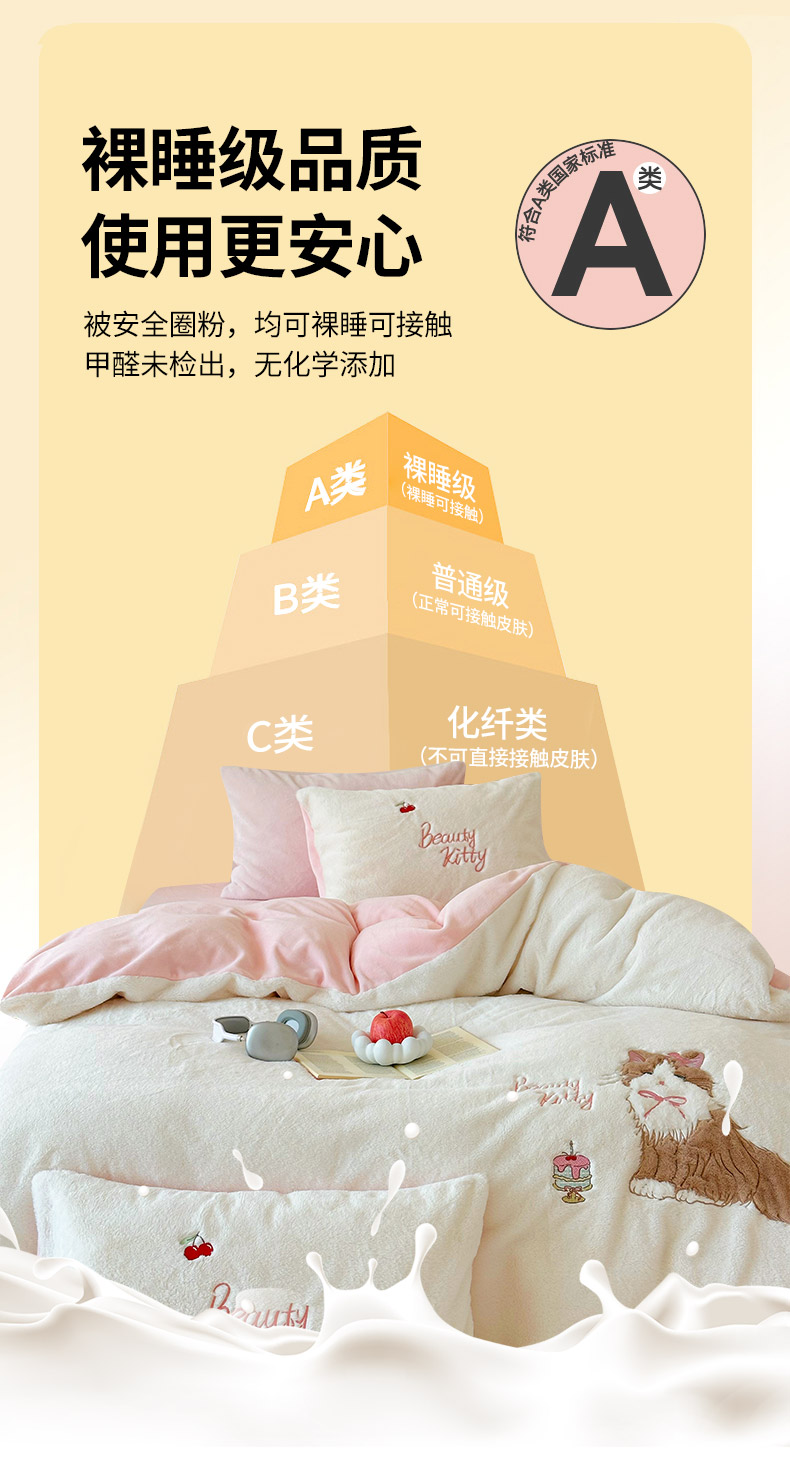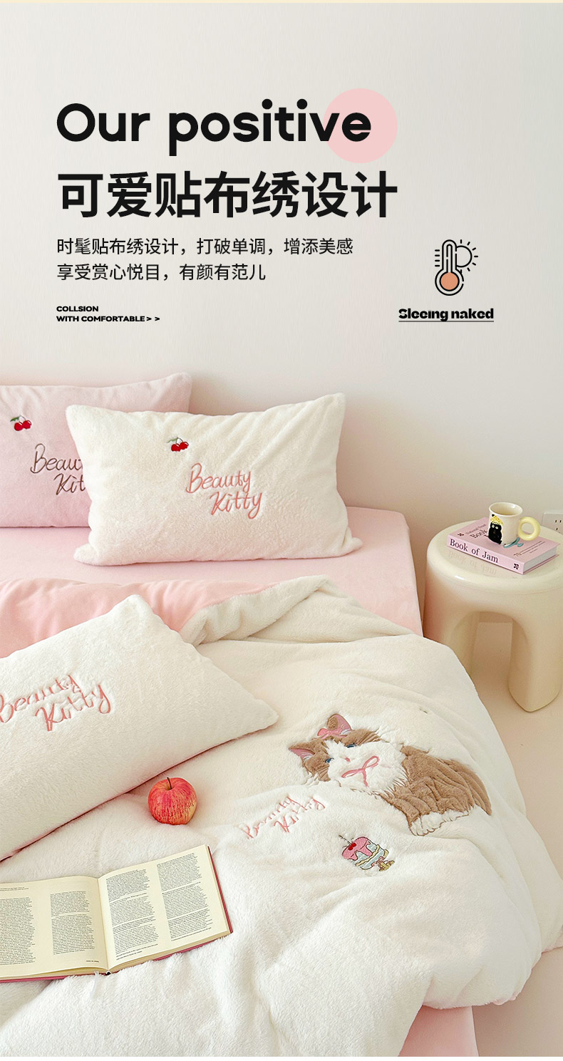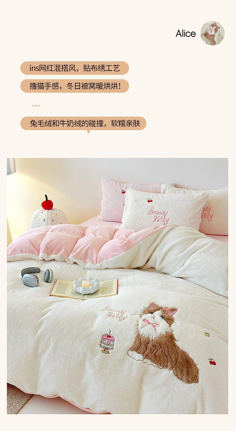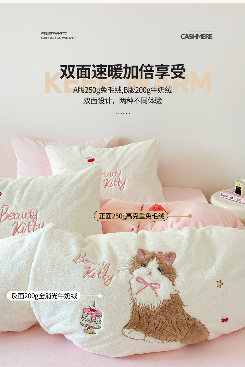 商品名称:(总)乐坊 2025新款300g高克重兔绒卡通贴布绣牛奶绒四件套冬季加厚保暖