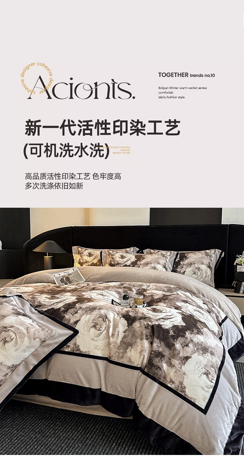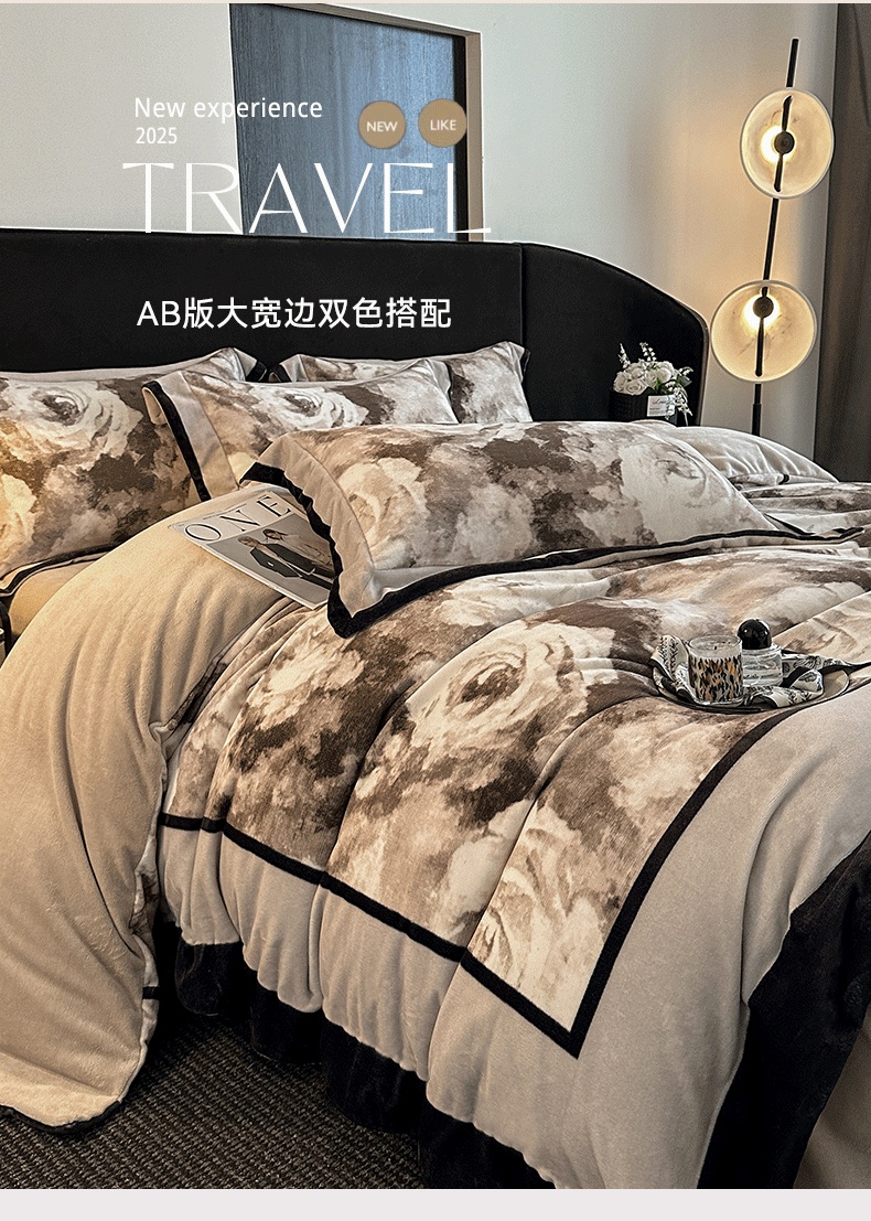 花漾家居 2025新款秋冬新品法式轻奢复古宽边大版牛奶绒四件套(提供买家秀) 素描玫瑰