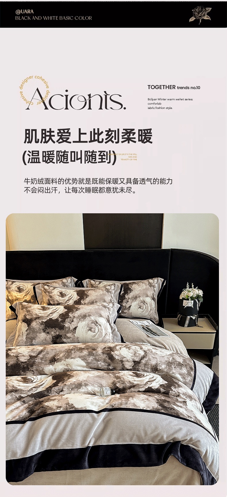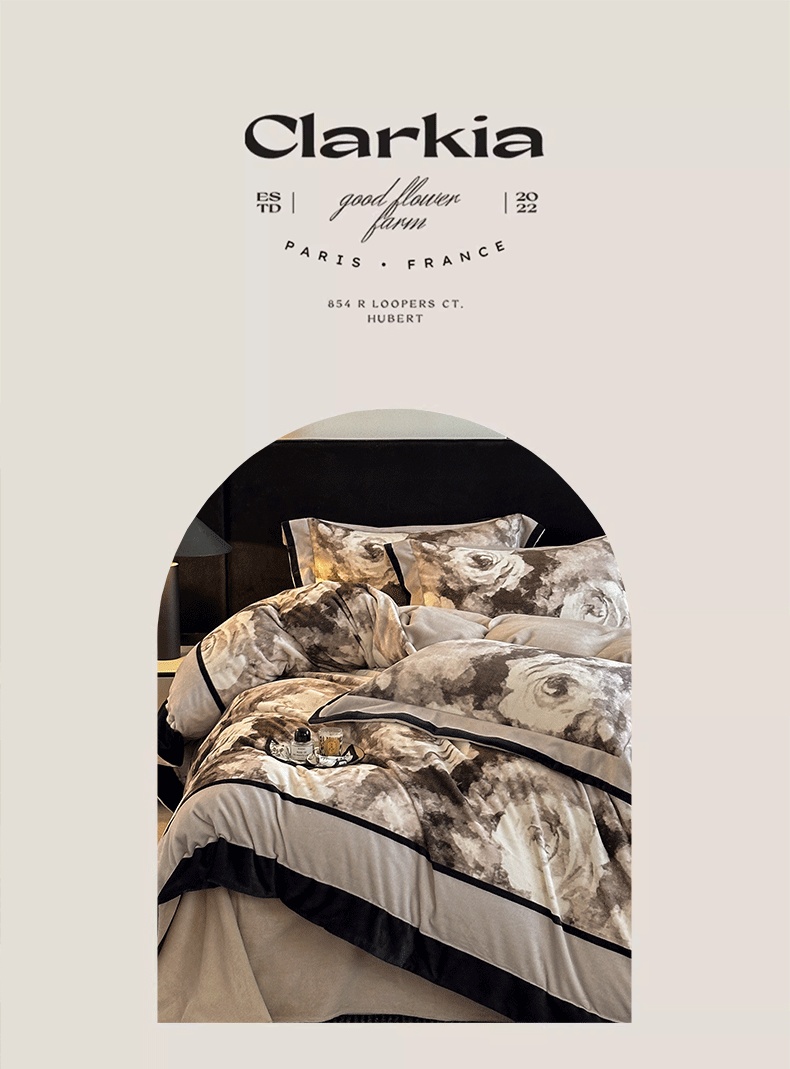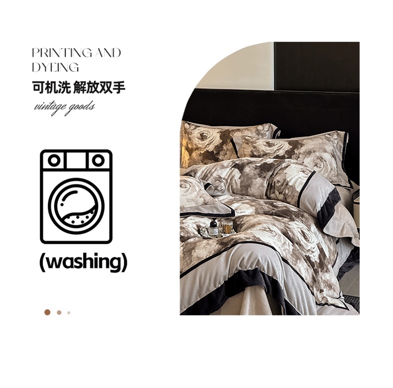 商品名称:花漾家居 2025新款秋冬新品法式轻奢复古宽边大版牛奶绒四件套(提供买家秀) 素描玫瑰