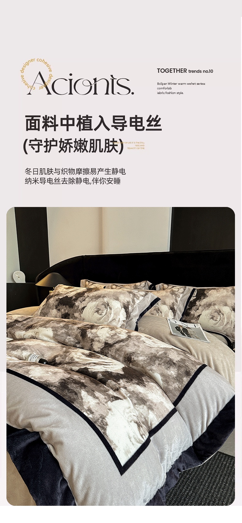 花漾家居 2024新款宽边牛奶绒四件套 月影,月影