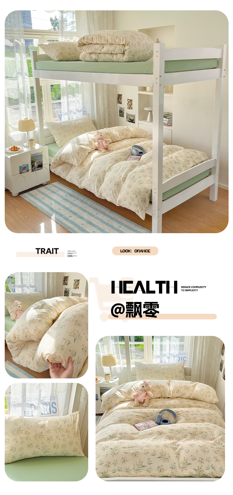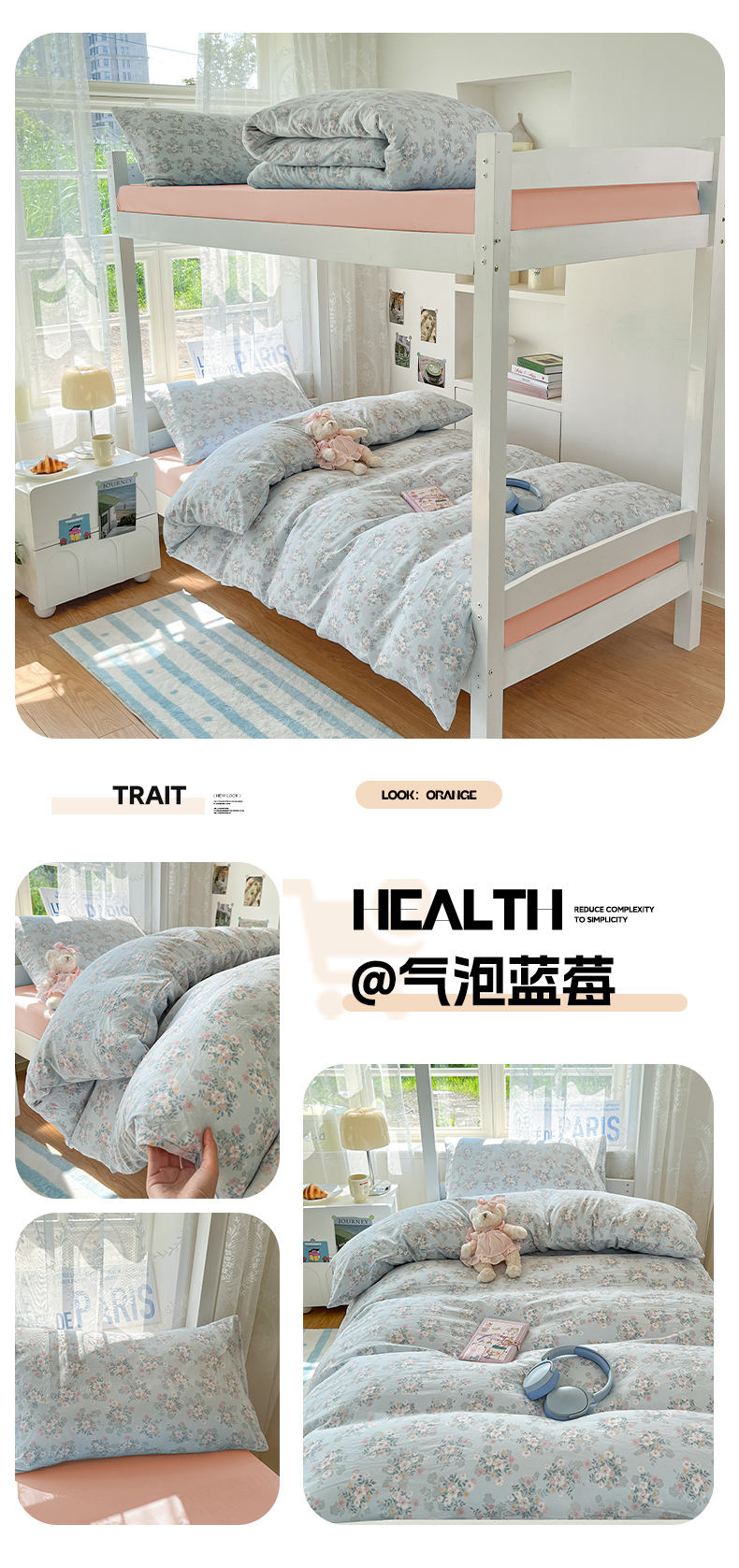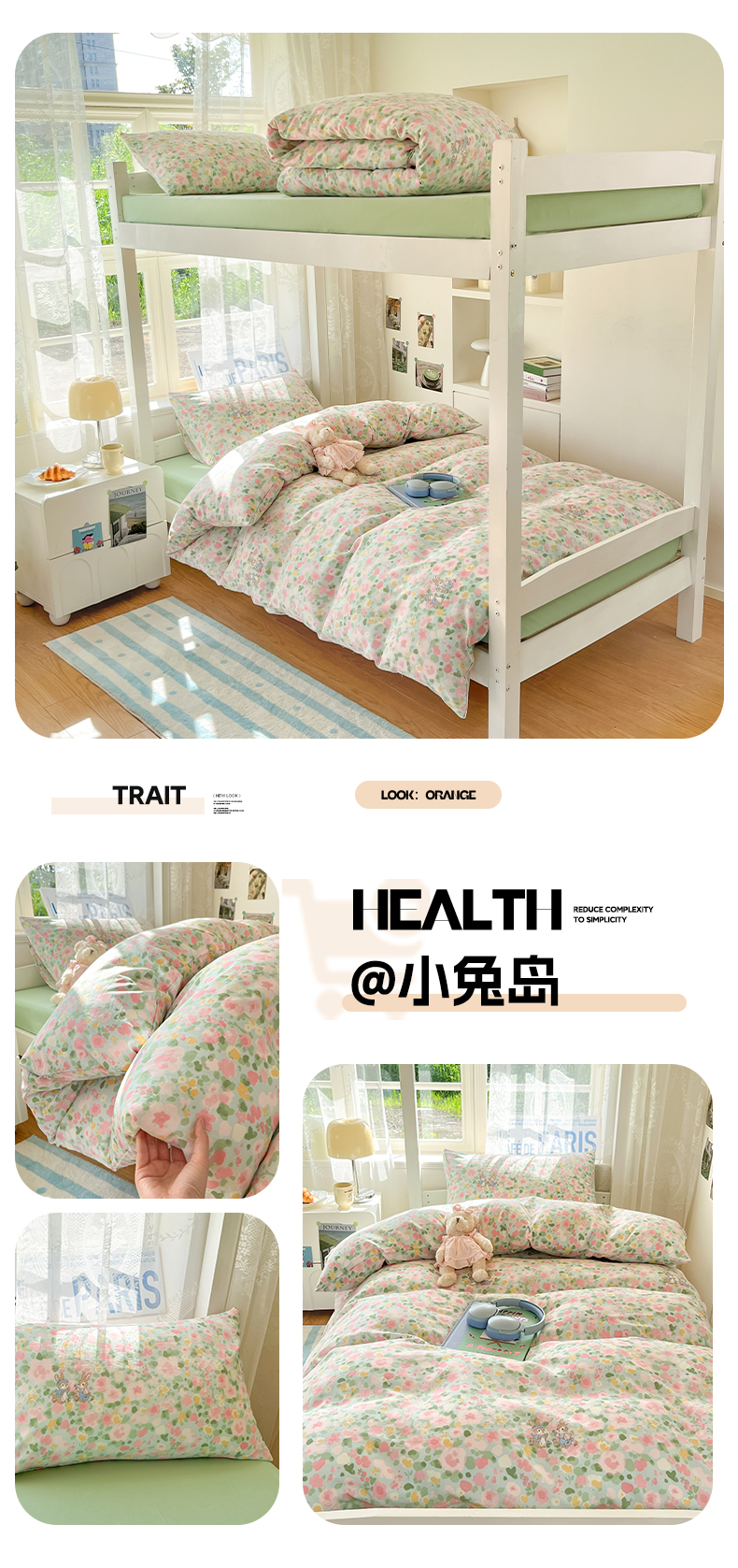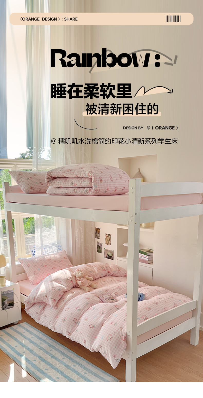 商品名称:(总)澜妃 2025新款亲肤舒适糯叽叽水洗棉简单印花小清新系列学生床三四件套