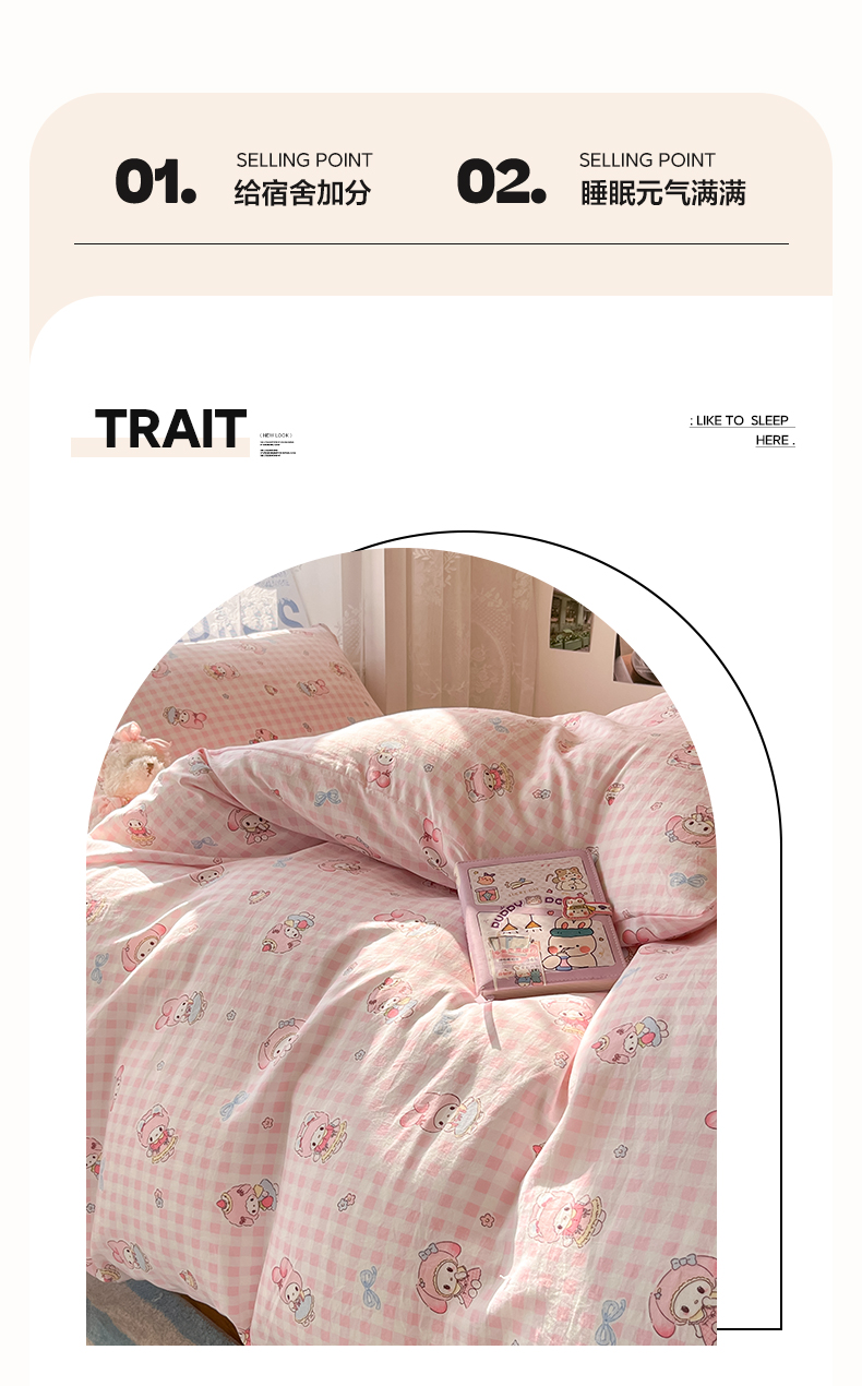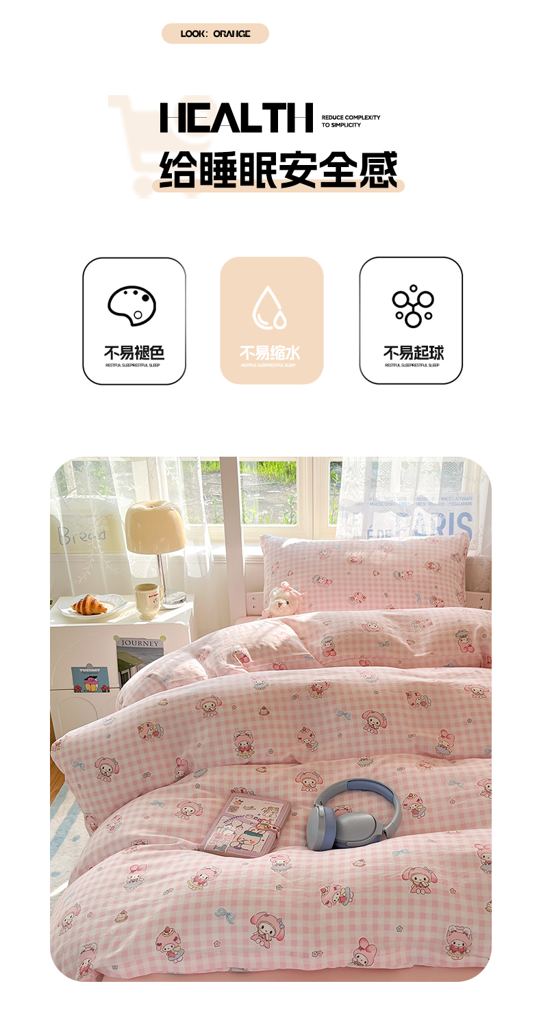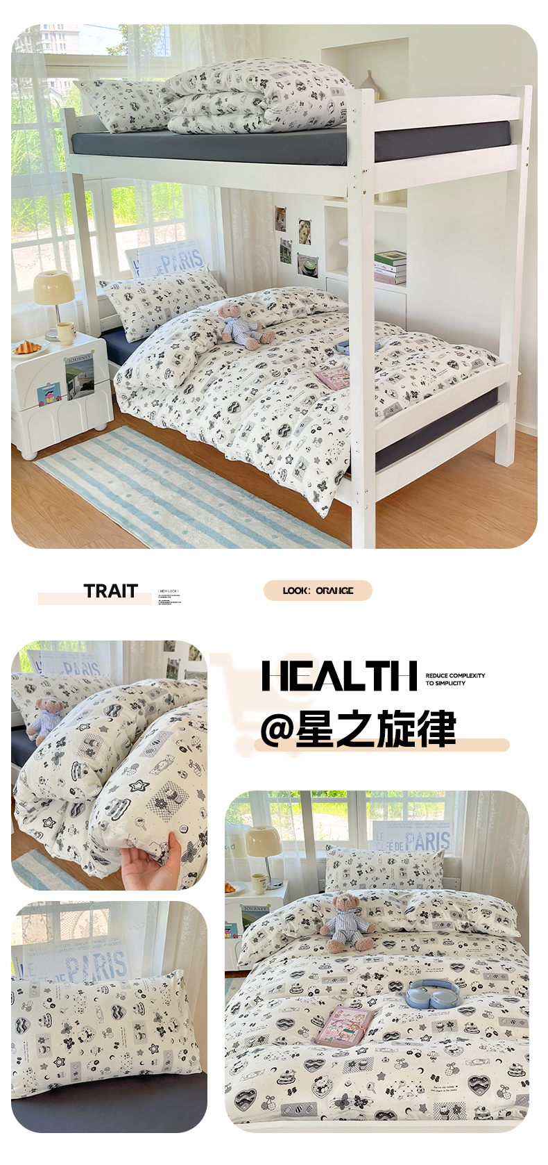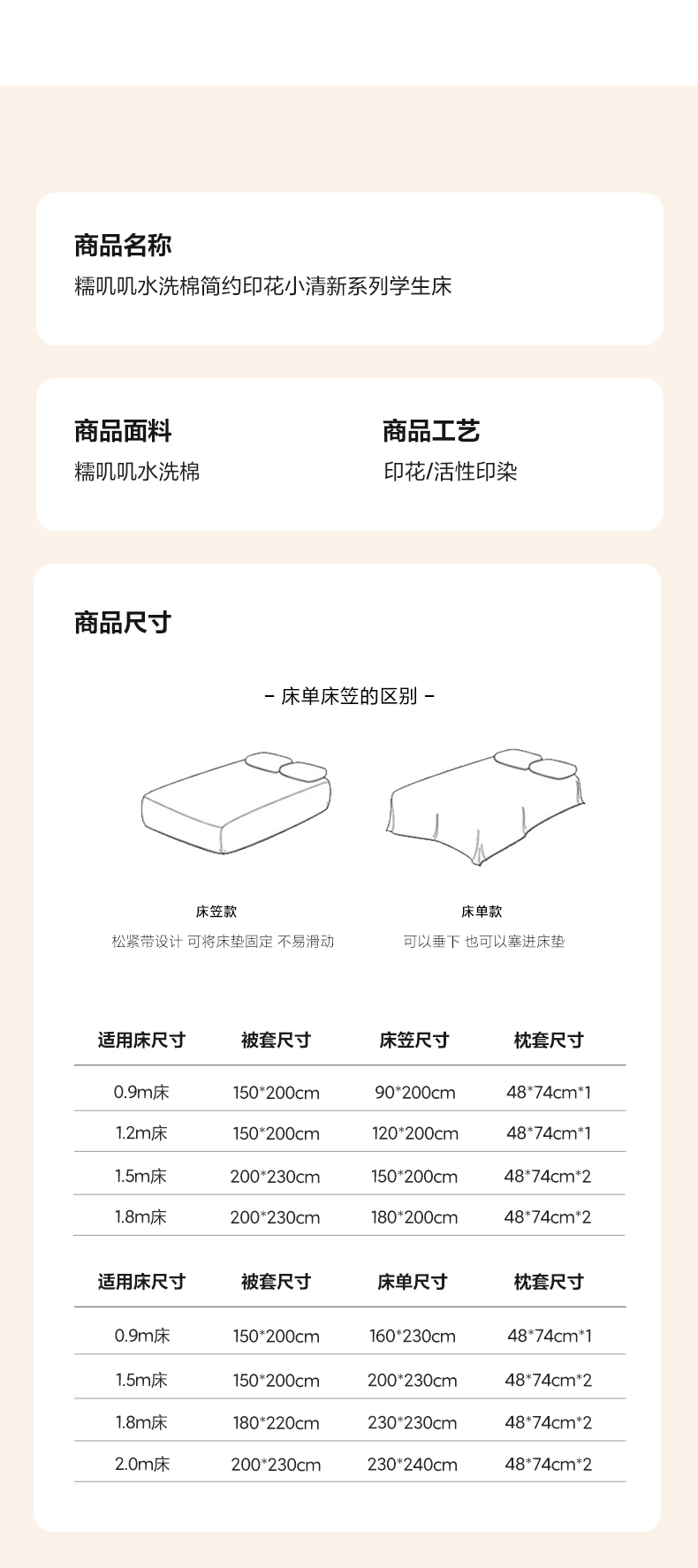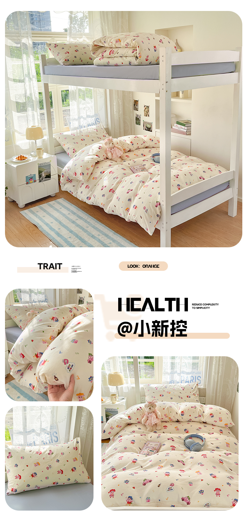 商品名称:(总)澜妃 2025新款亲肤舒适糯叽叽水洗棉简单印花小清新系列学生床三四件套