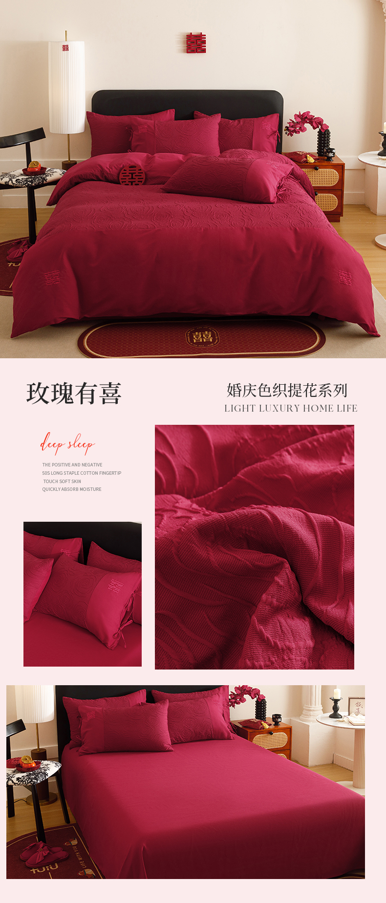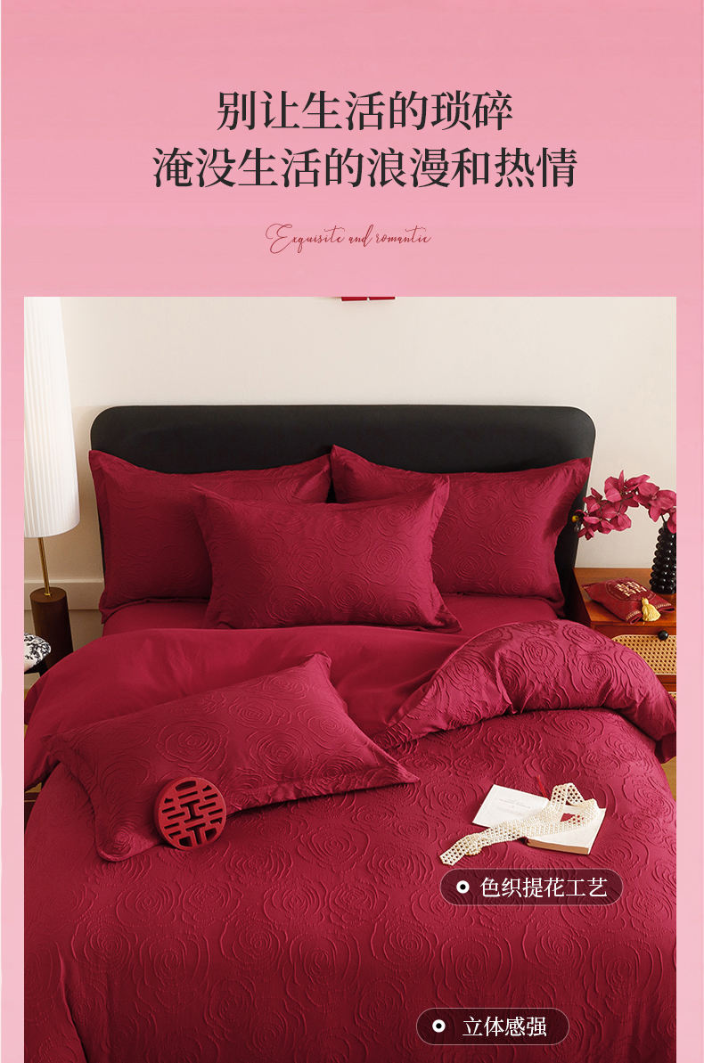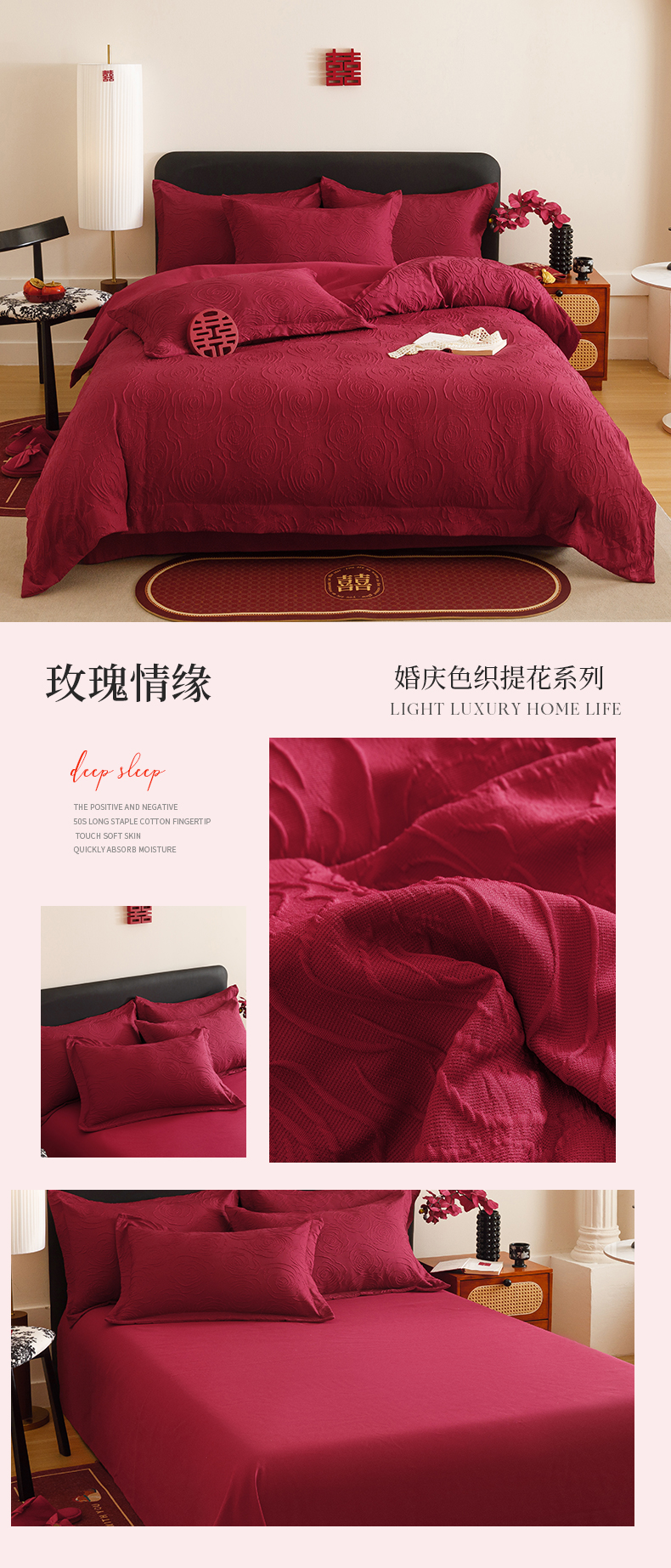 当前位置: 91家纺网 > 商品网购 > 床品套件 > 四件套 > 婚庆四件套 > (总)苏源家居 2025新款色织提花玫瑰系列四件套