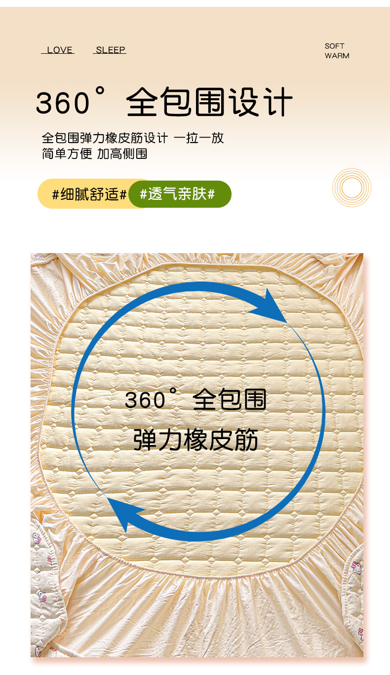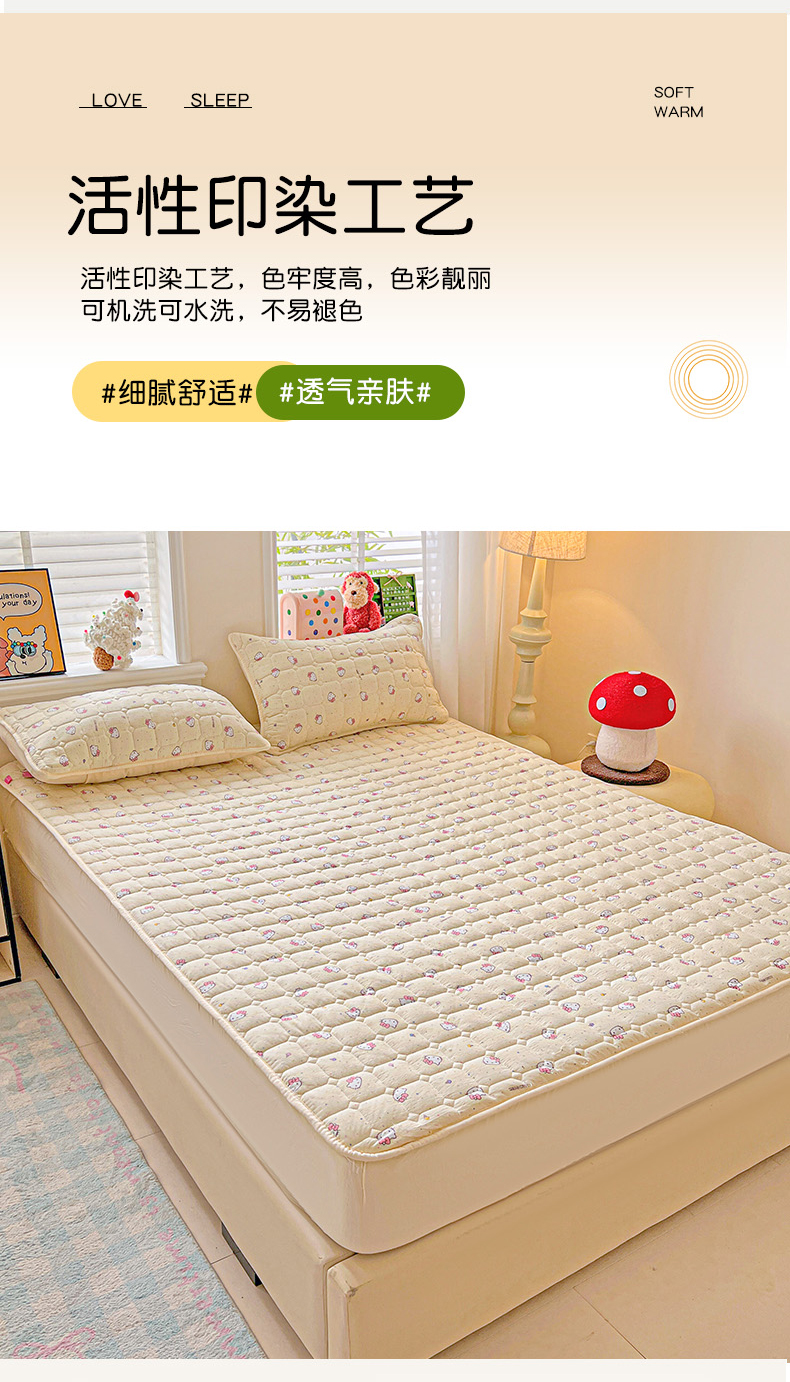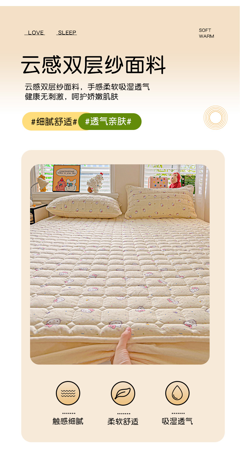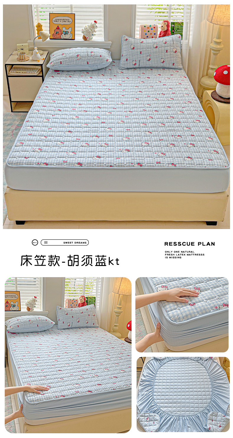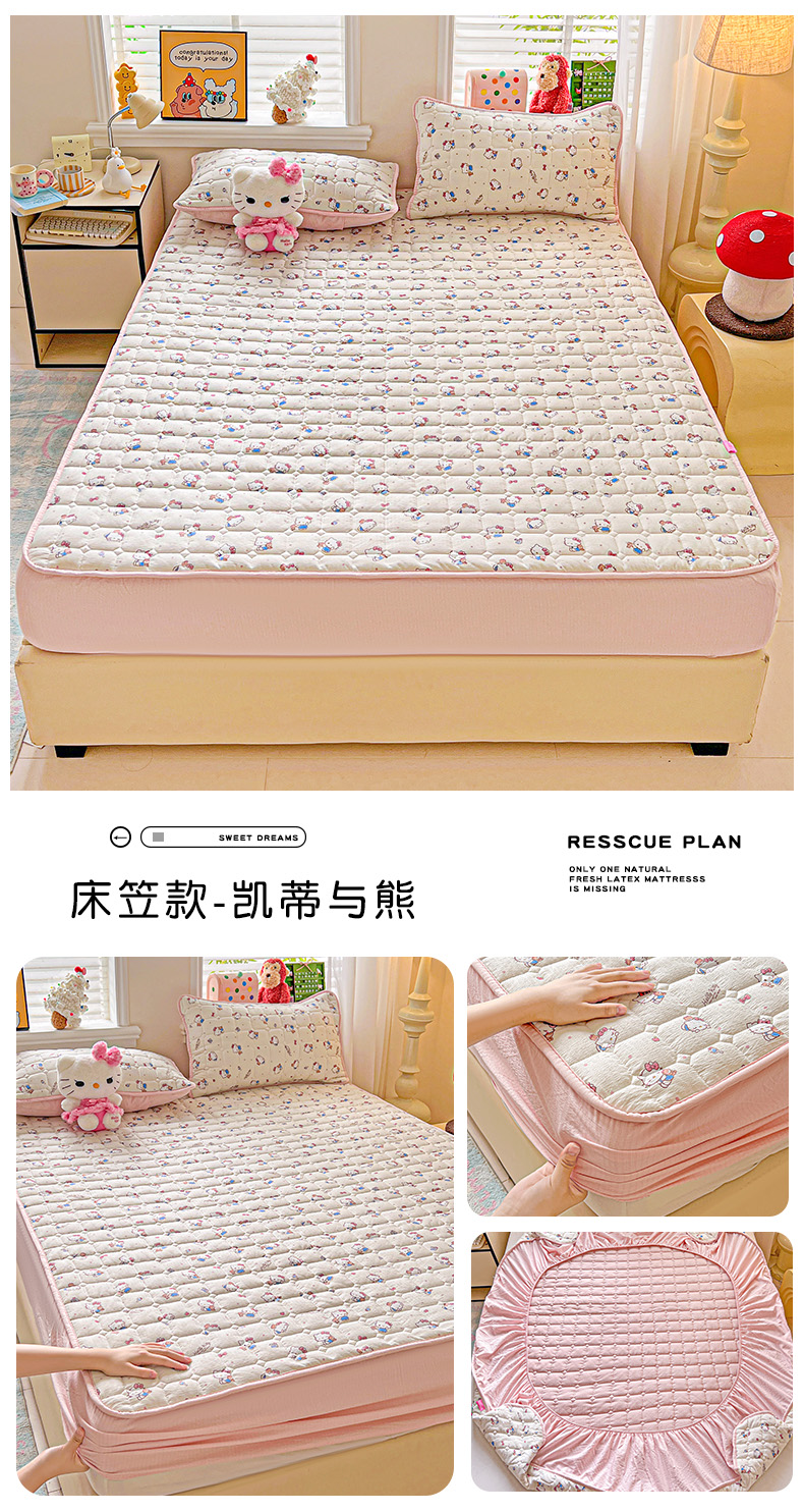 商品名称:星禾优选 2025新款三丽鸥云感双层纱夹棉床笠系列-大床款 床笠款-彩带凯蒂