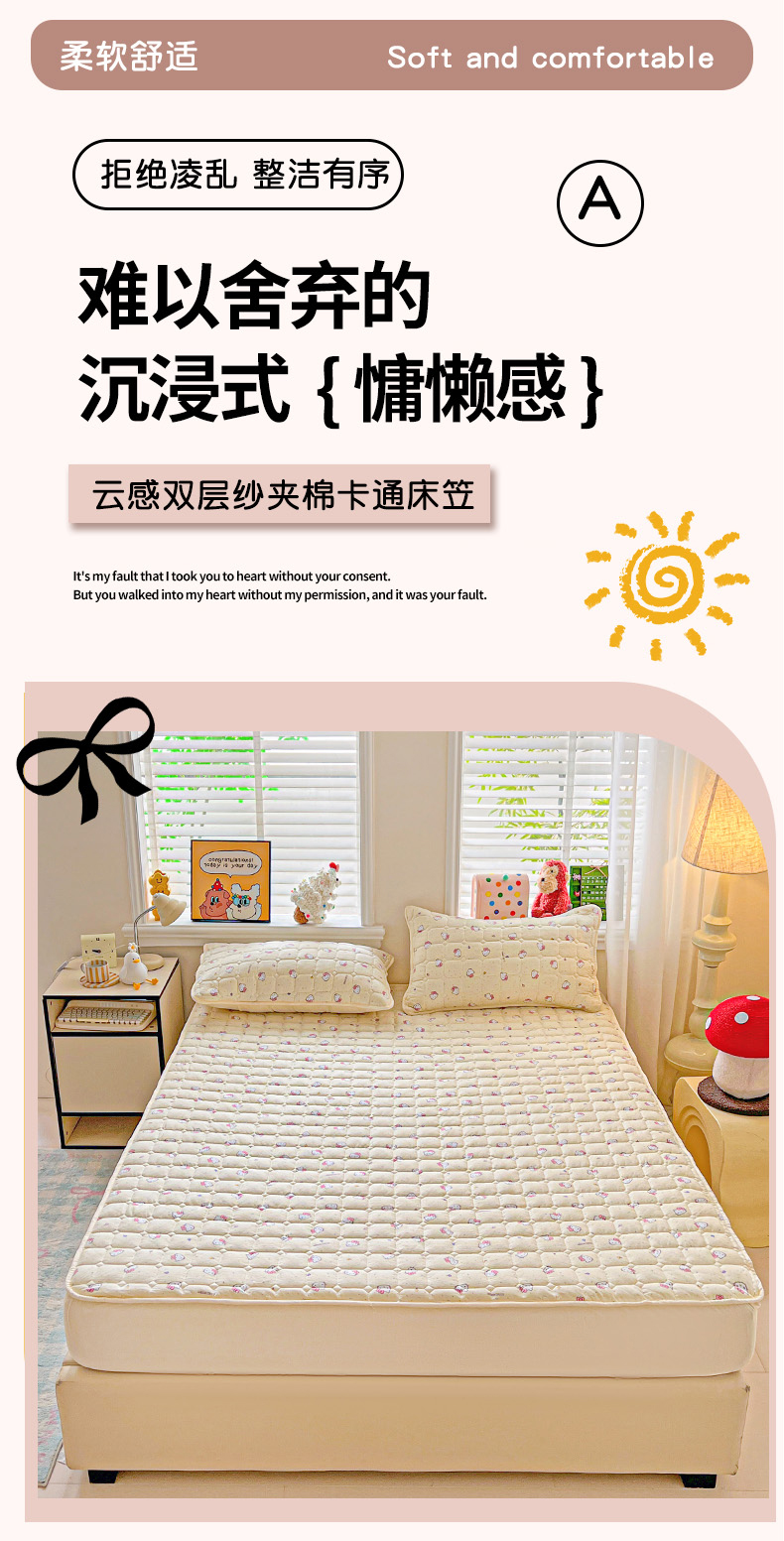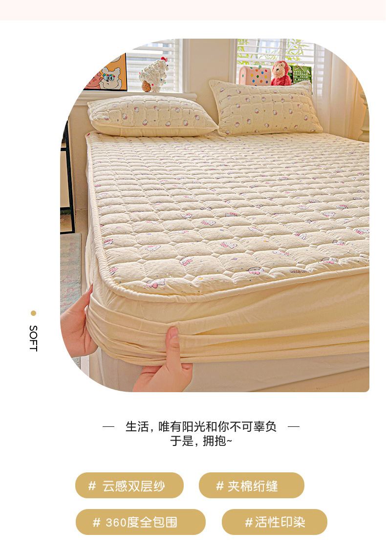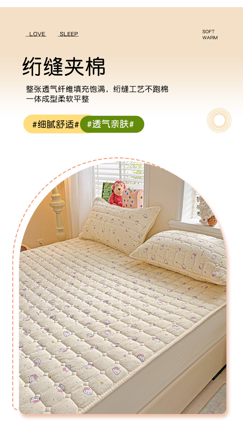 星禾优选 2025新款三丽鸥云感双层纱夹棉床笠系列-大床款 床笠款-彩带凯蒂