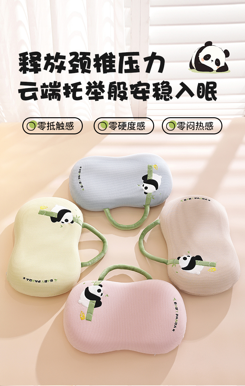 商品名称:蔻眠 暖绒节节高熊猫手提猫肚枕儿童记忆枕芯学生护颈椎枕头 主图