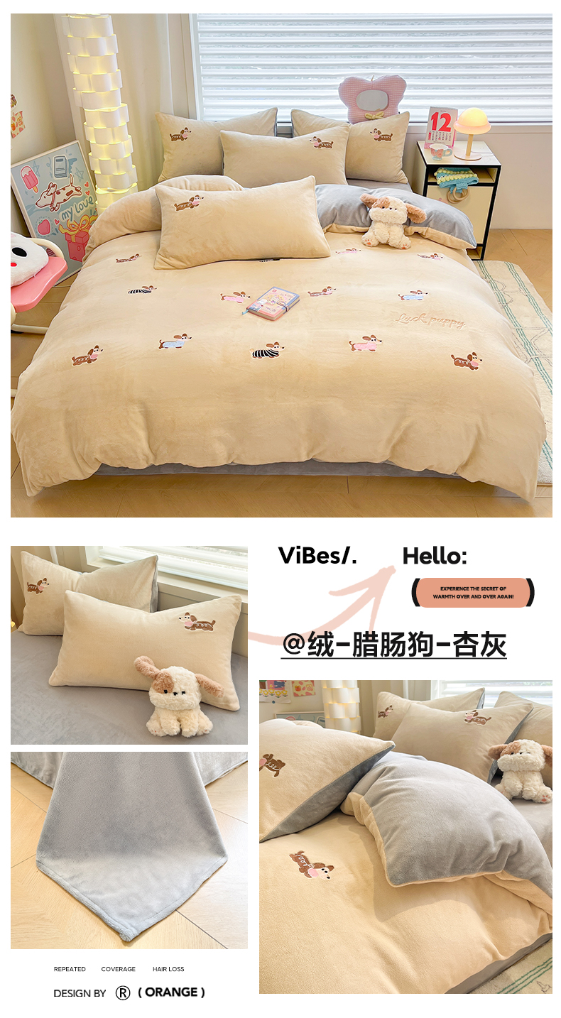 (总)如一 2025新款高克重卡通贴布绣牛奶绒四件套,爱心猫,狮毛狗,雪纳瑞,线团狗,豹纹兔,蓝格猫,粉格猫,咖啡狗,雨伞猫