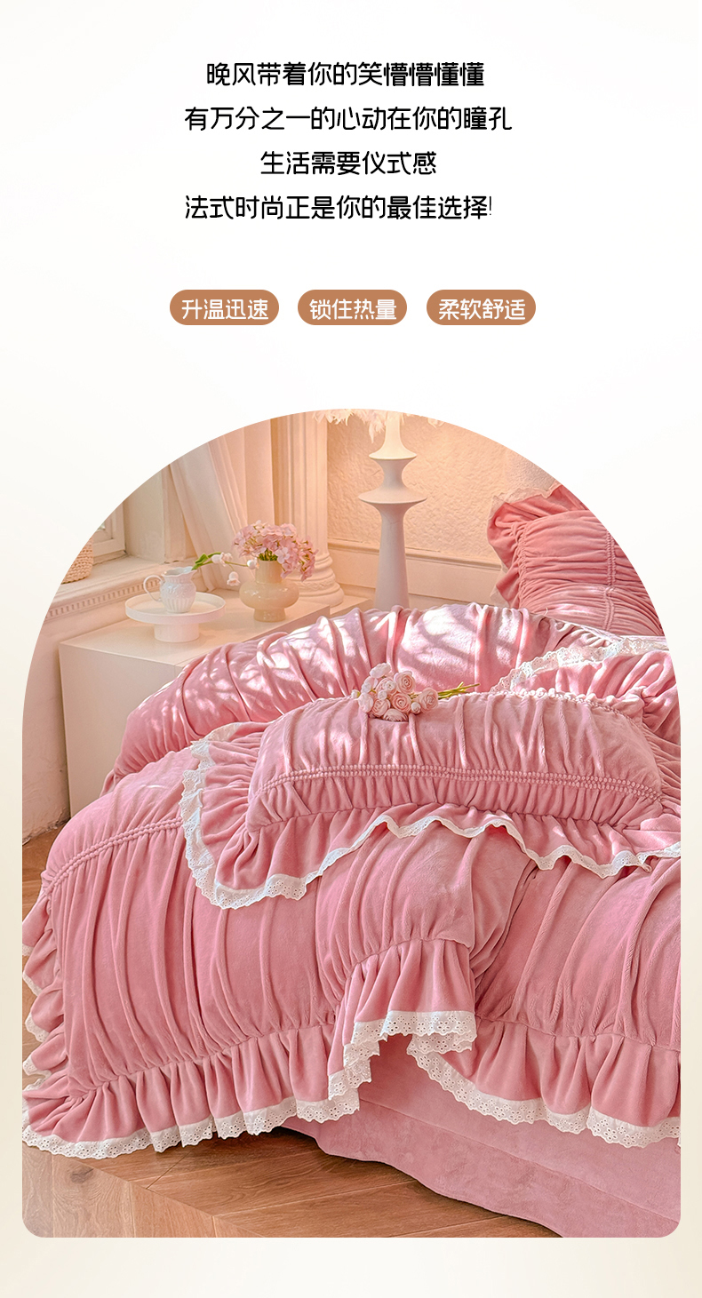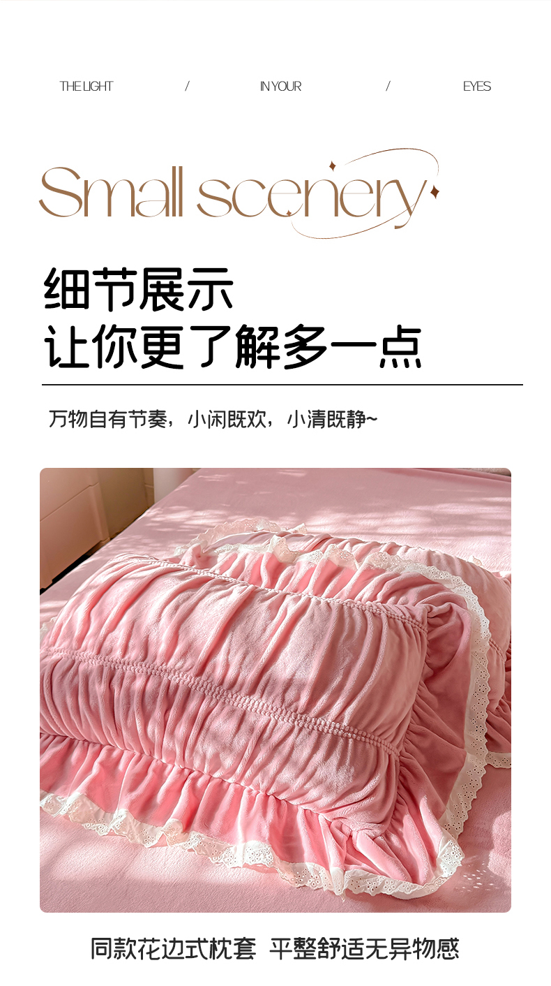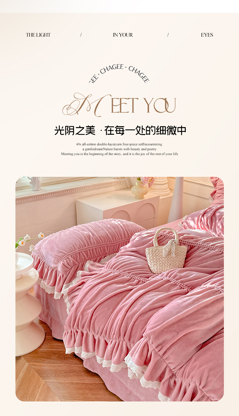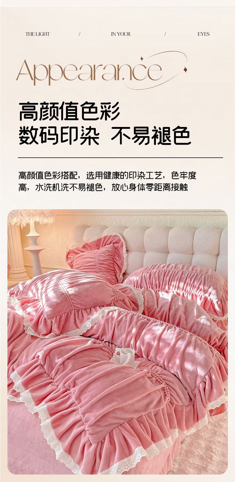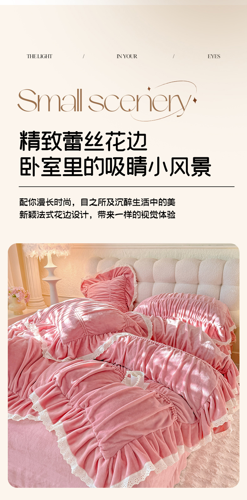 (总)满座家居 2025新款清新唯美木耳边加厚牛奶绒四件套雕花绒四件套,艾莎 粉,雏菊晨露 粉,田园风景 绿,蝶恋花 粉,邂逅,安妮 粉
