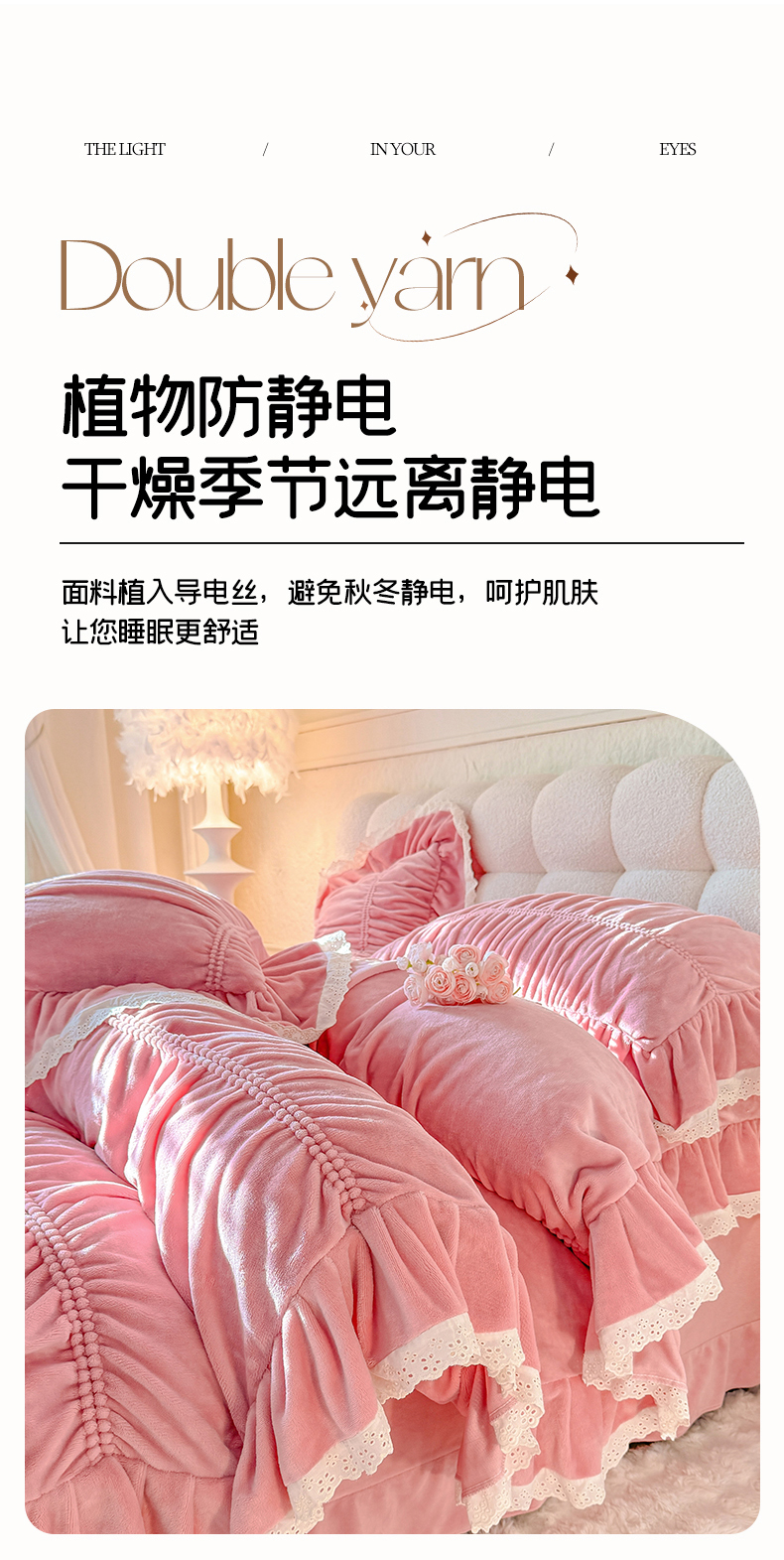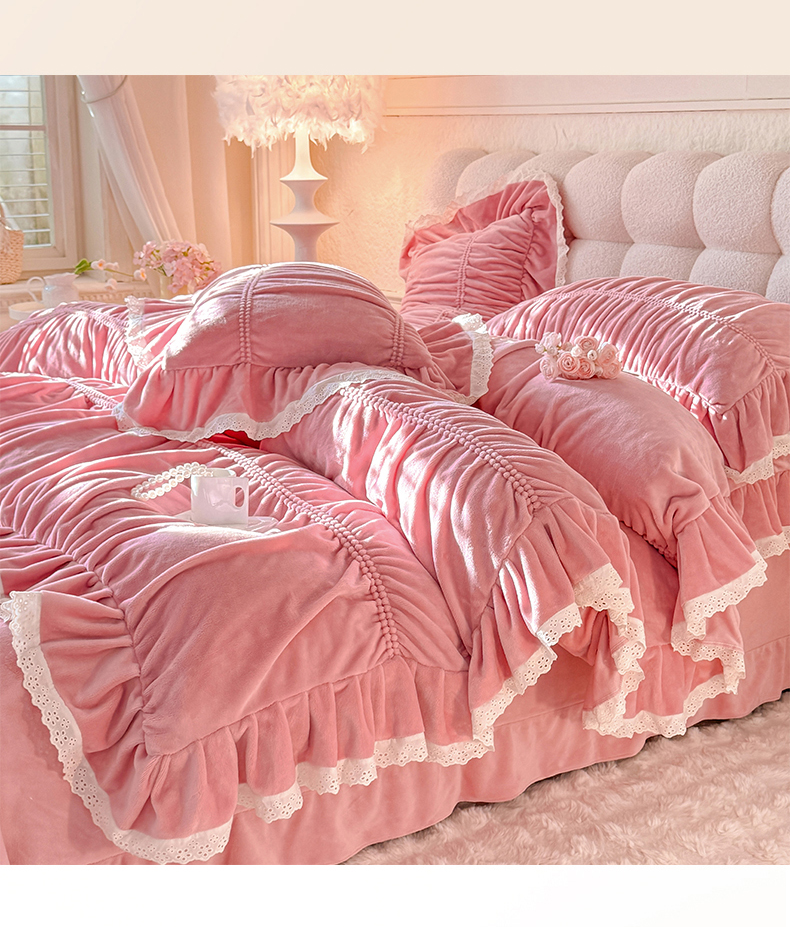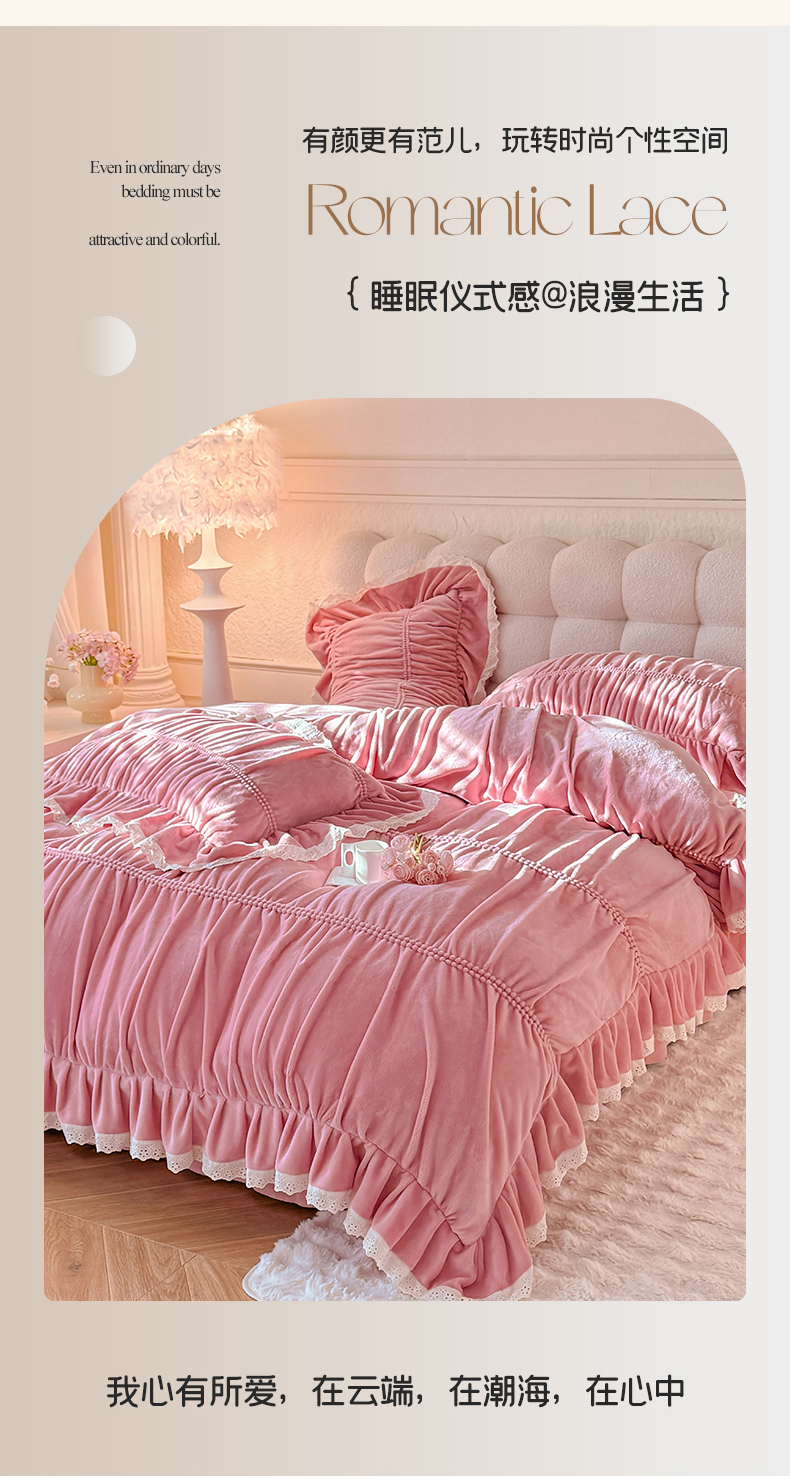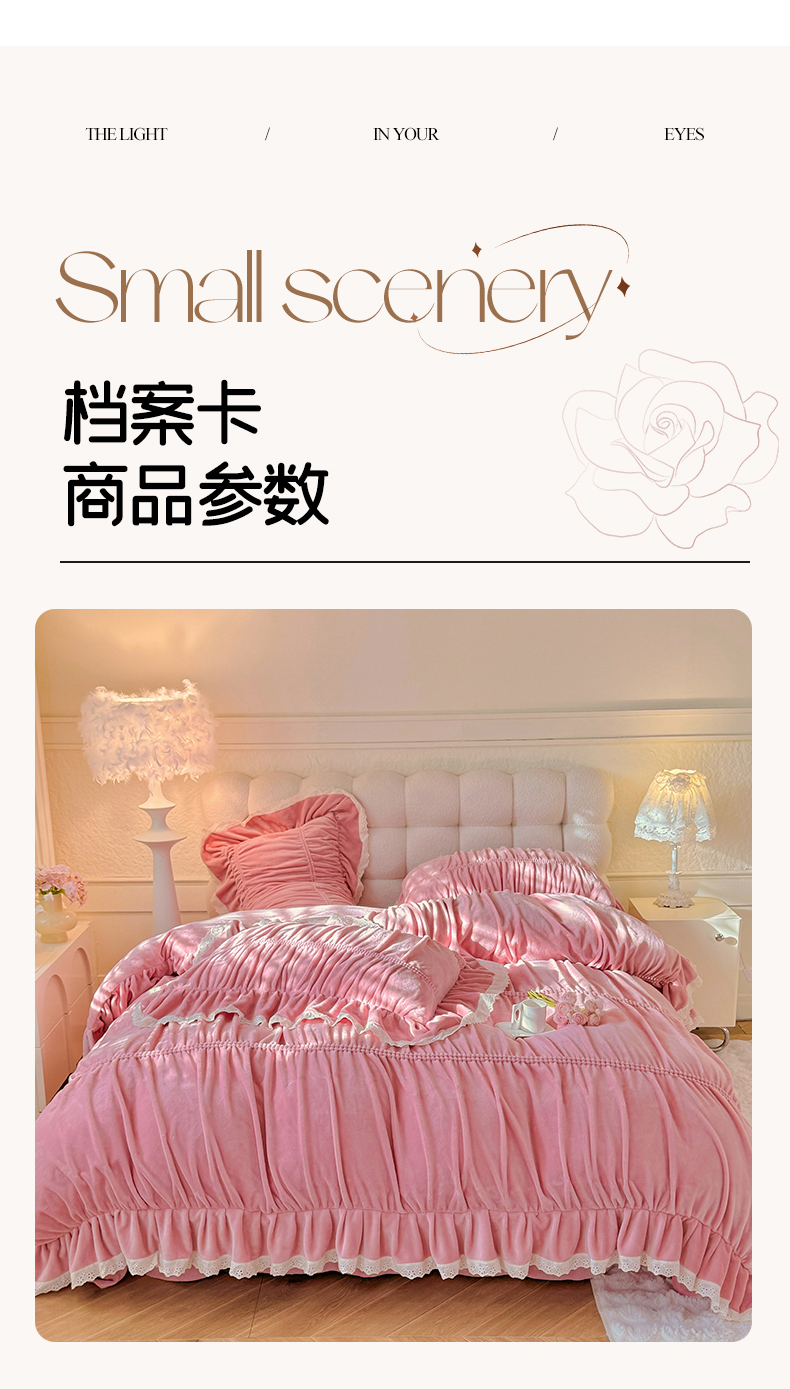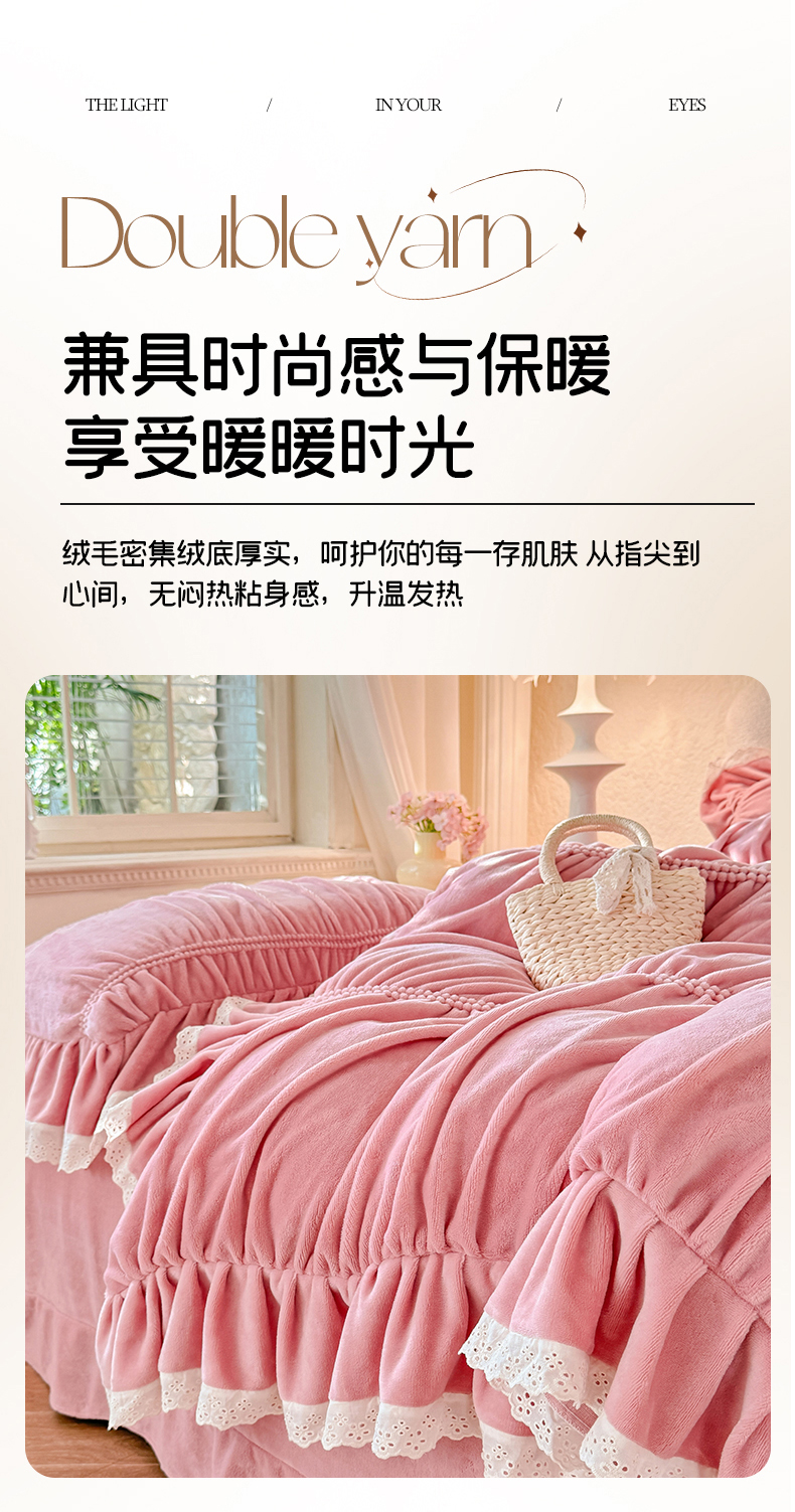 (总)满座家居 2025新款清新唯美木耳边加厚牛奶绒四件套雕花绒四件套,艾莎 粉,雏菊晨露 粉,田园风景 绿,蝶恋花 粉,邂逅,安妮 粉